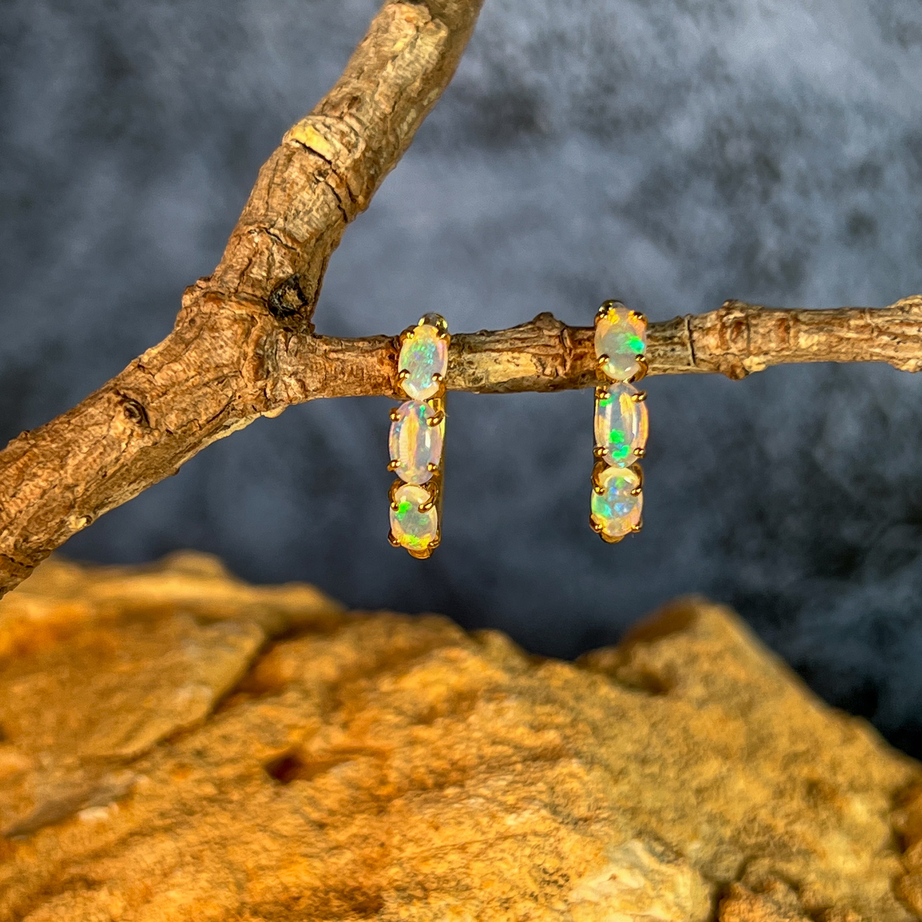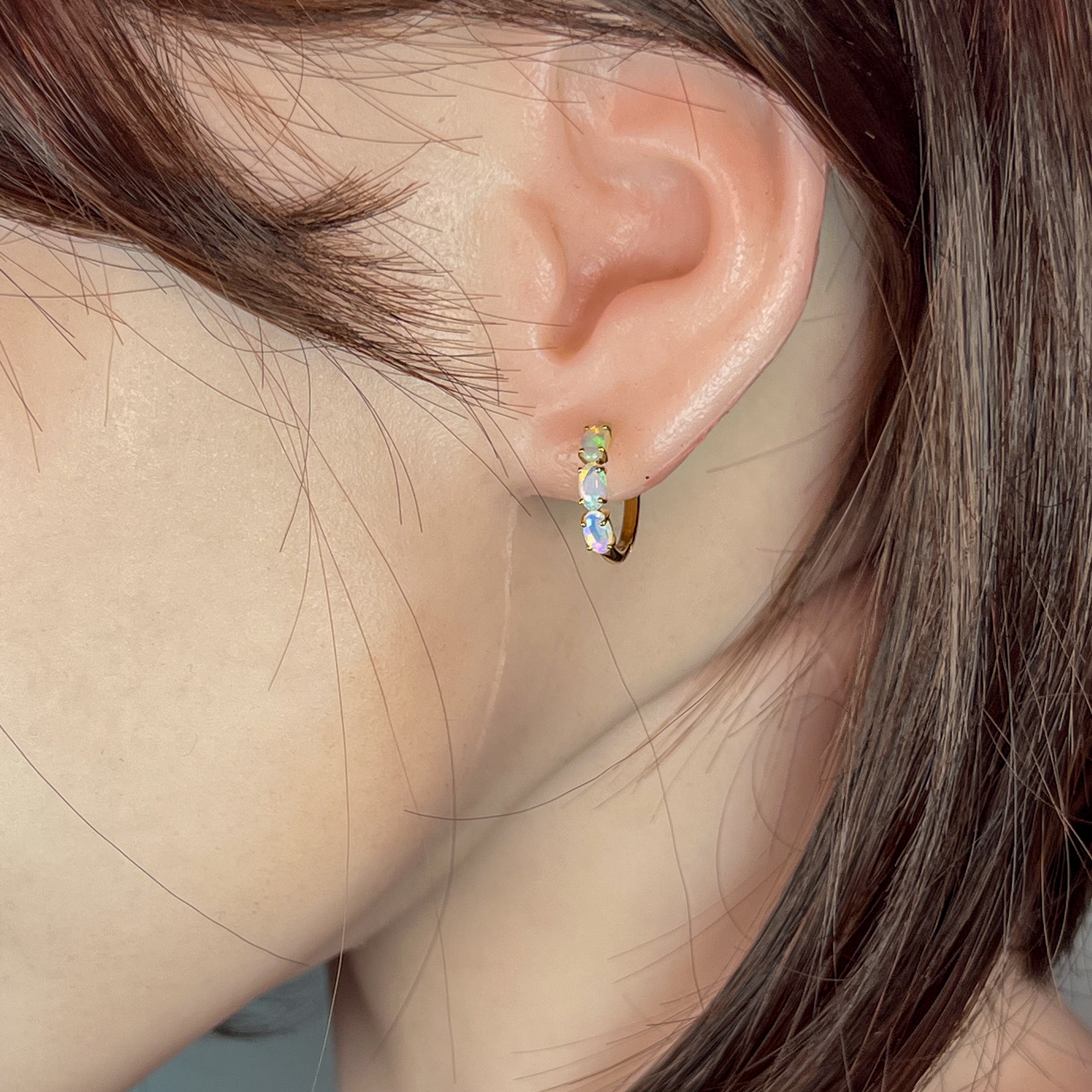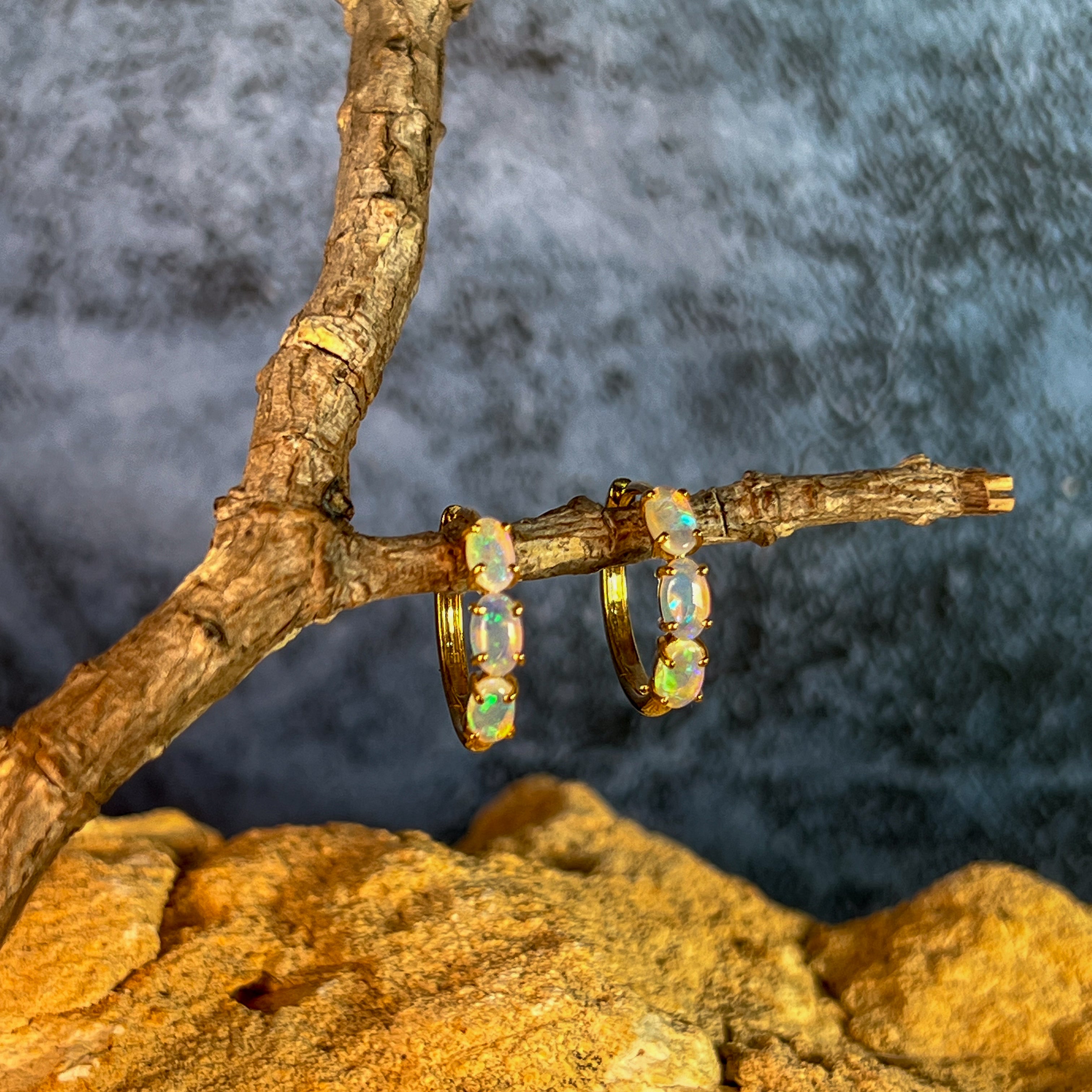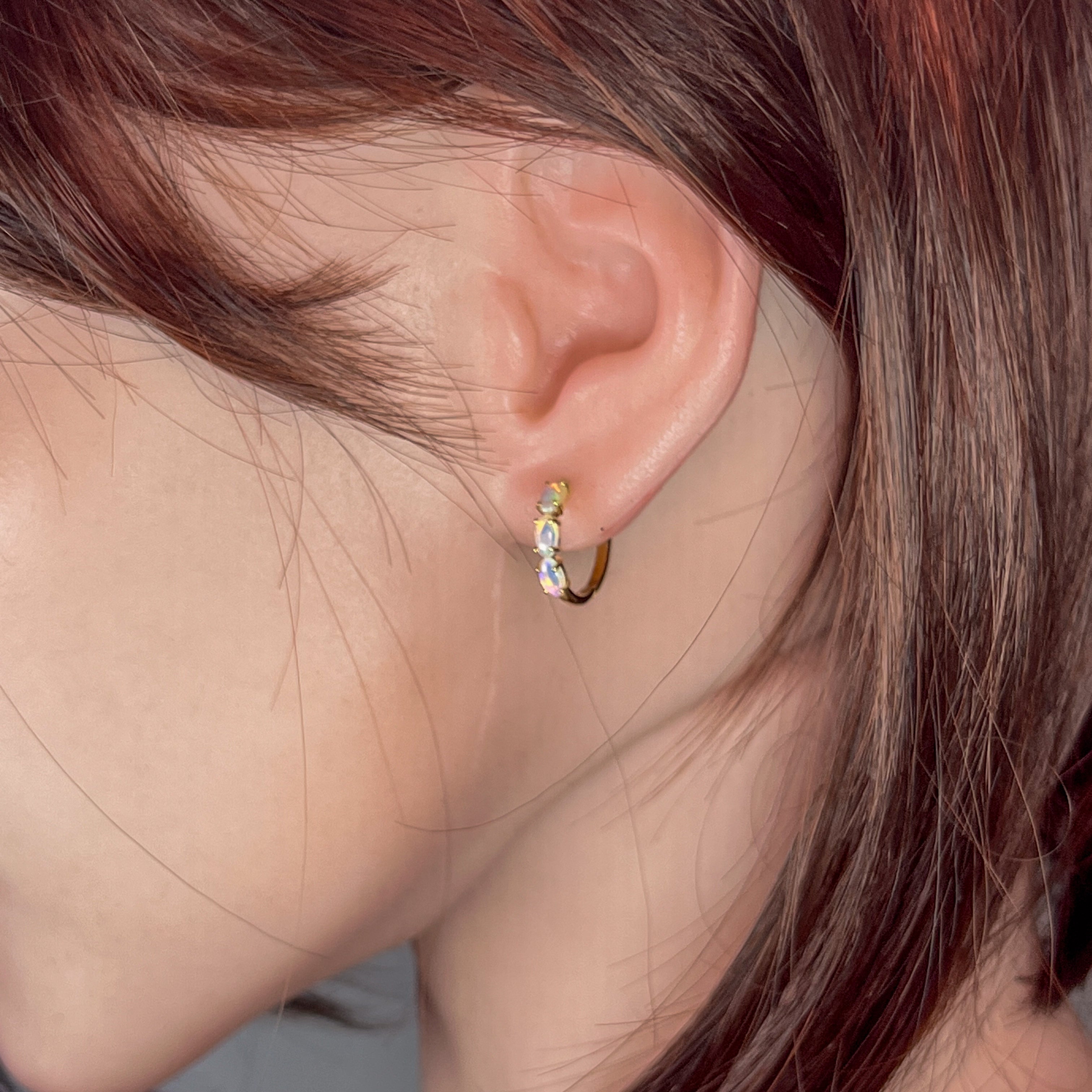 Gold Plated Sterling Silver huggie style Crystal opal earrings