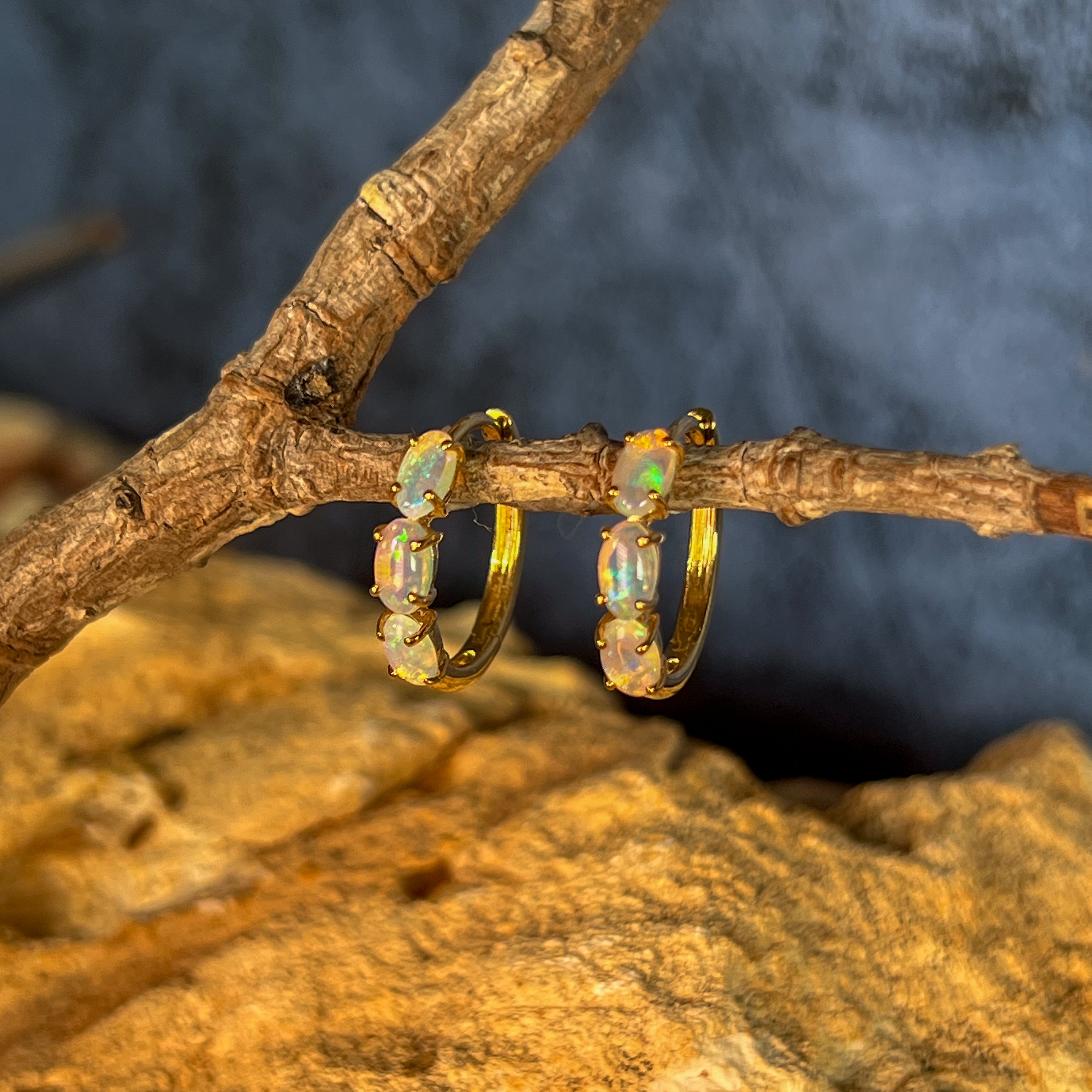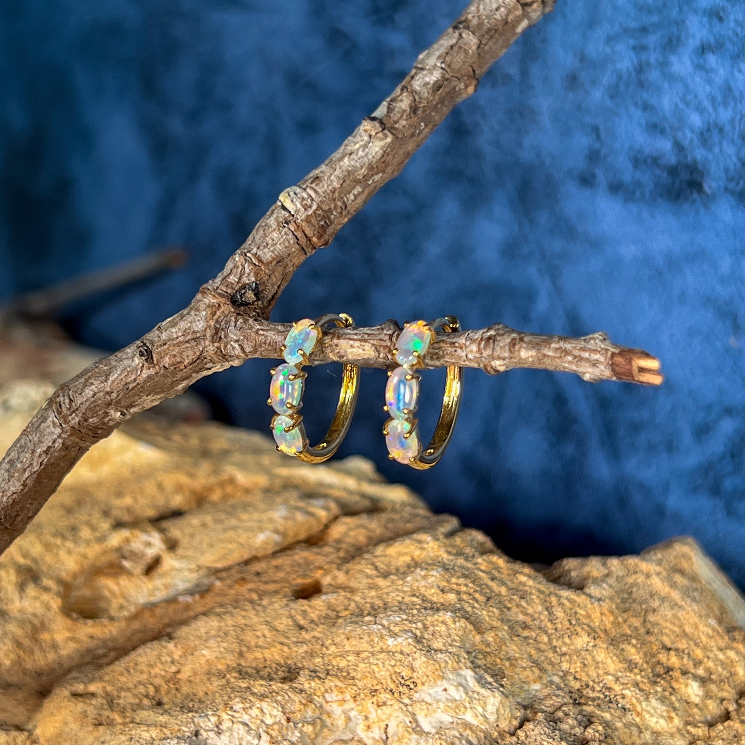 One pair of Gold Plated Sterling Silver pair of huggie Opal earrings