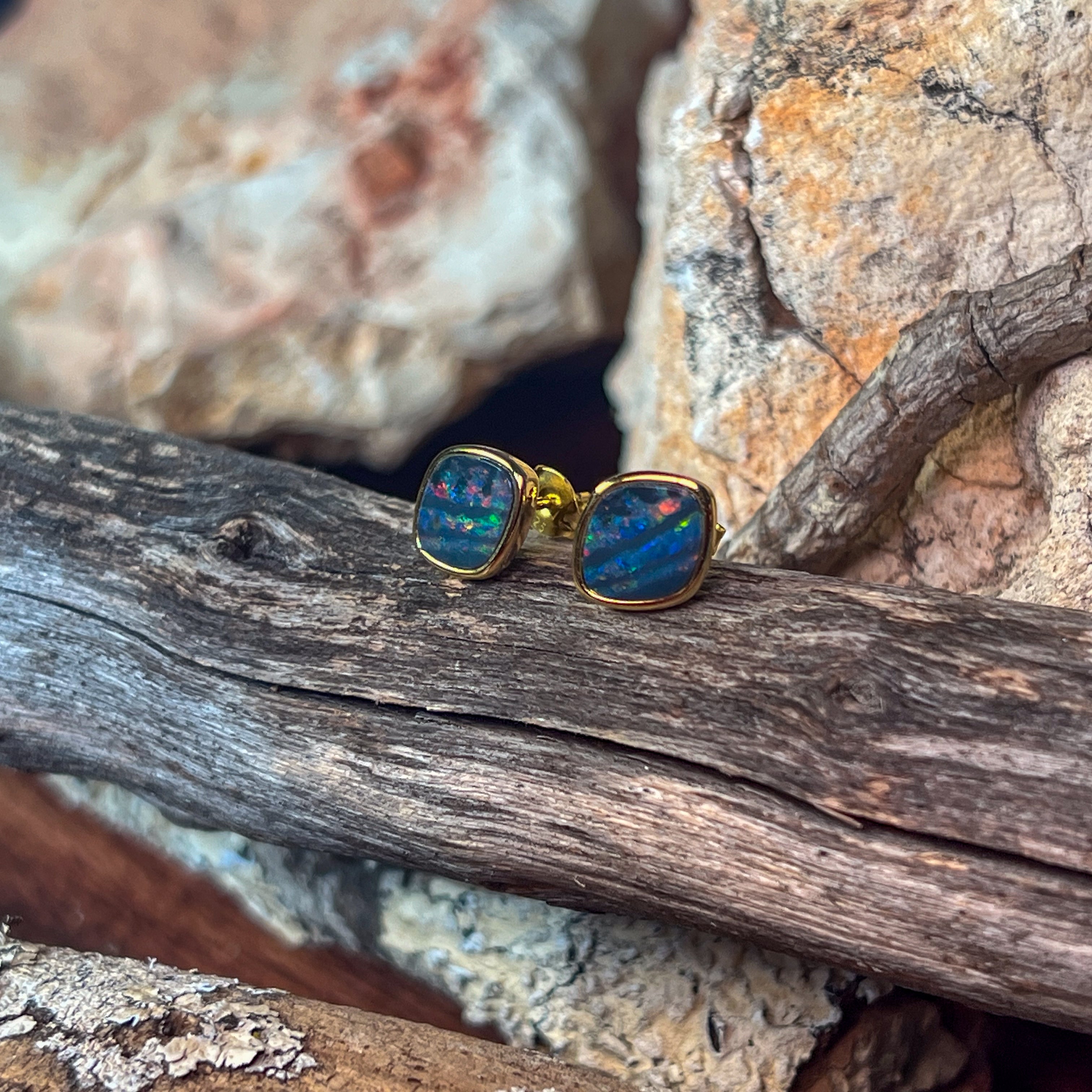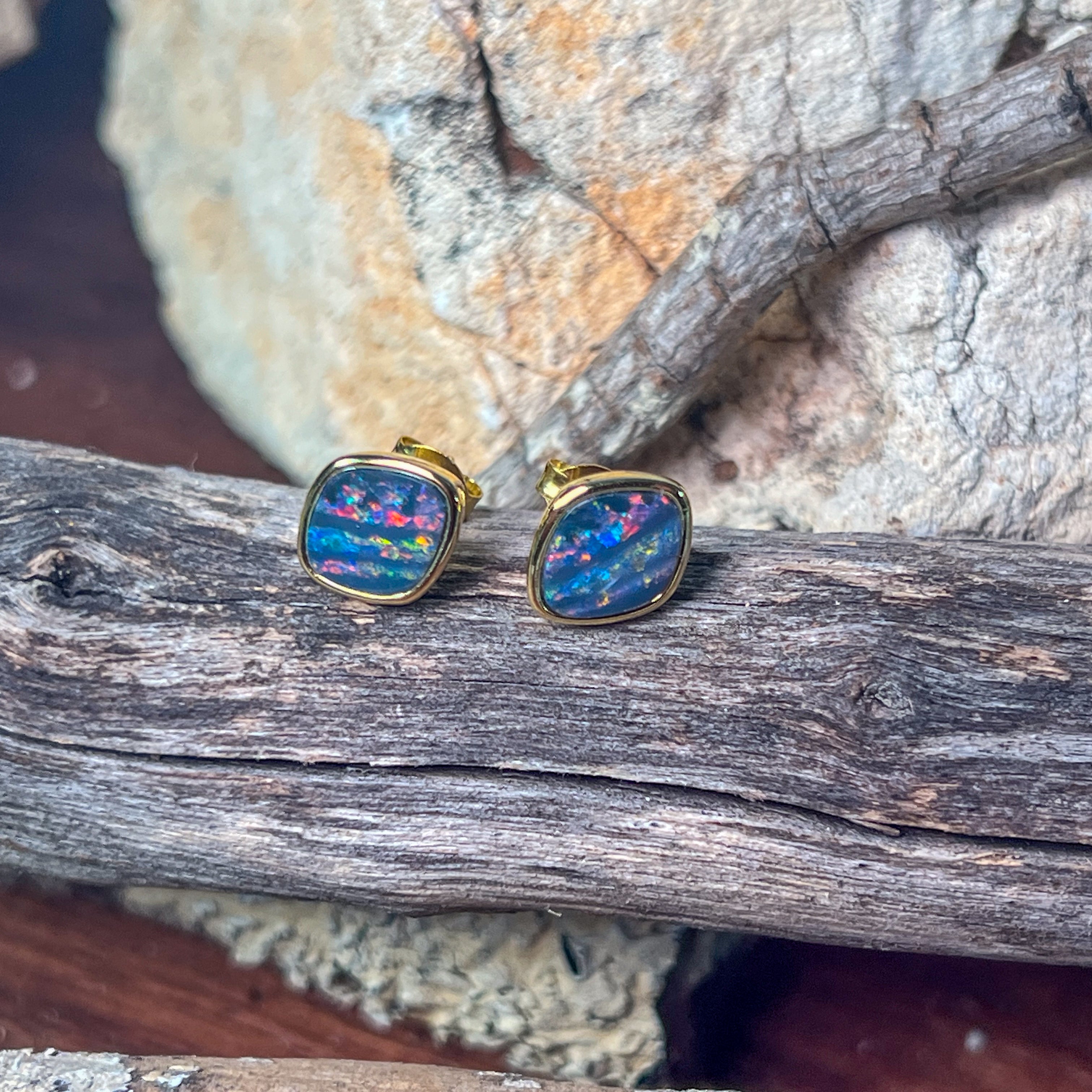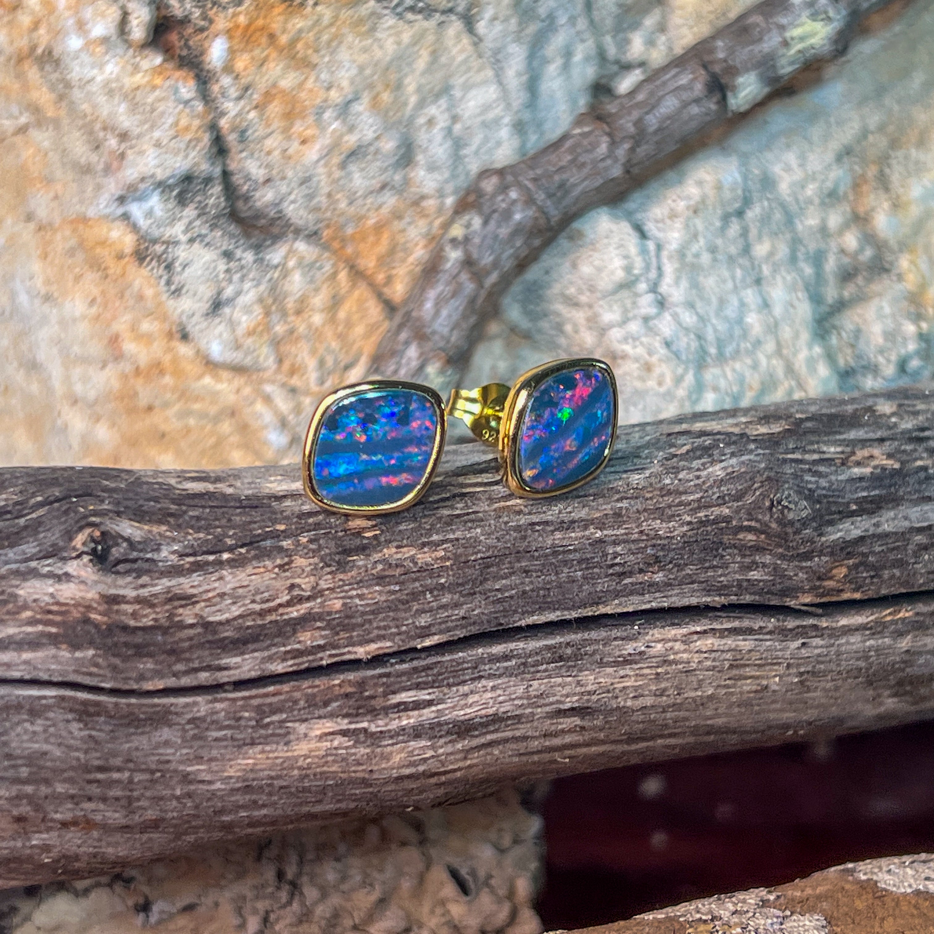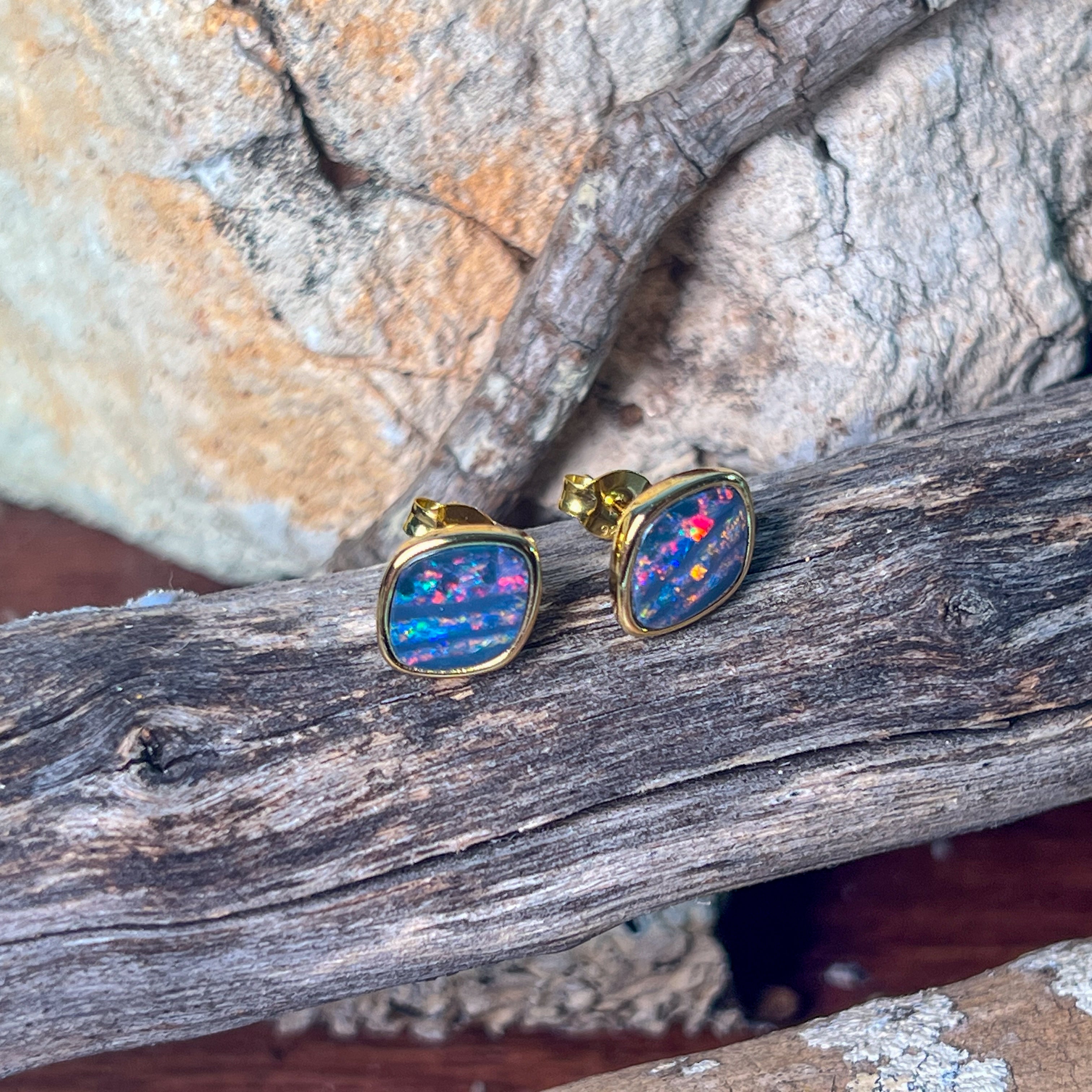 Gold Plated Sterling Silver Opal doublet bezel set stud earrings