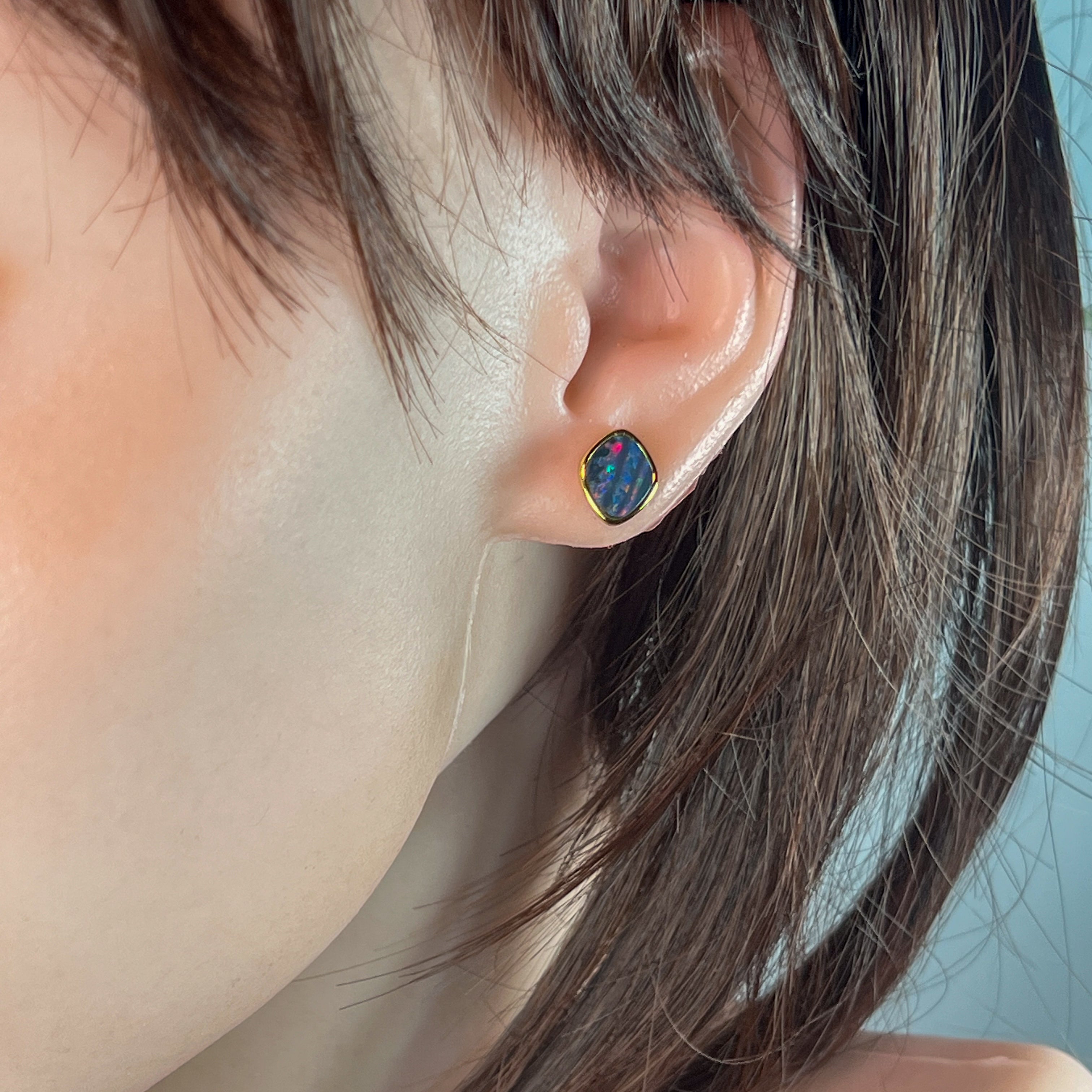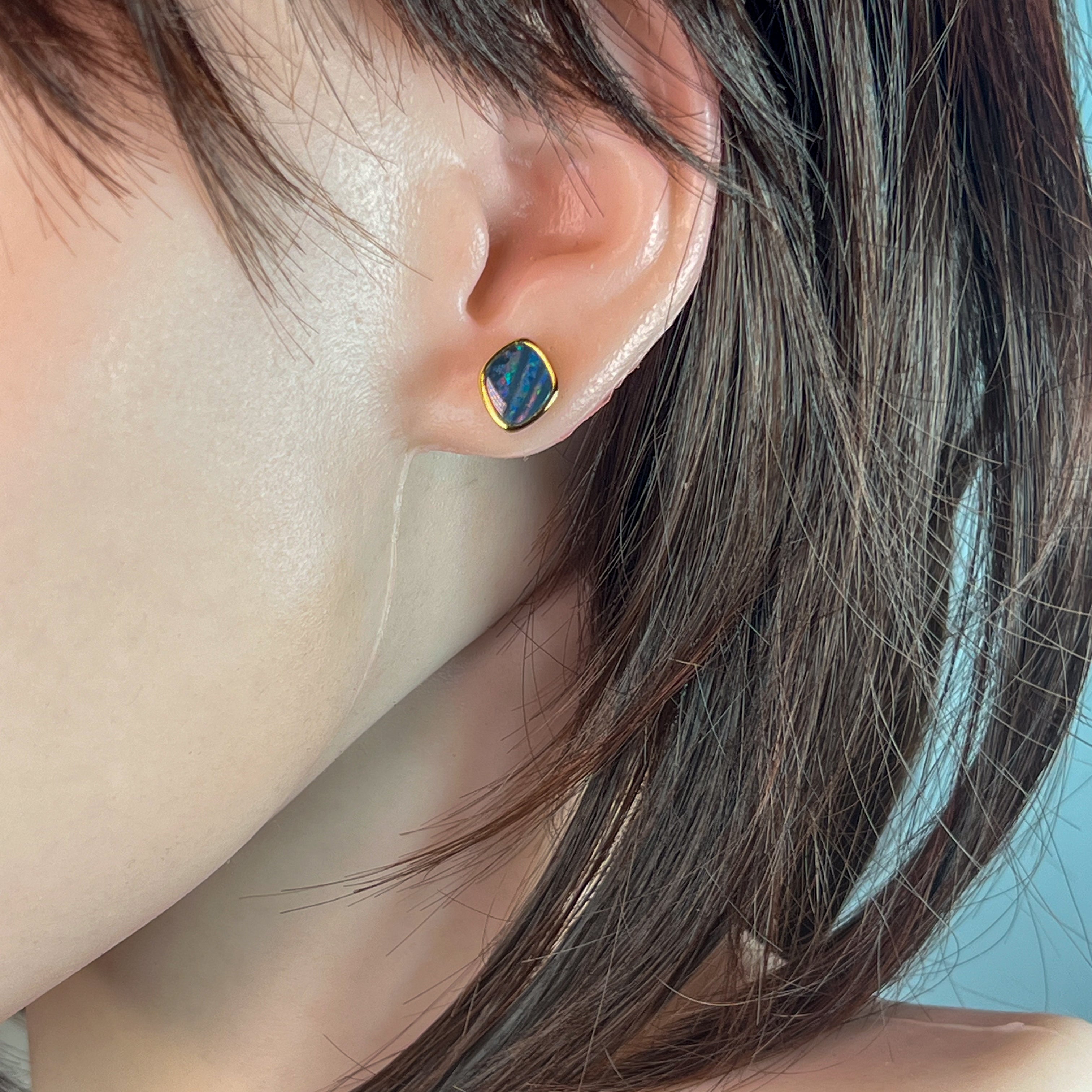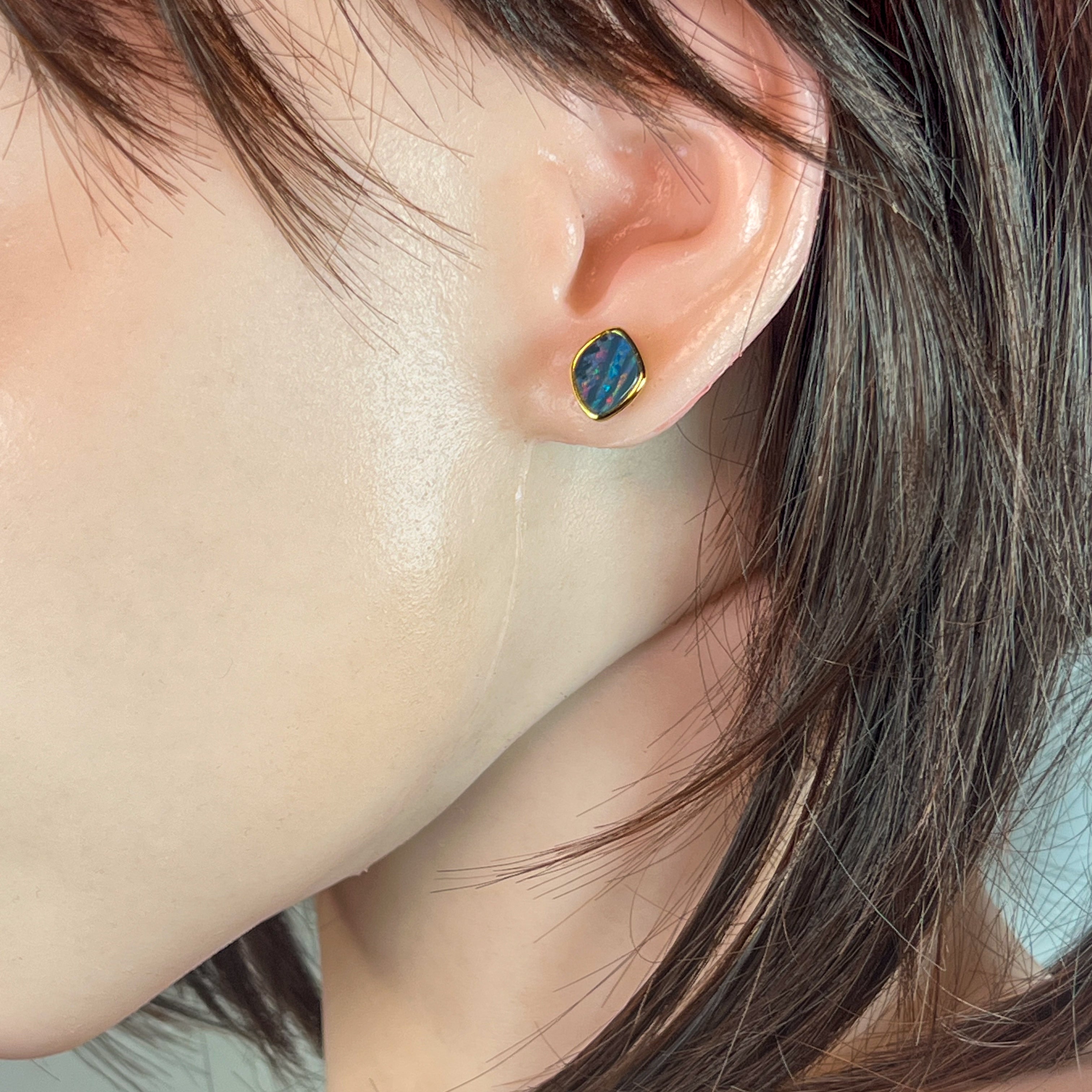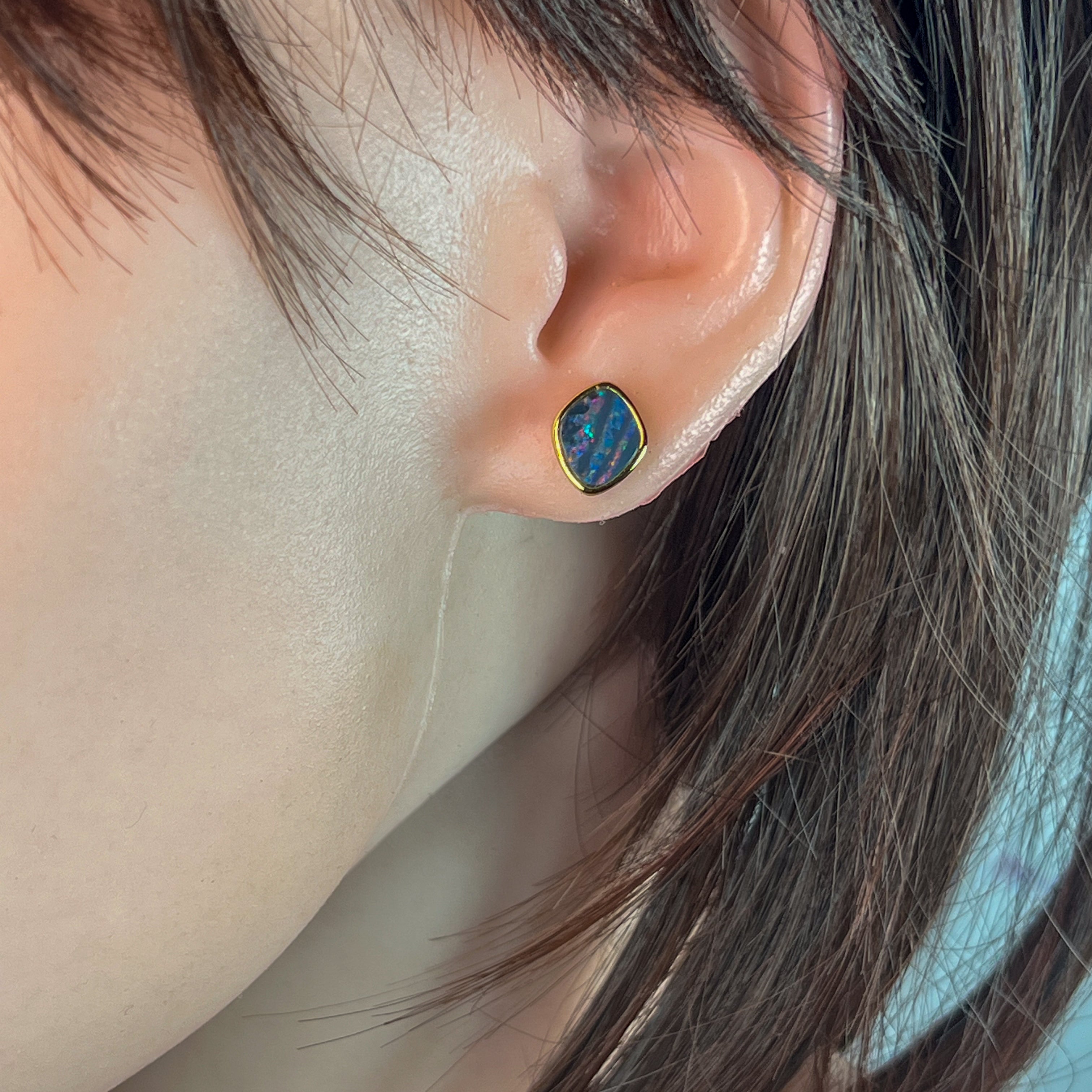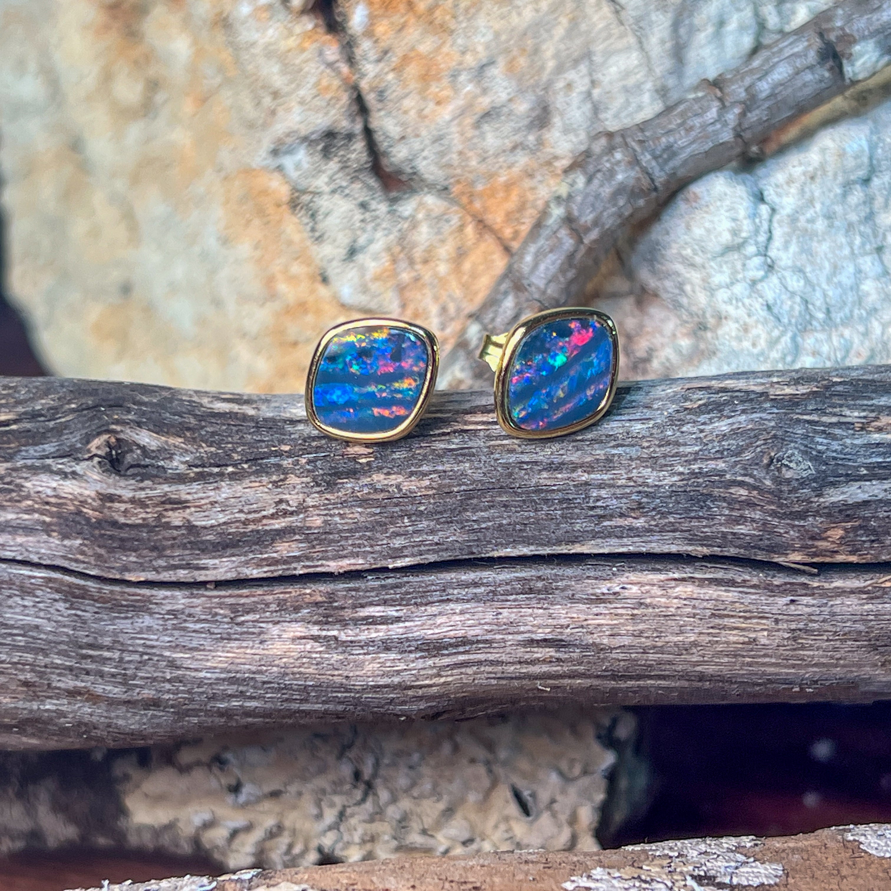 Gold Plated Sterling Silver Opal doublet bezel set stud earrings
