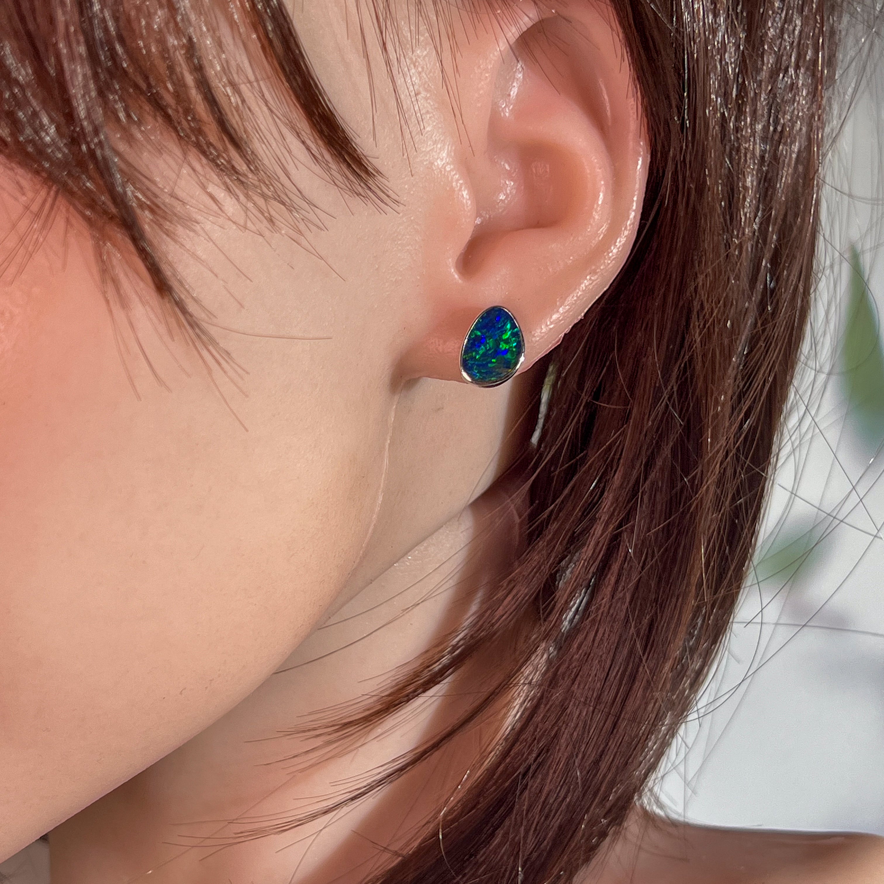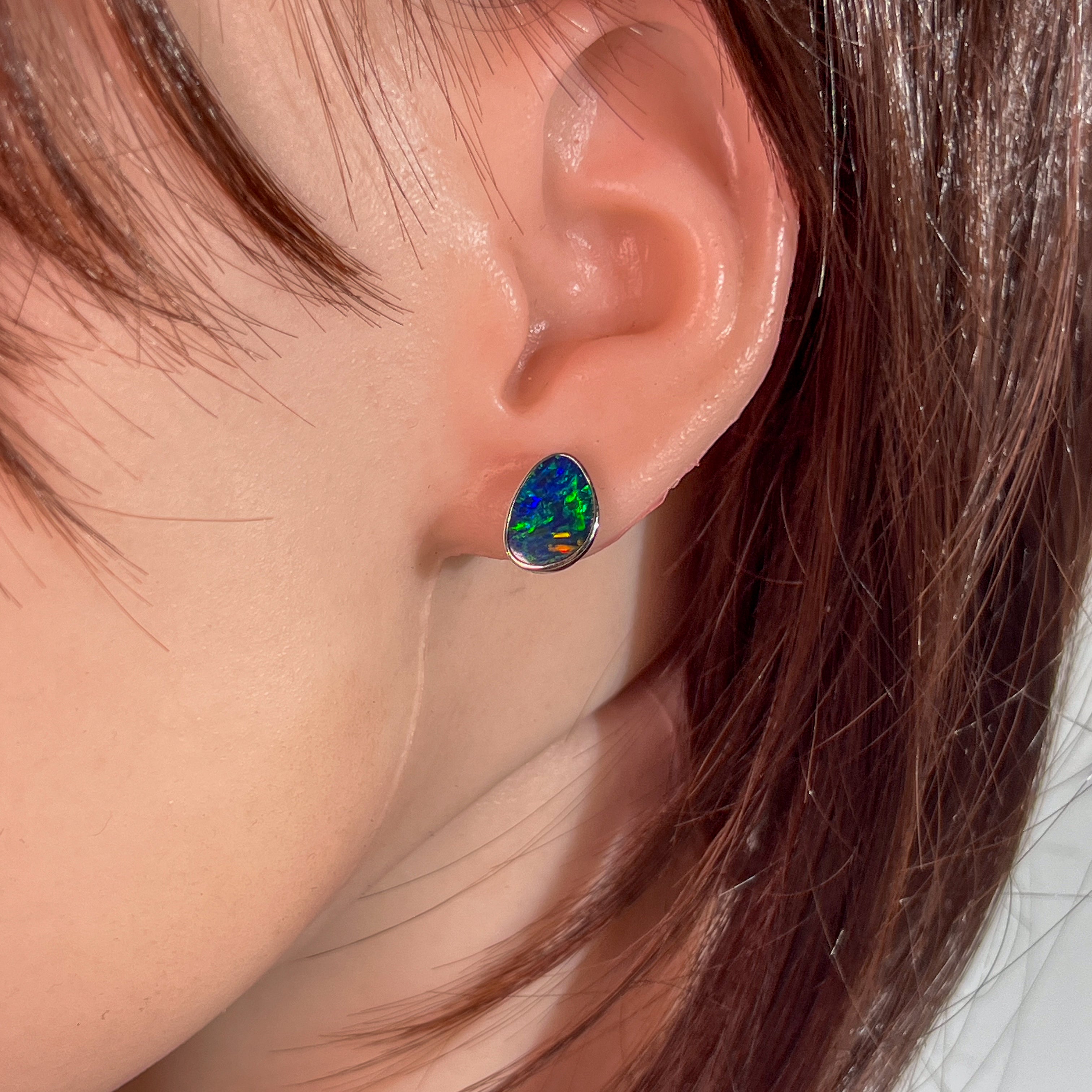 14kt White Gold Opal doublet studs 11x8mm