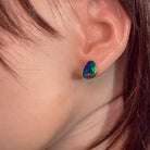 Dare to stand out with our stunning 14kt White Gold Opal doublet studs, featuring a mesmerizing 11x8mm birthstone. These earrings are the perfect choice for those who are not afraid to take risks and make a statement. Add a touch of adventure and elegance to your look!