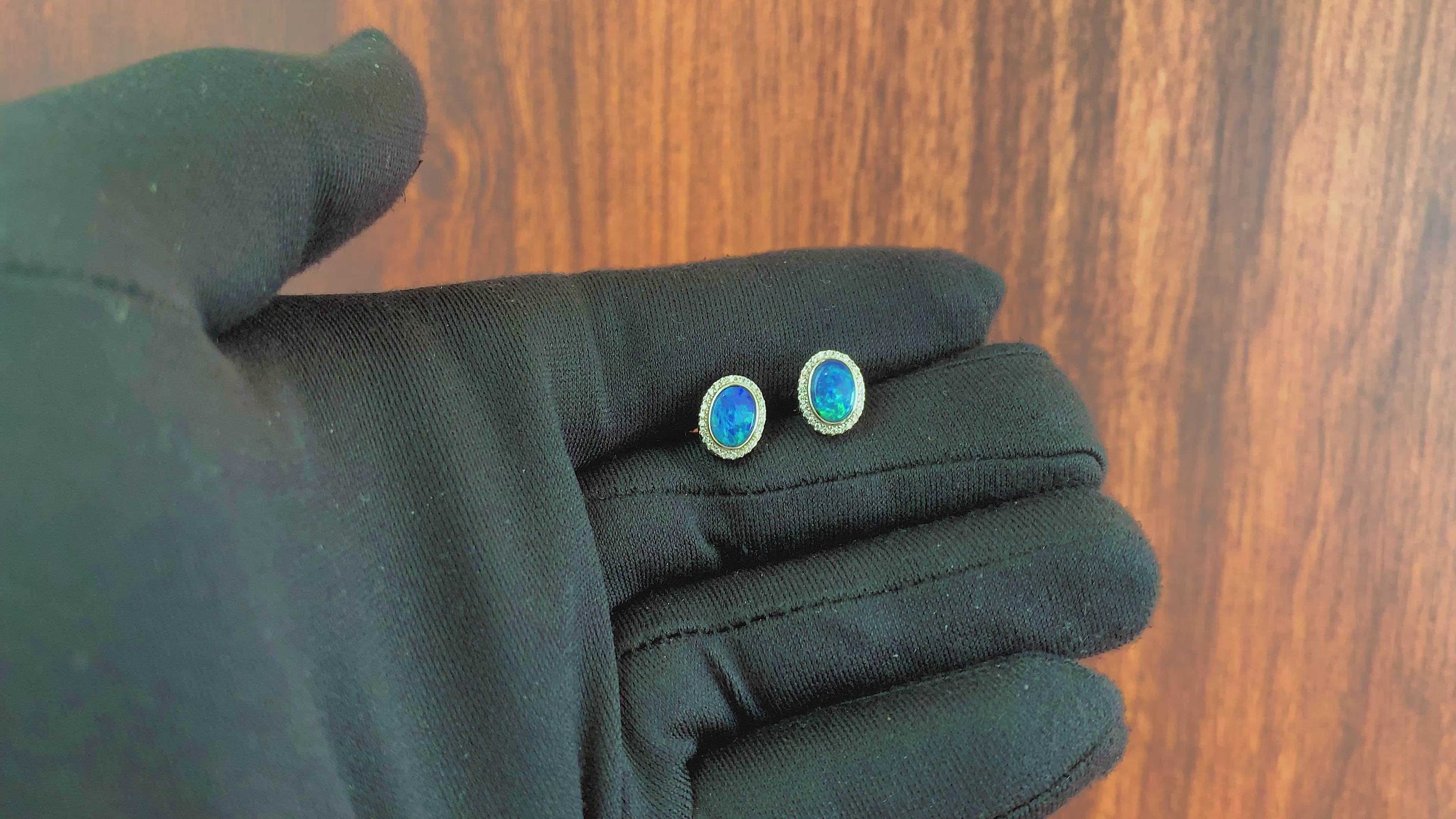Sterling Silver Opal Halo earrings studs2 Australian Opal doublet Oval shape