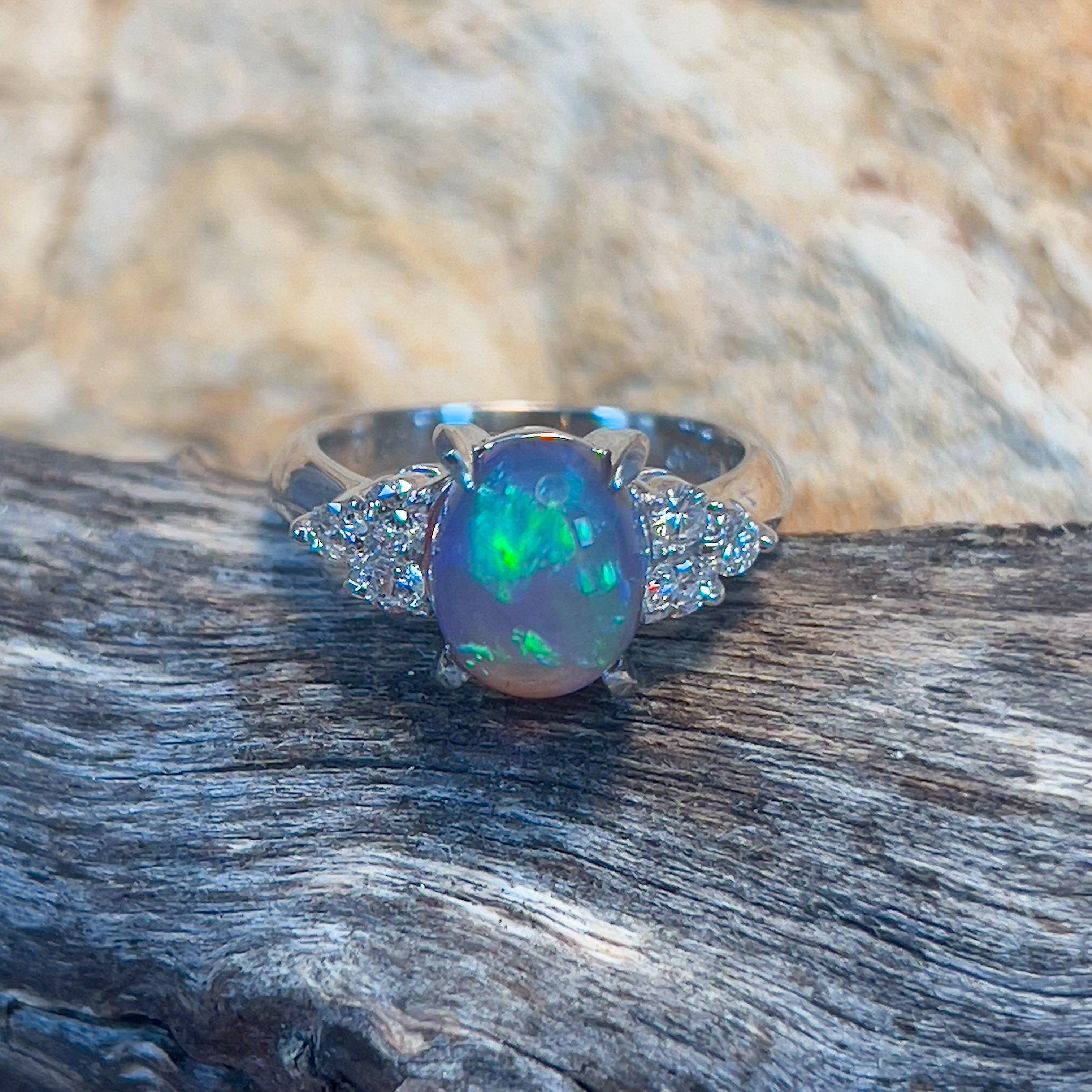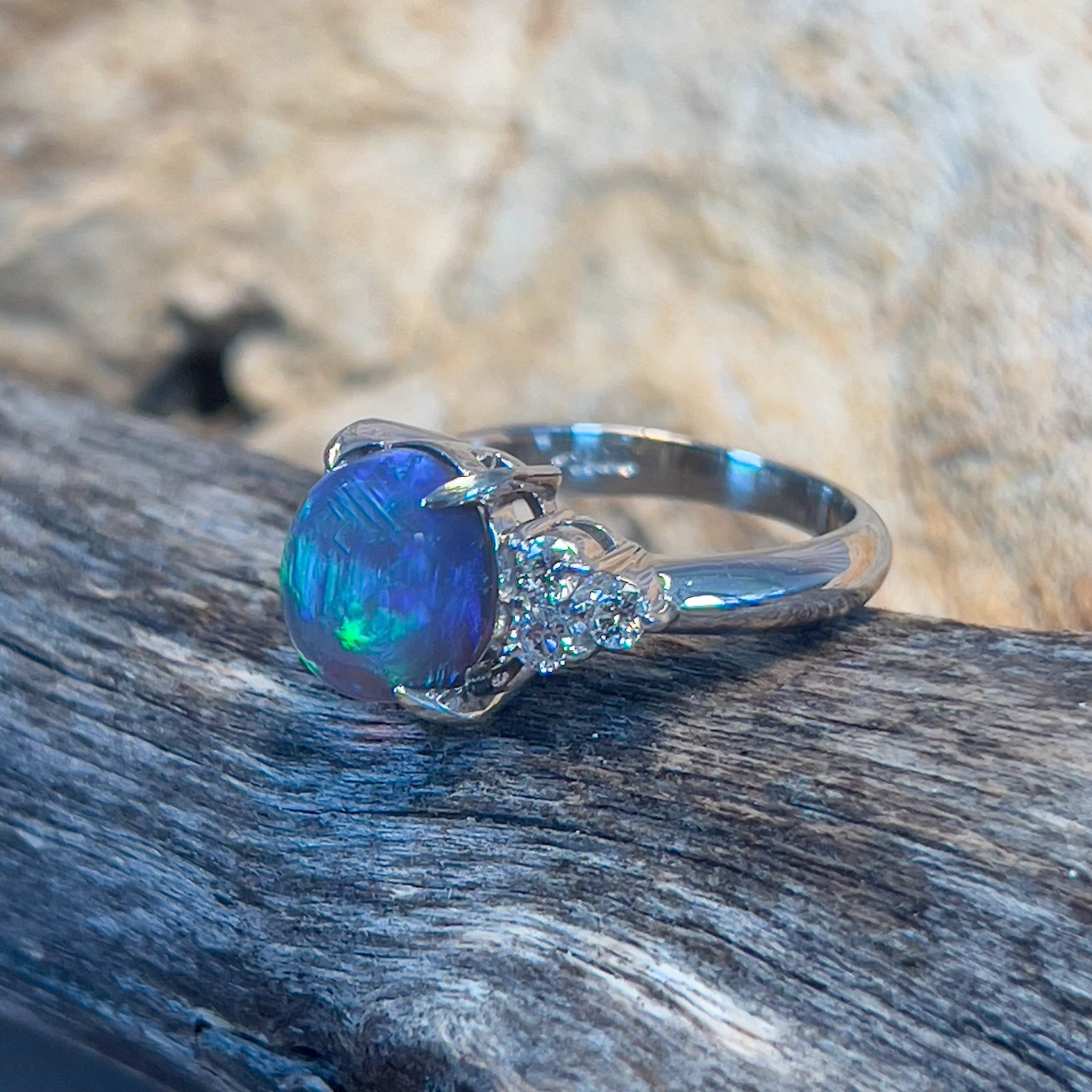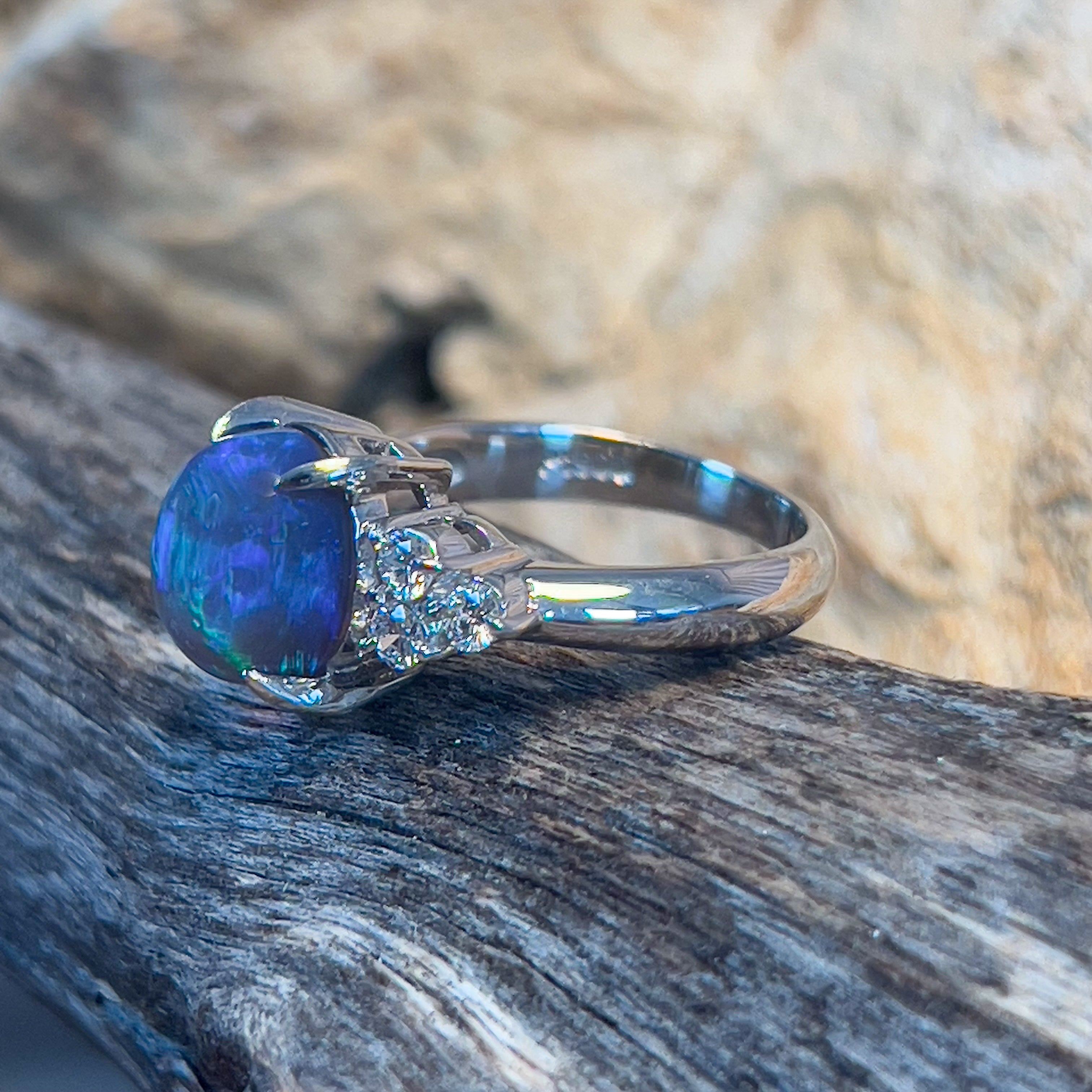 Platinum Black Opal 2.92ct and 0.33ct 6 Diamond ring