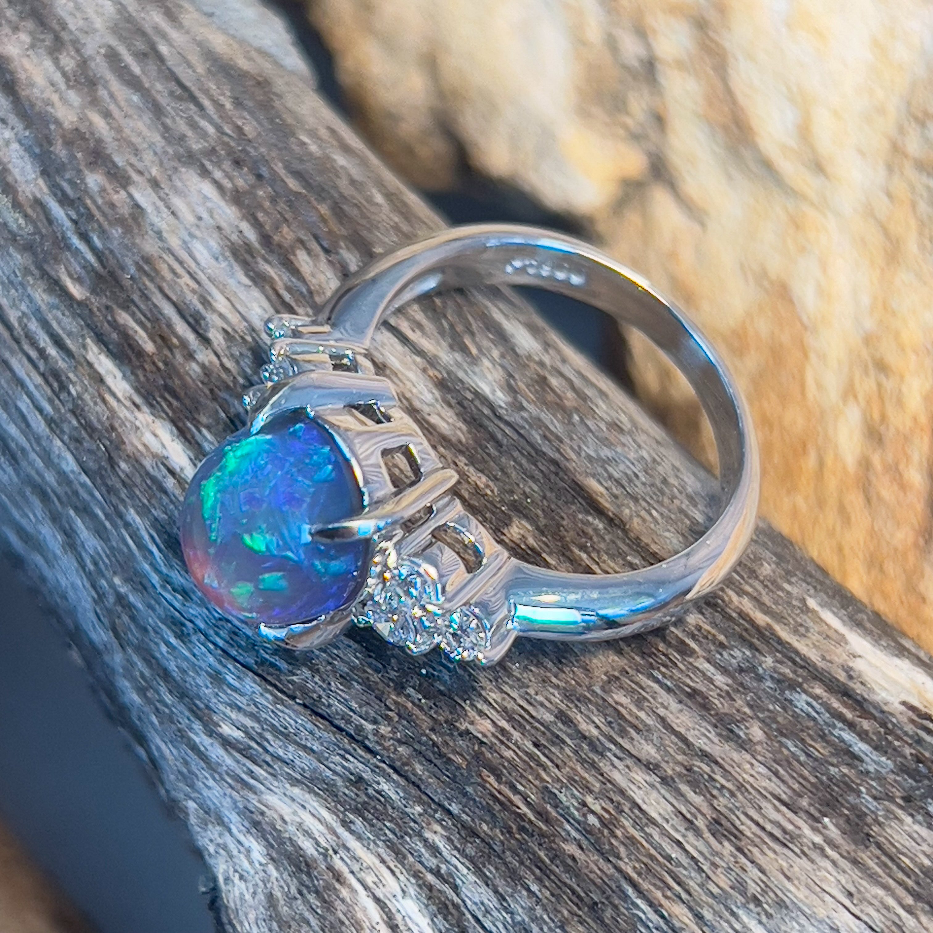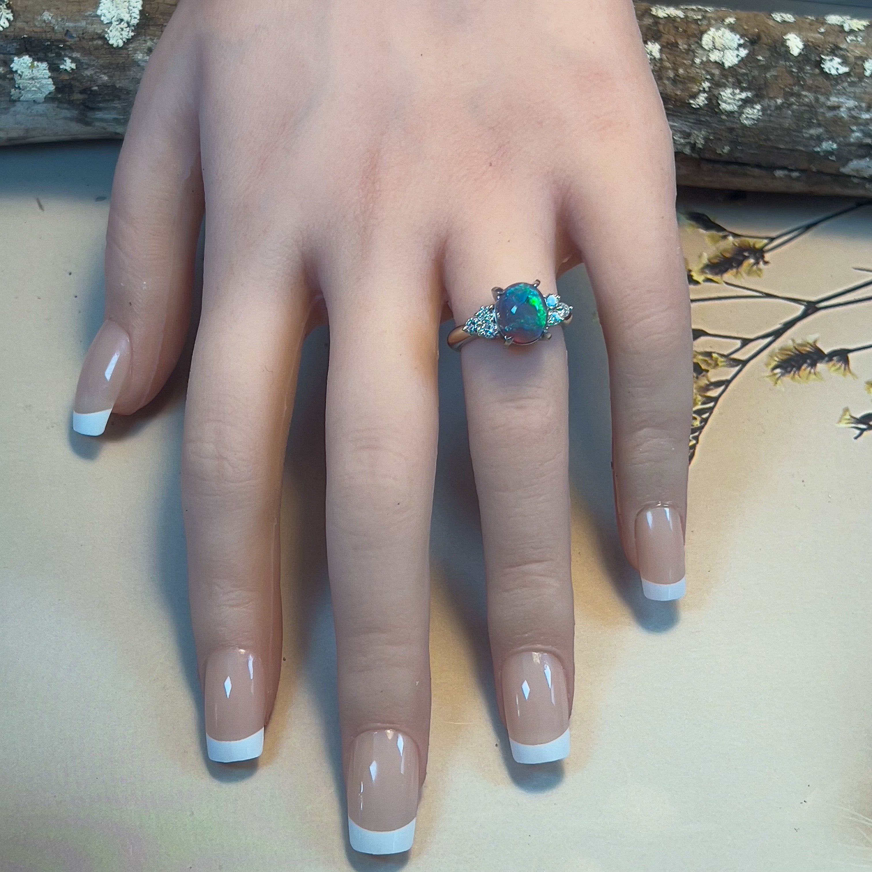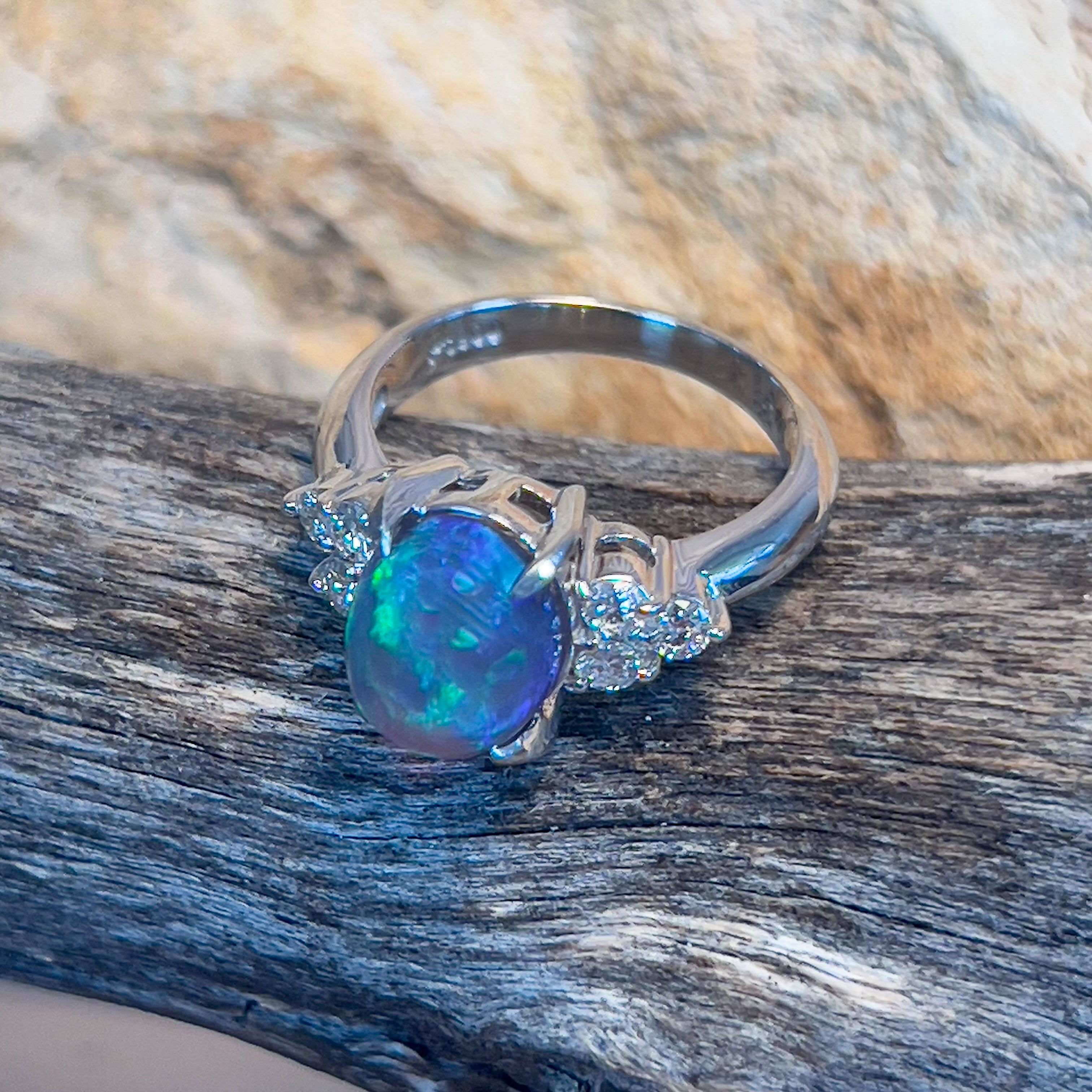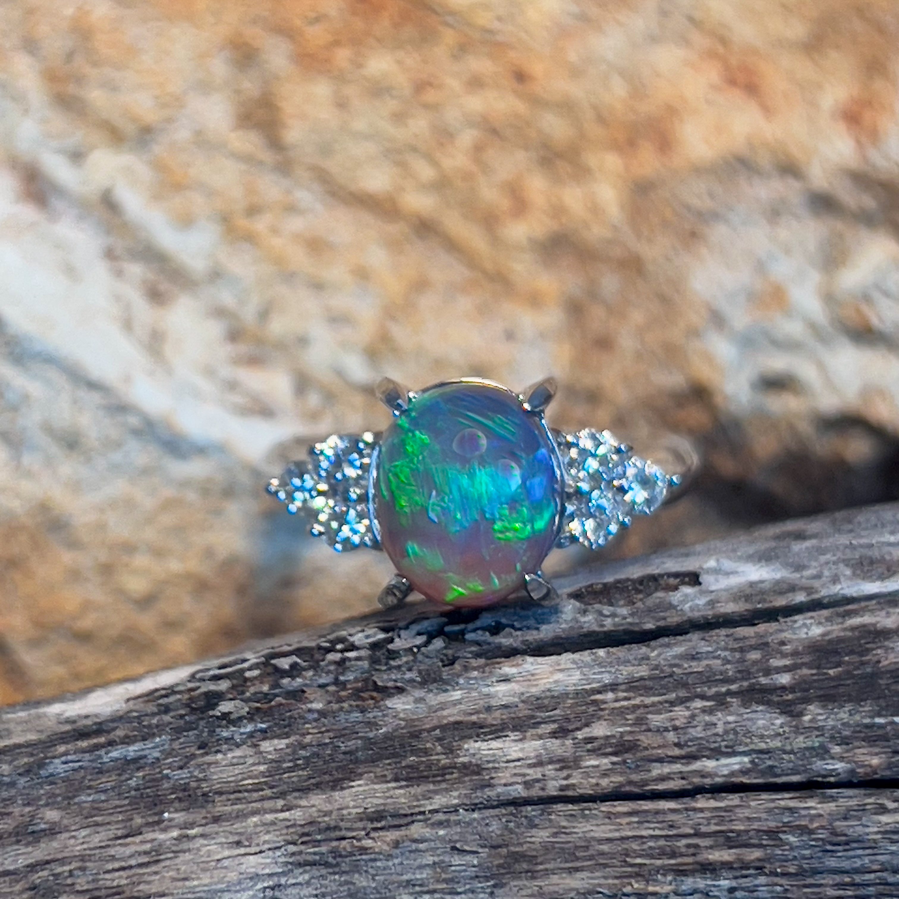Platinum Black Opal 2.92ct and 0.33ct 6 Diamond ring