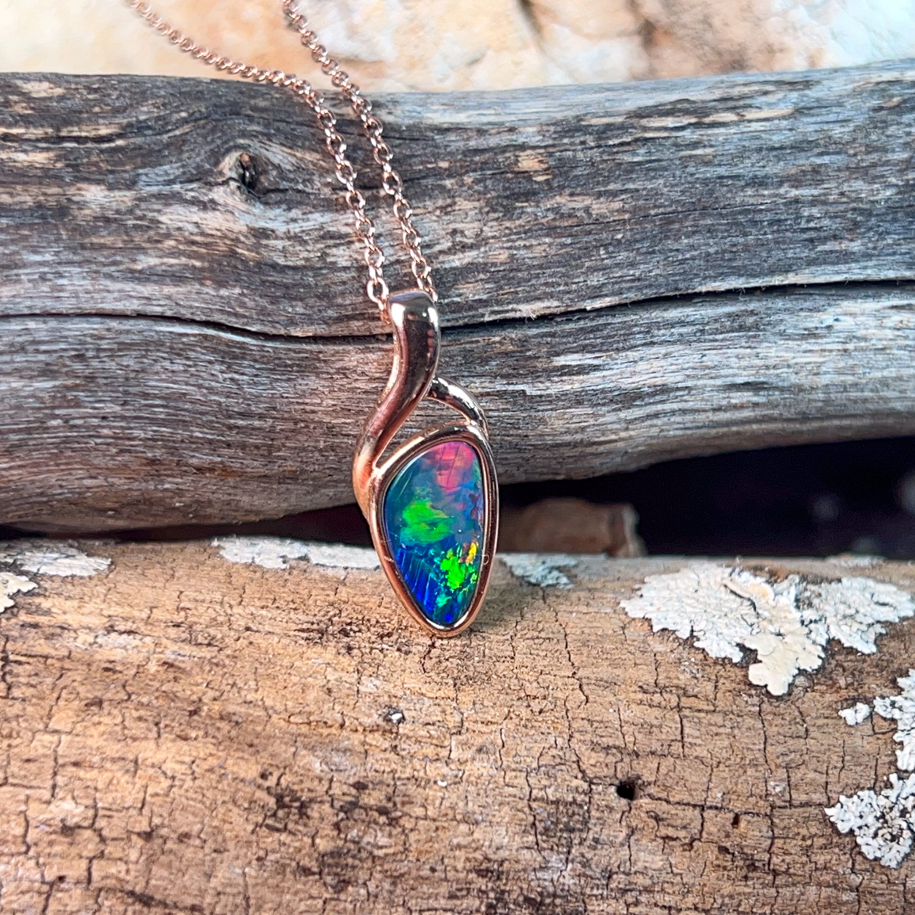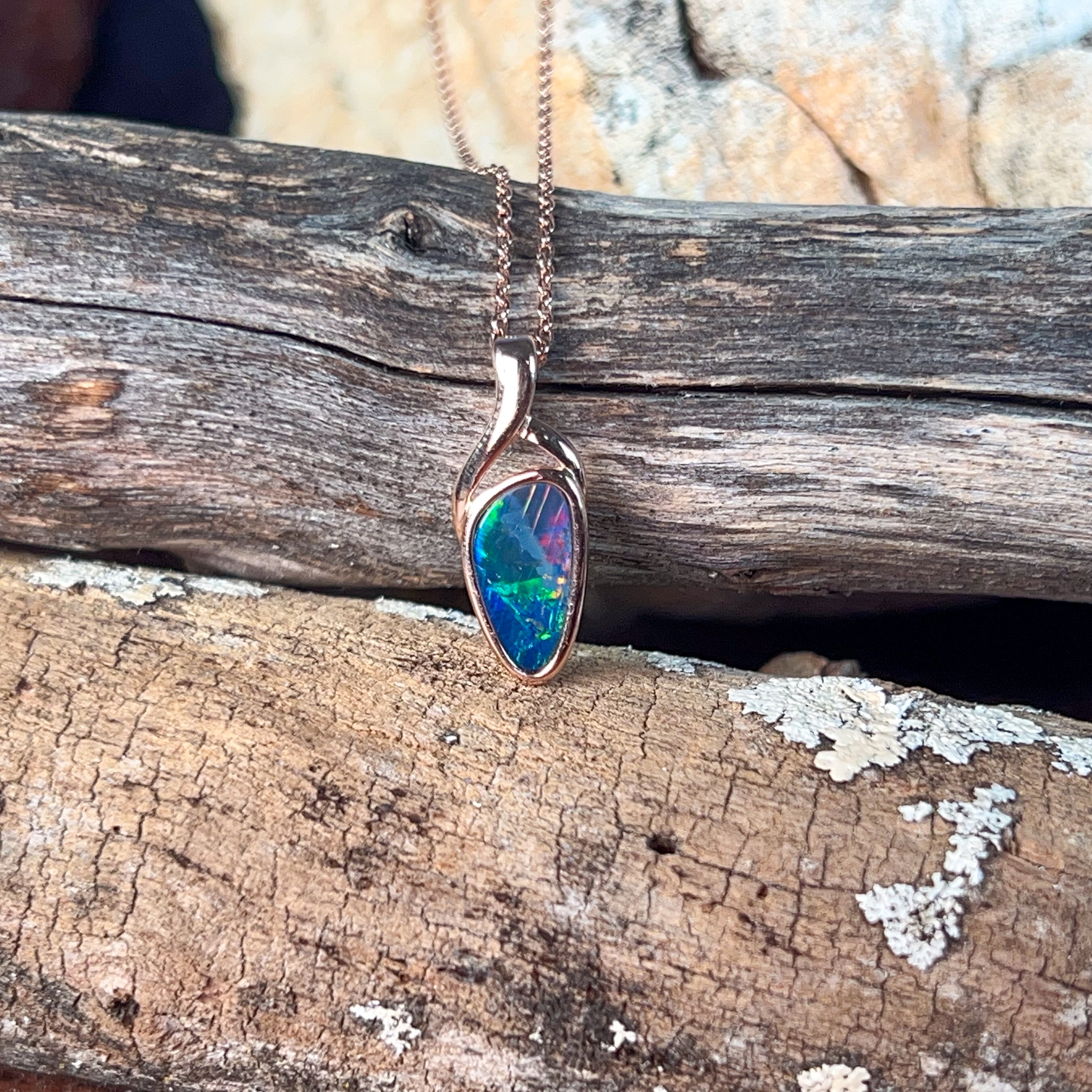 Elevate your jewellery collection with this stunning rose gold plated opal doublet pendant. Featuring a captivating 14x8mm stone, this piece combines the mesmerising play-of-colour that opals are renowned for with the warmth of rose gold plating. Perfect for everyday elegance or special occasions, the doublet construction offers exceptional durability while maintaining that coveted opal brilliance. A versatile addition that effortlessly transitions from casual to sophisticated styling.