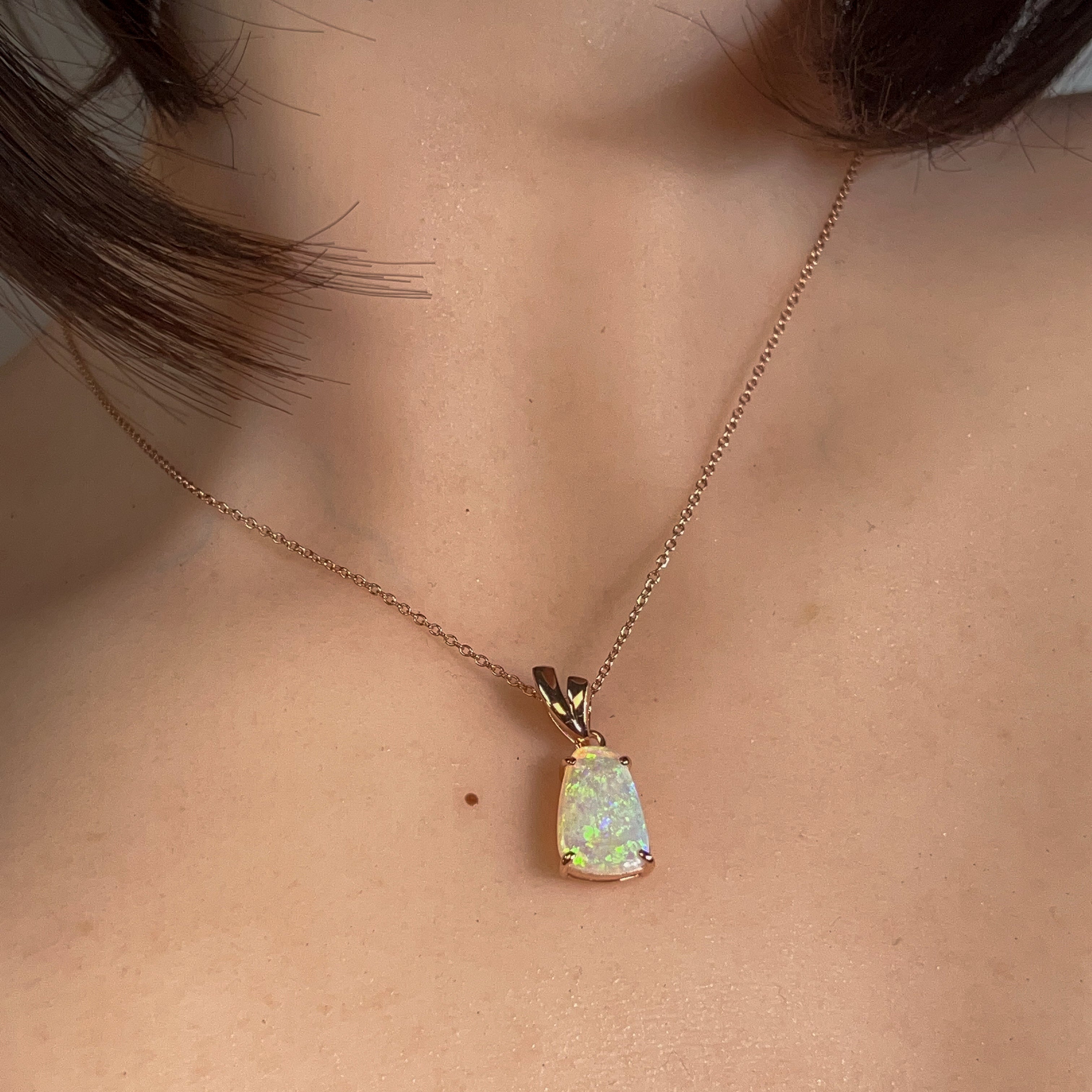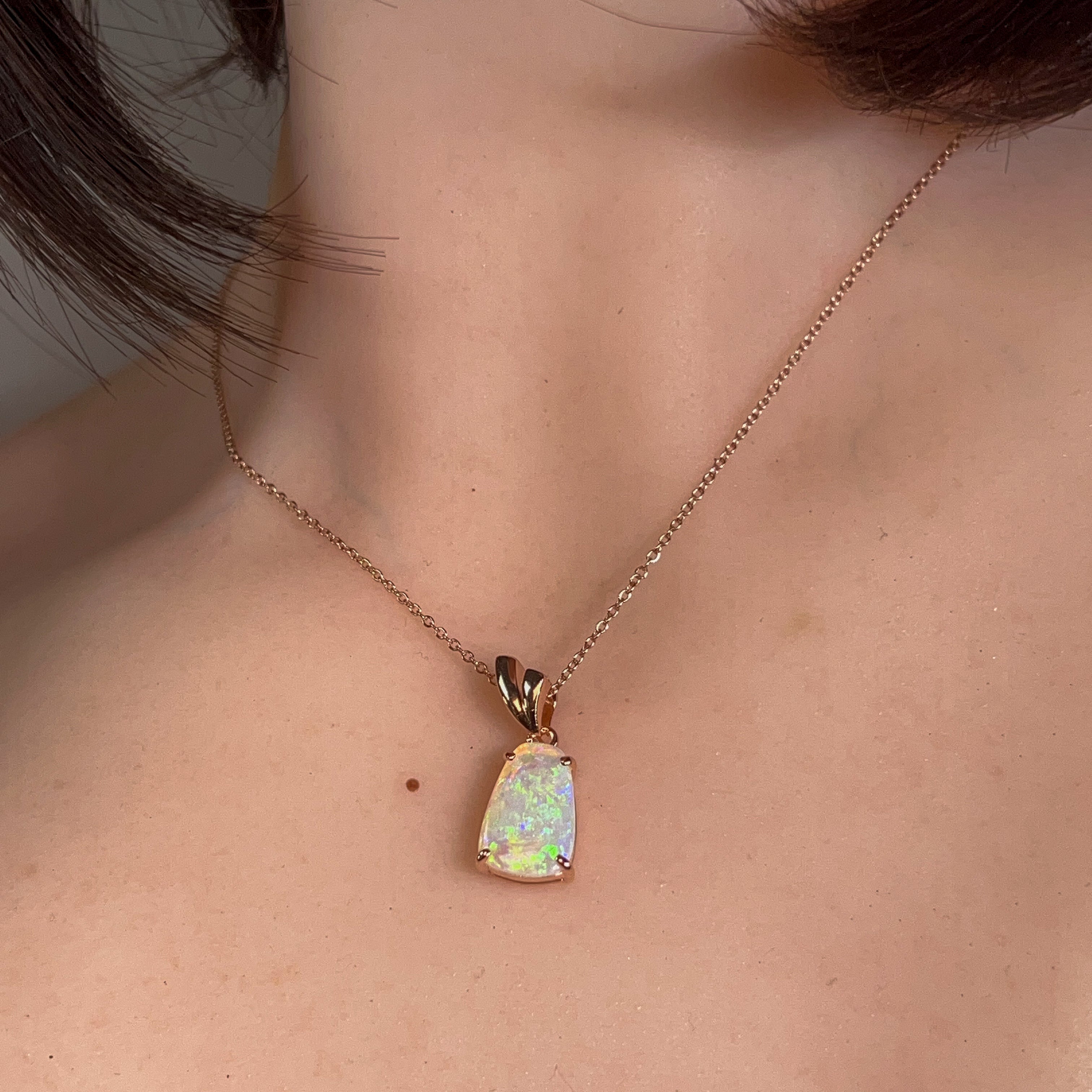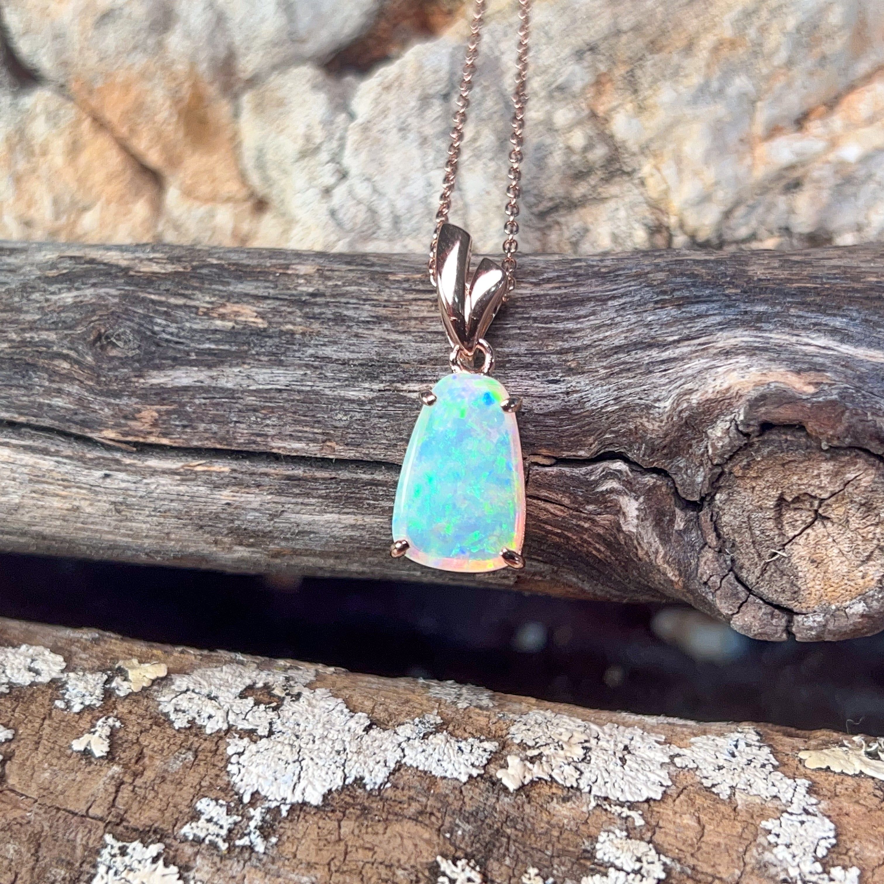 Sparkle with a touch of rose gold magic! This stunning crystal opal pendant features a brilliant 1.85ct stone set in rose gold-plated silver. Perfect for adding a pop of colour and shimmer to any outfit, this beauty catches the light beautifully and makes a statement wherever you go.