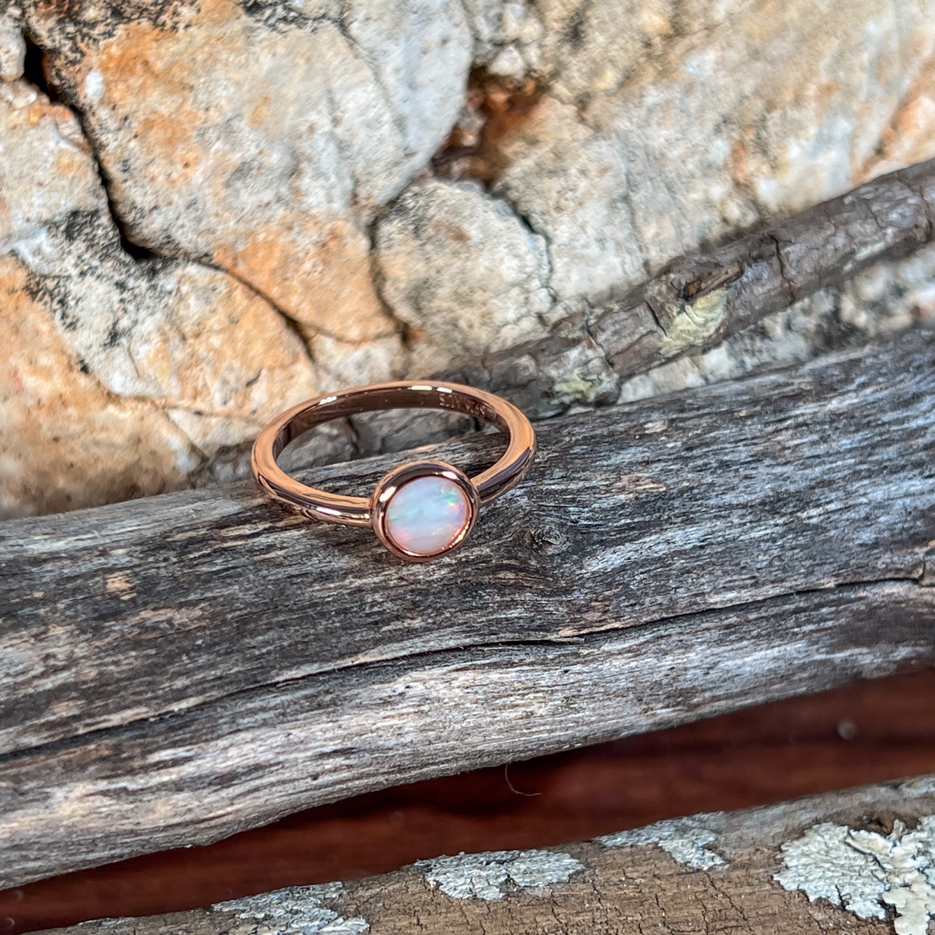 Rose Gold plated silver 6mm White Opal solitaire ring