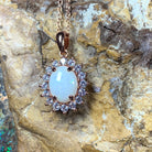 This beautiful rose gold plated silver cluster pendant with a 9x7mm White Opal is perfect for celebrating any special occasion. It's crafted with a unique combination of materials from South Australia and makes an ideal gift for her.