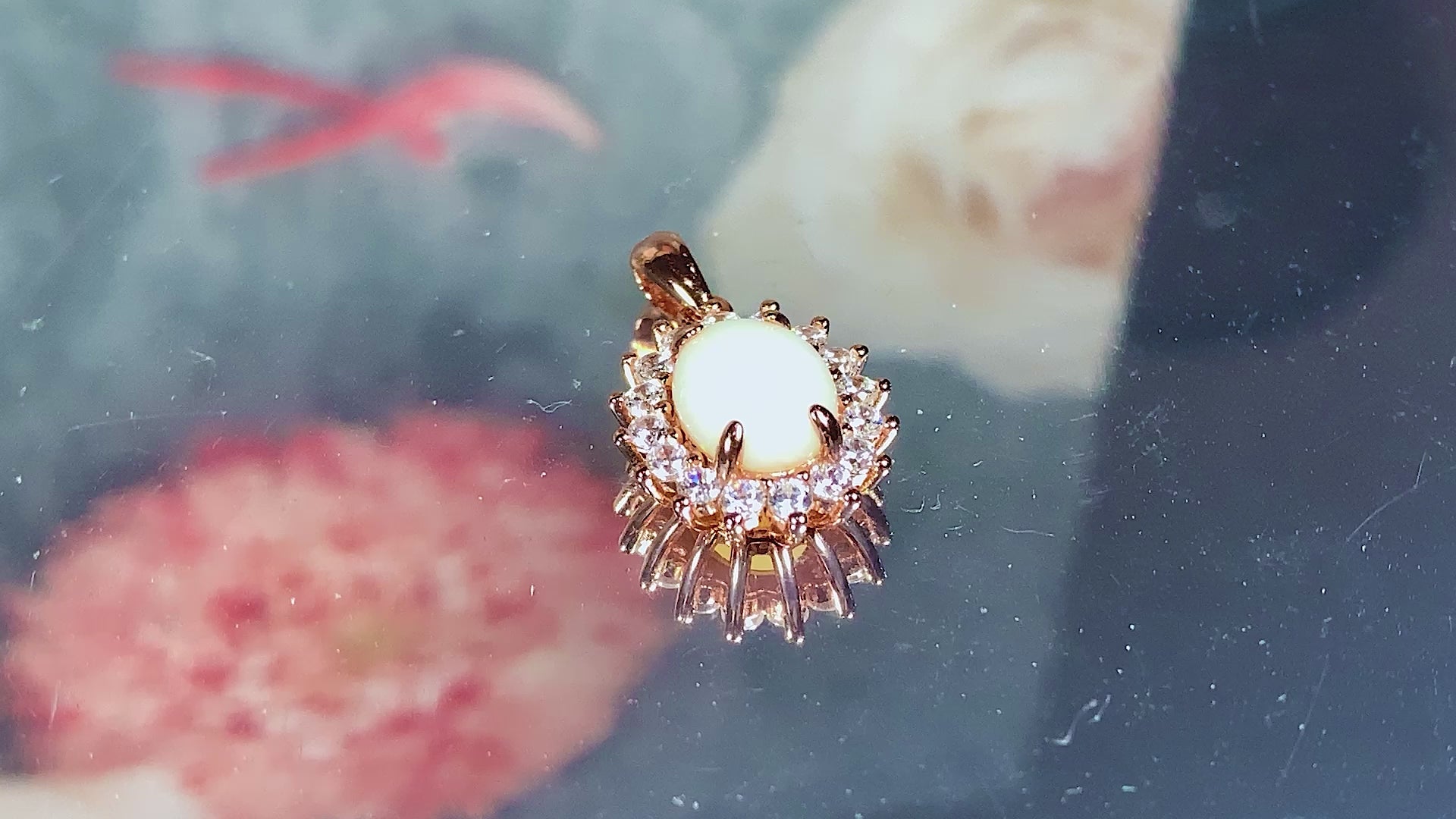 Rose Gold plated silver cluster 9x7mm White Opal pendant