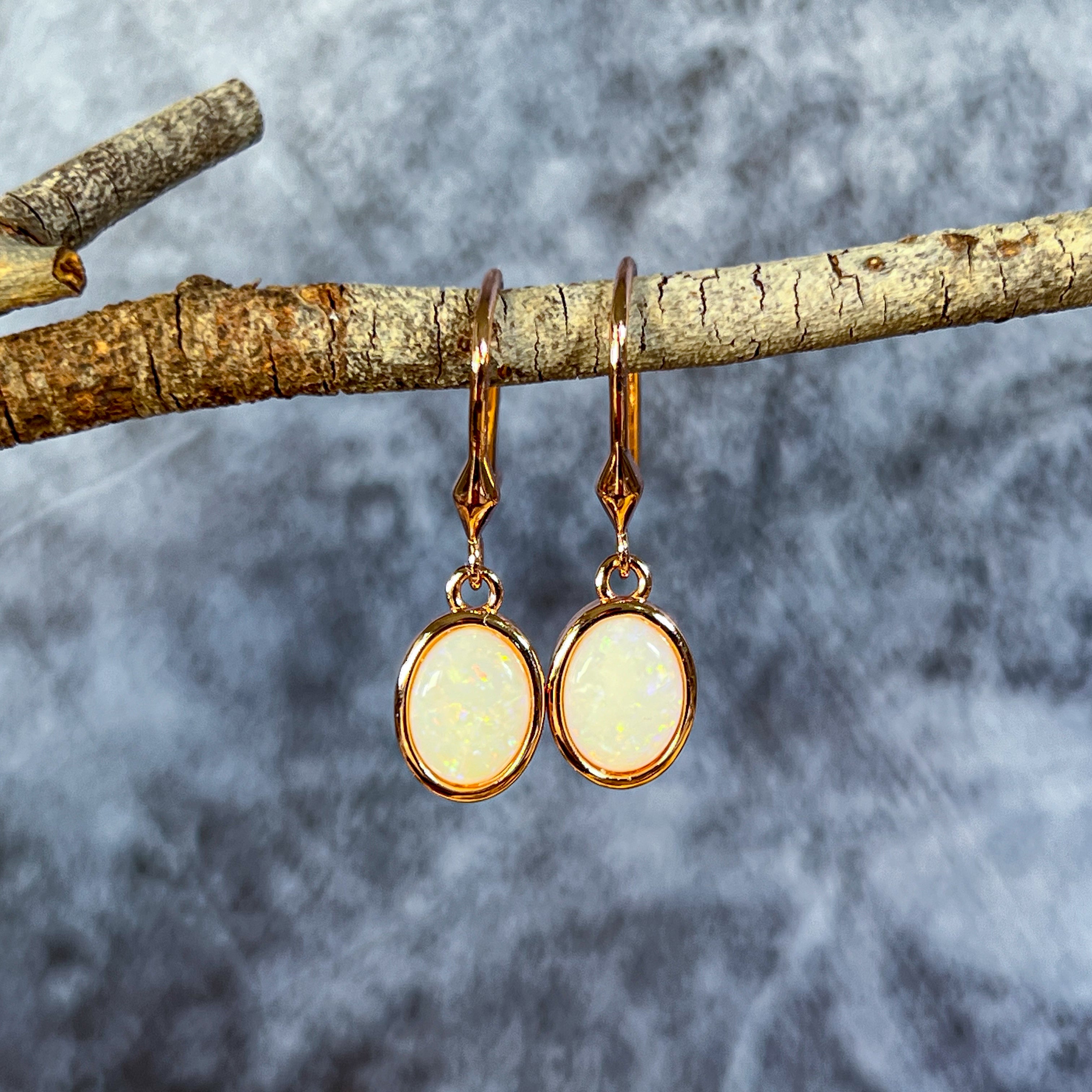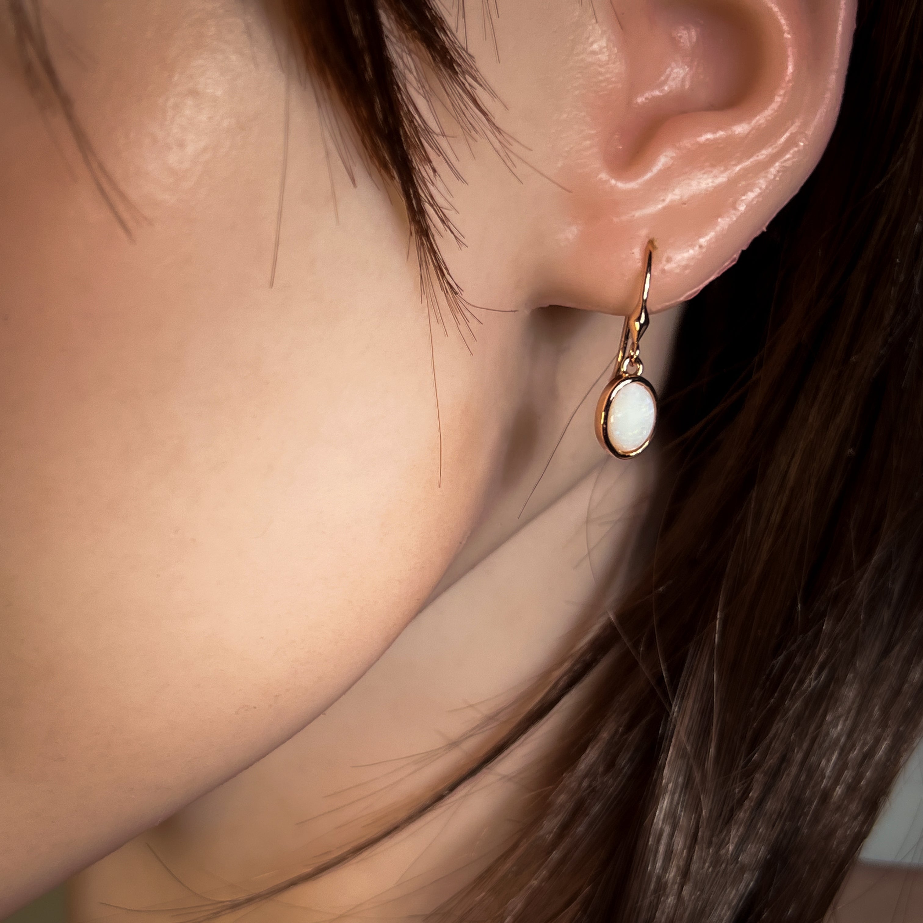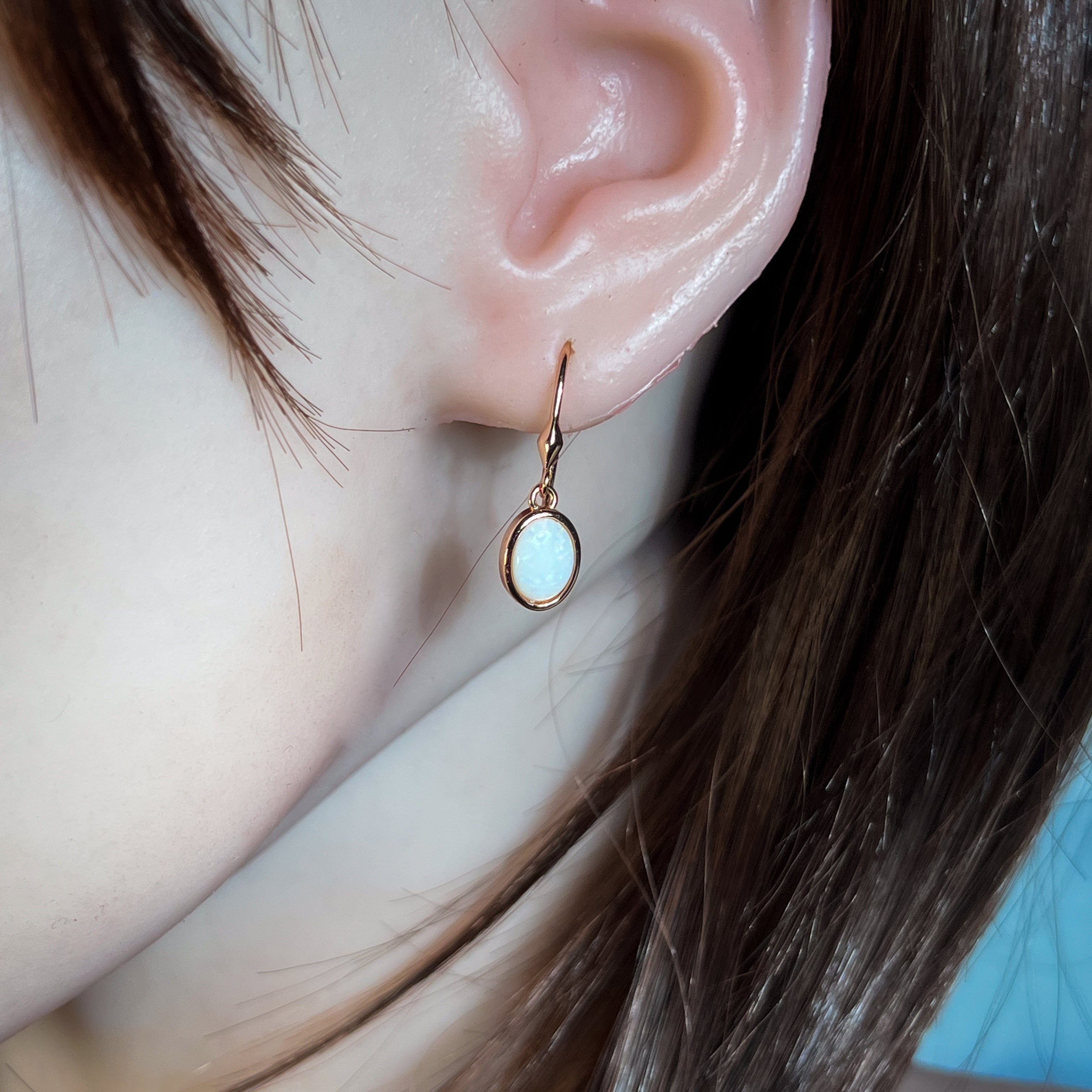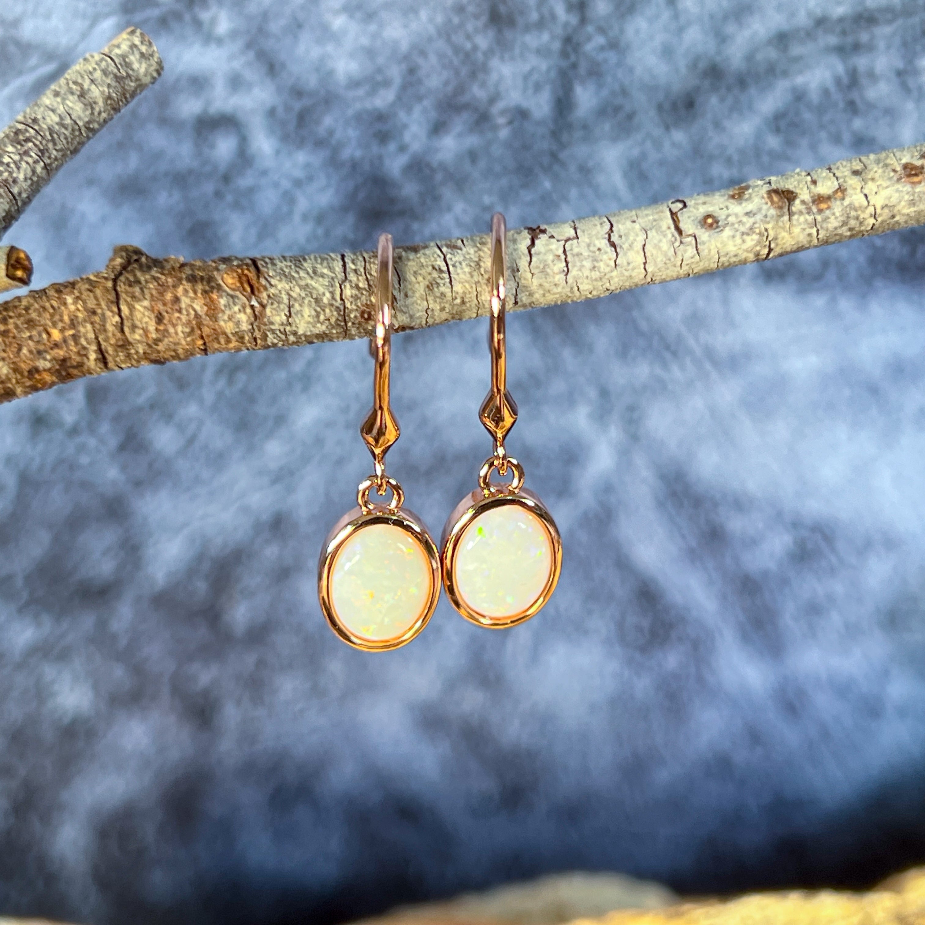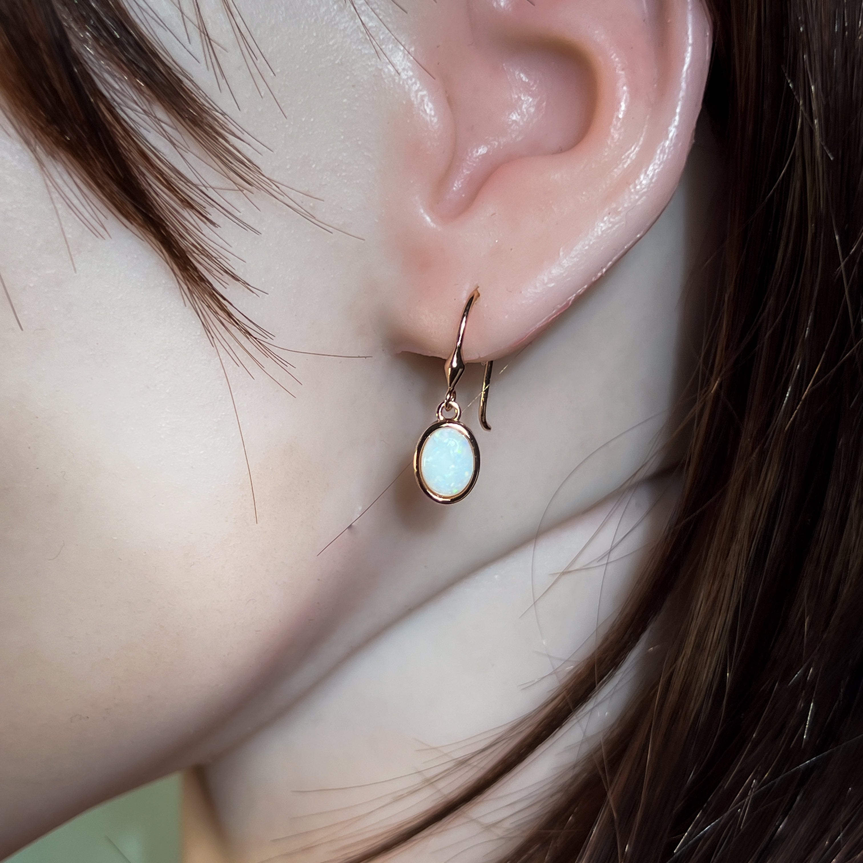 Rose Gold plated Silver danglng bezel set White Opals on hooks