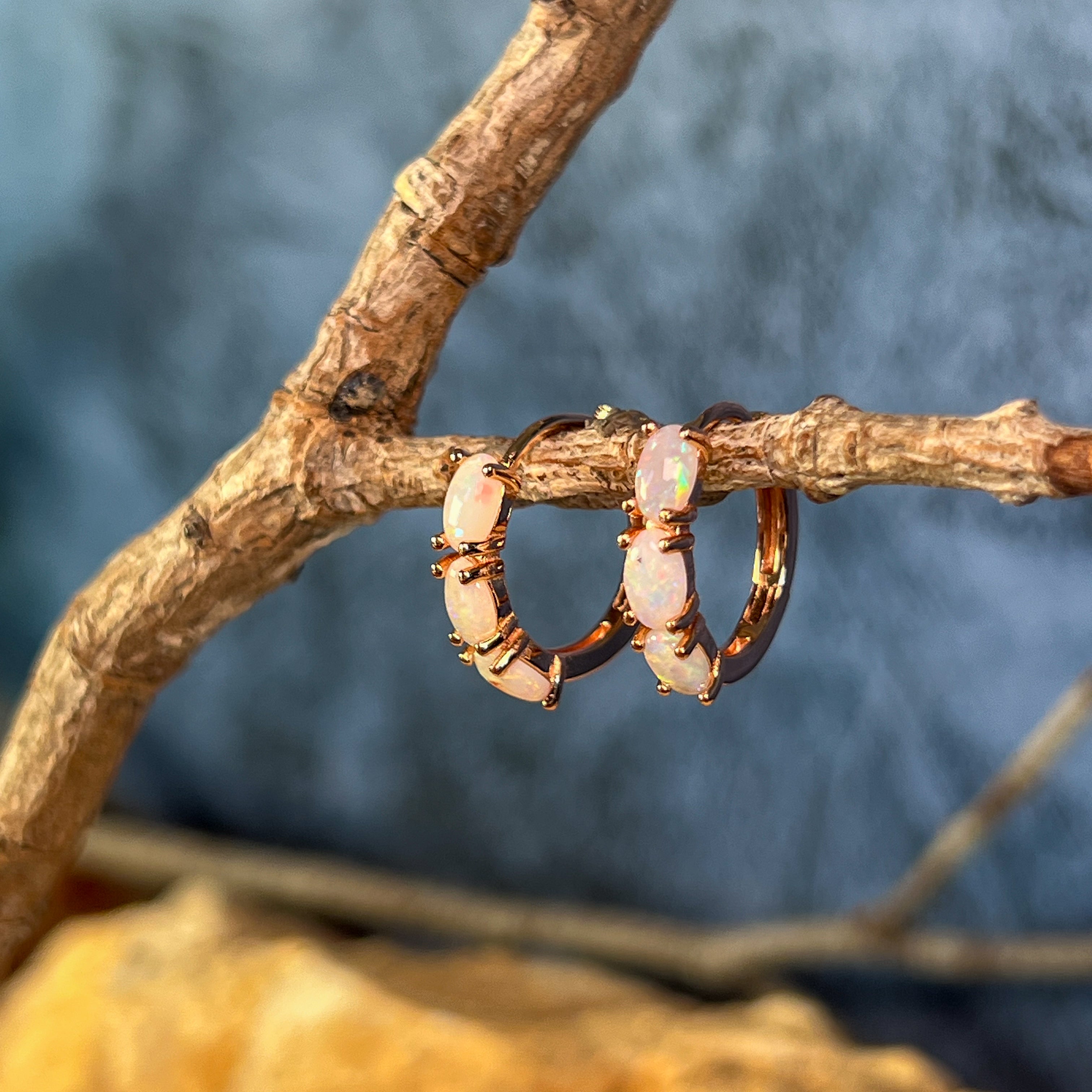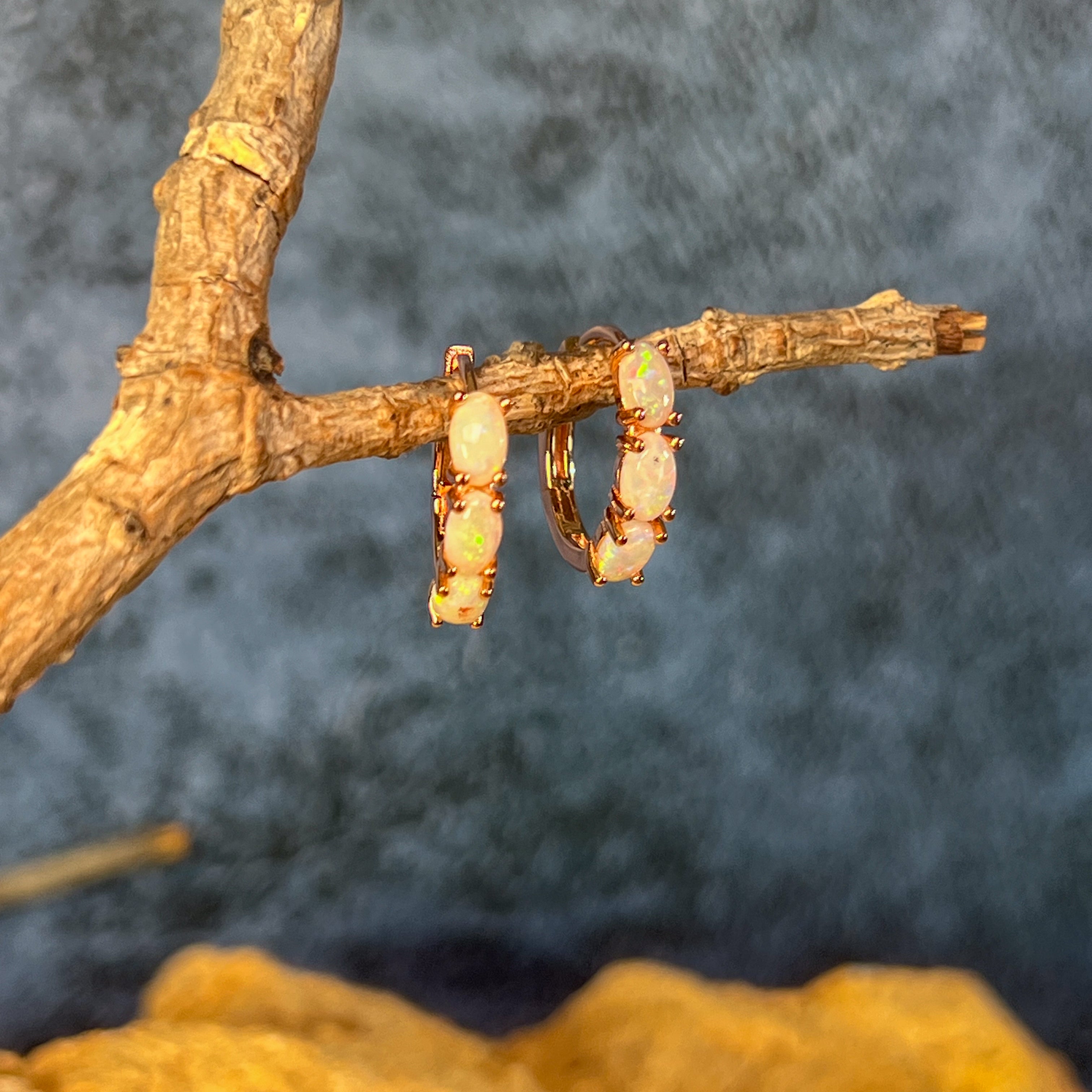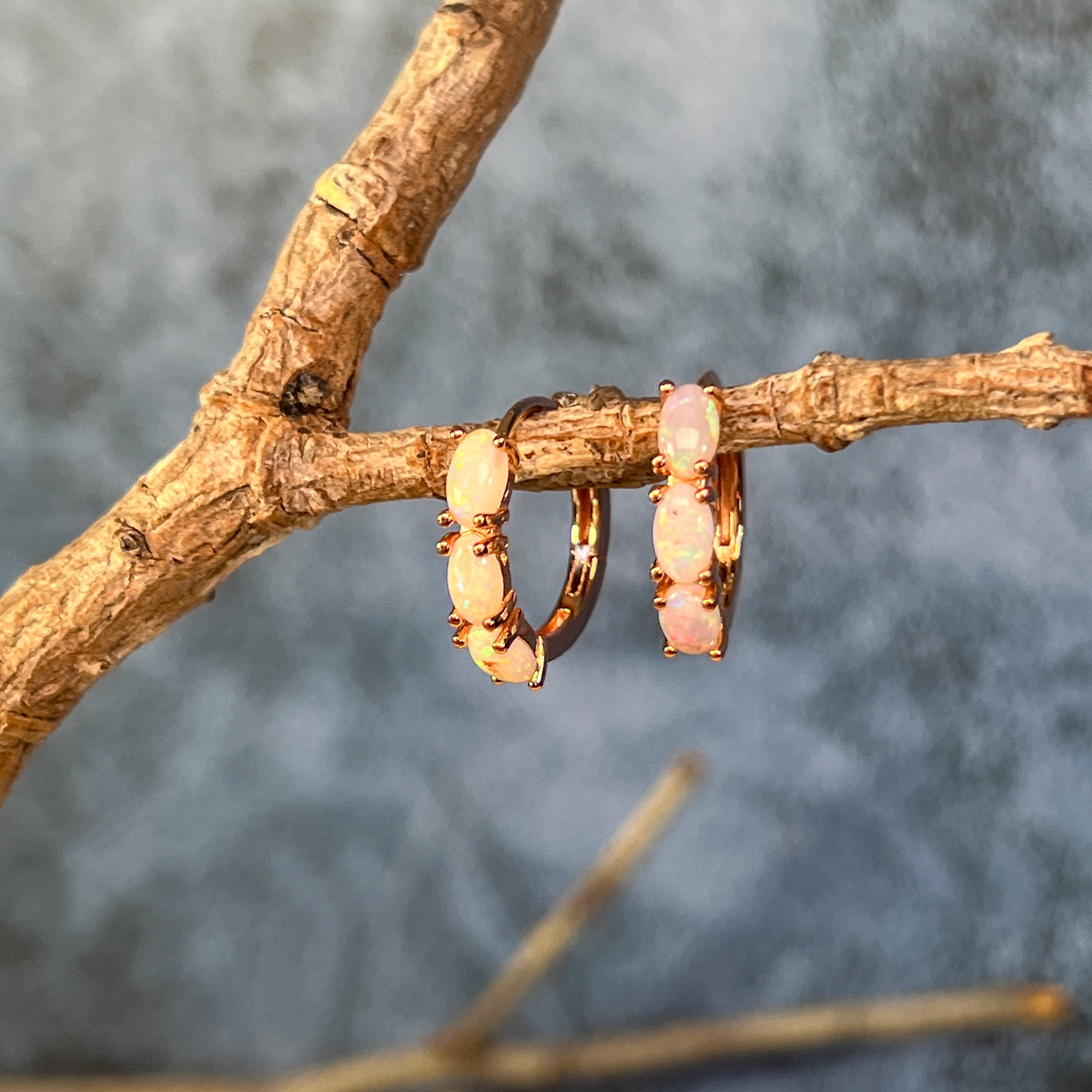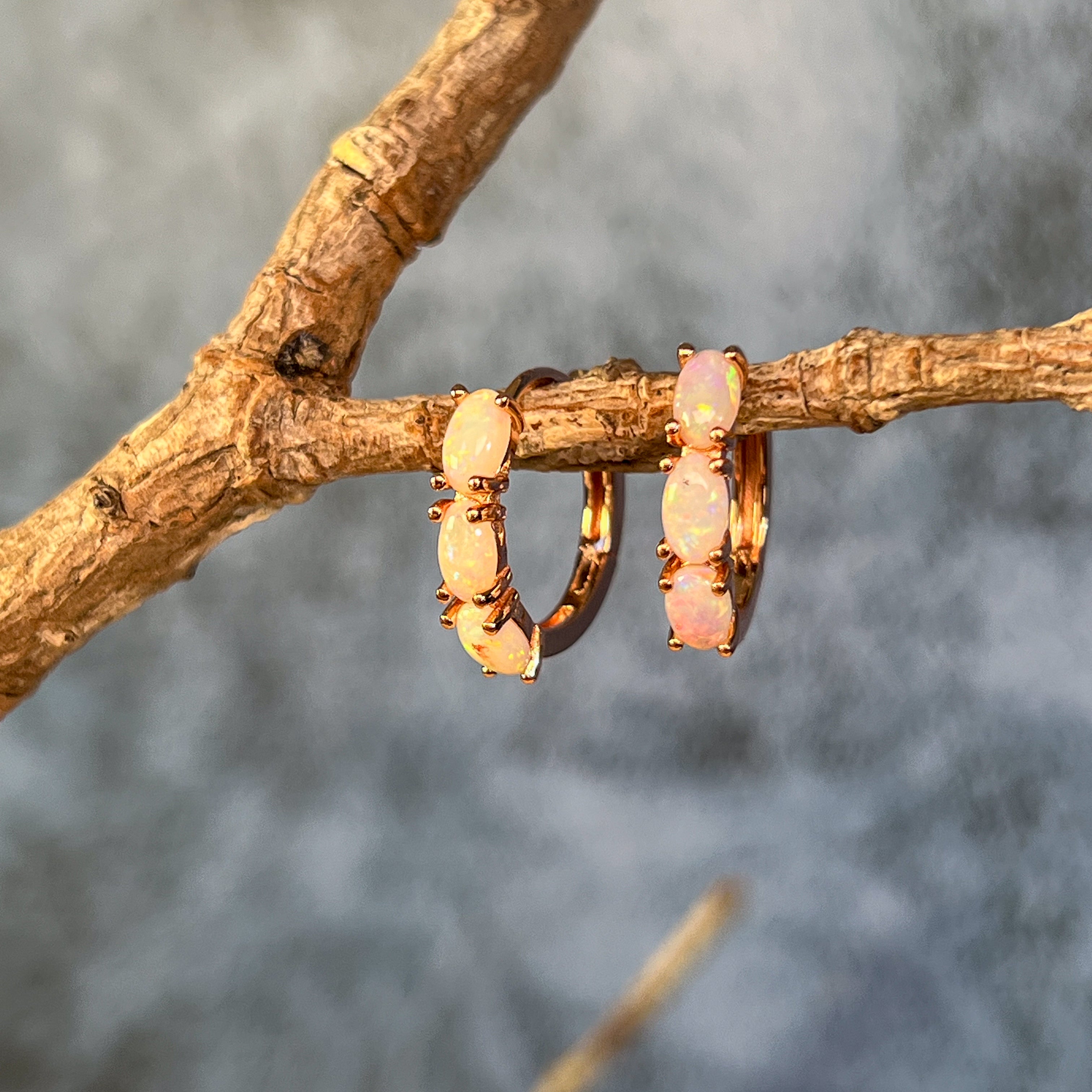 Rose Gold plated Silver huggie style 5x3mm Opal earrings