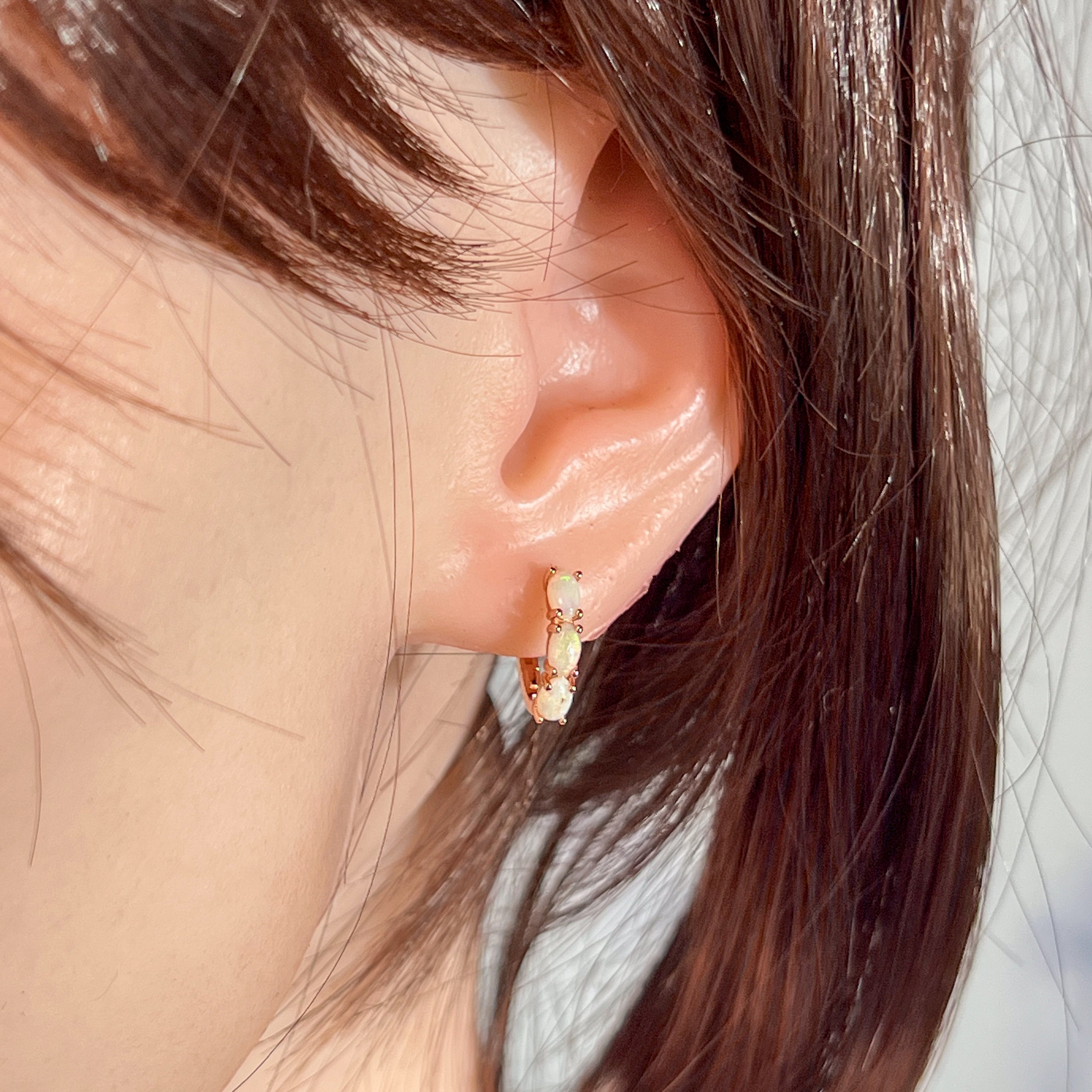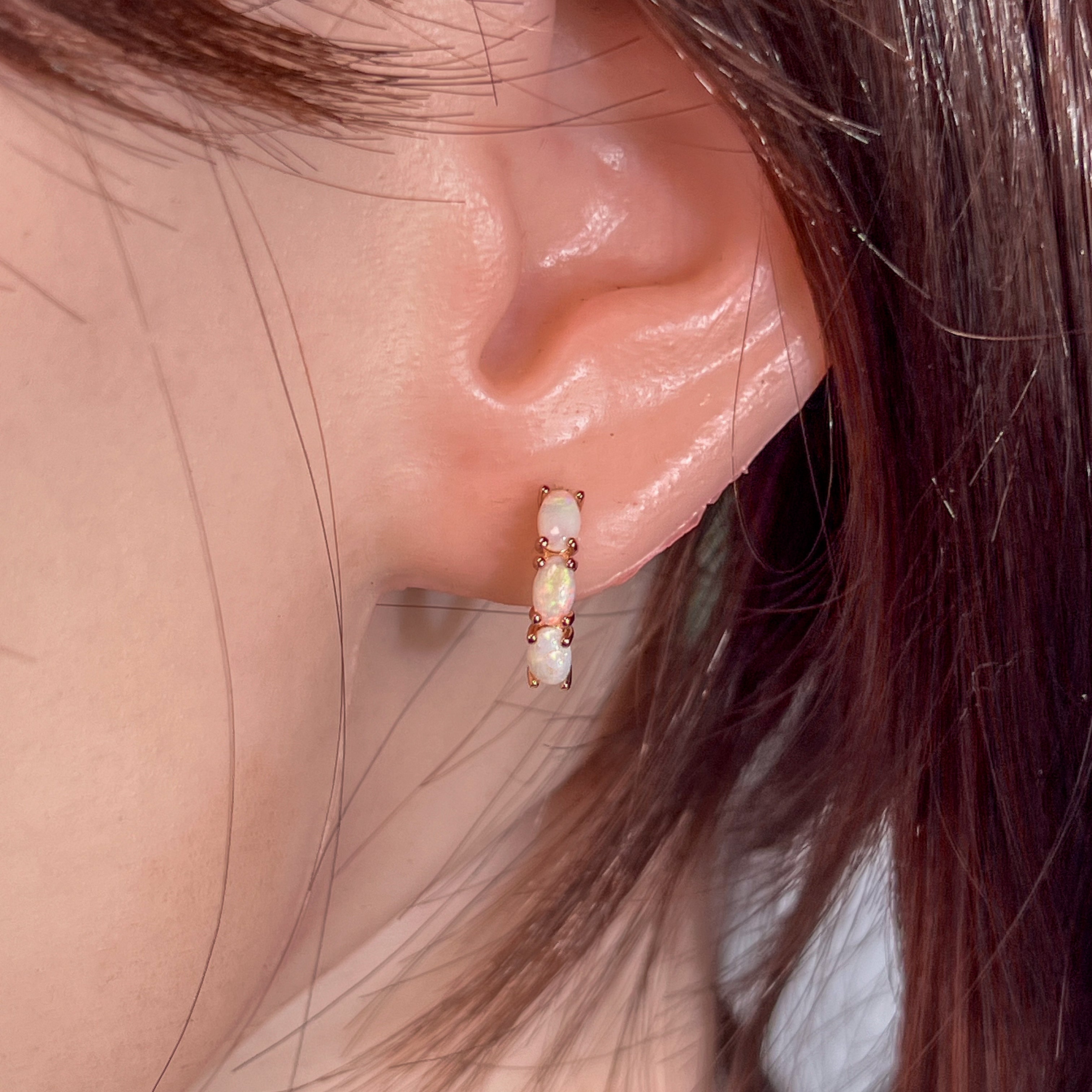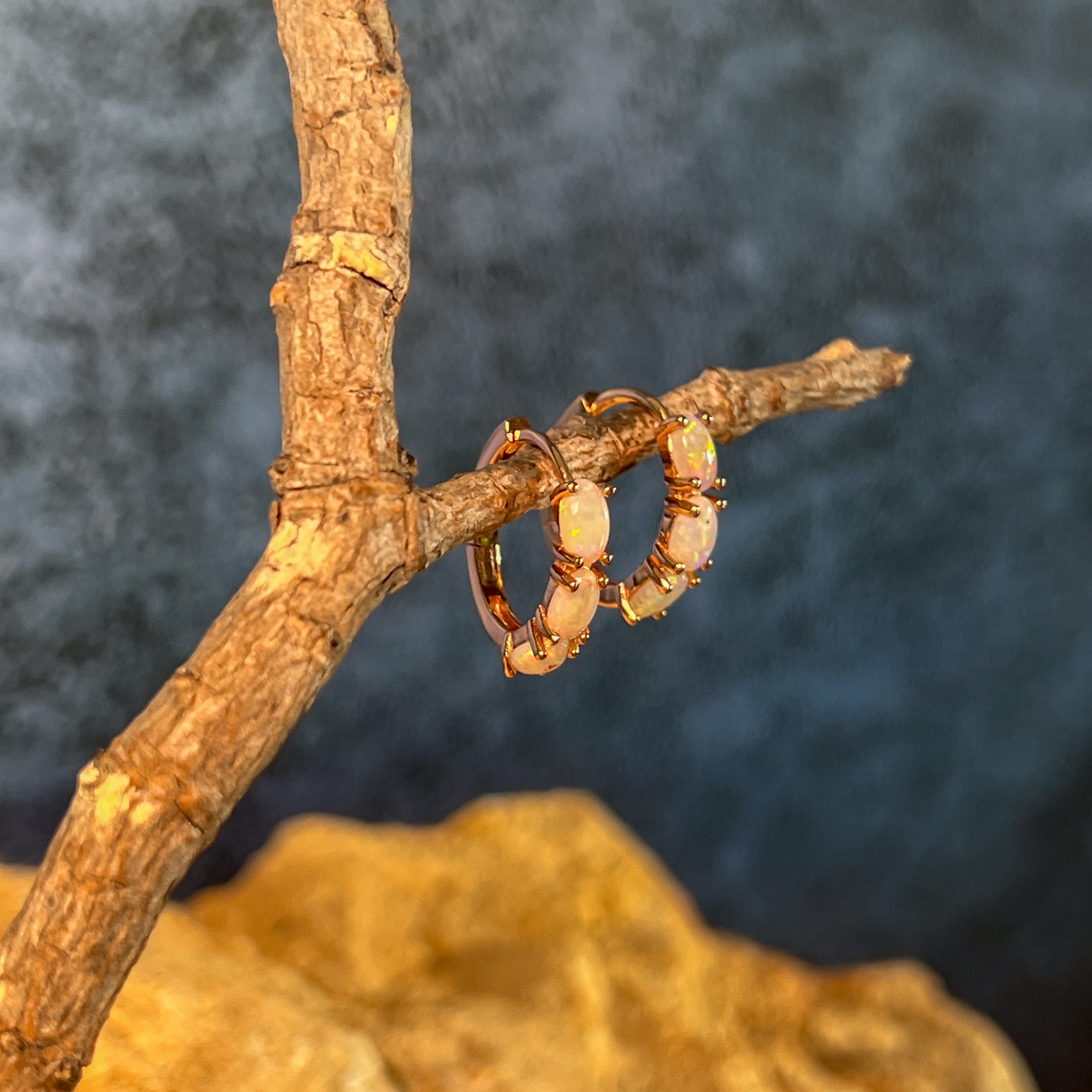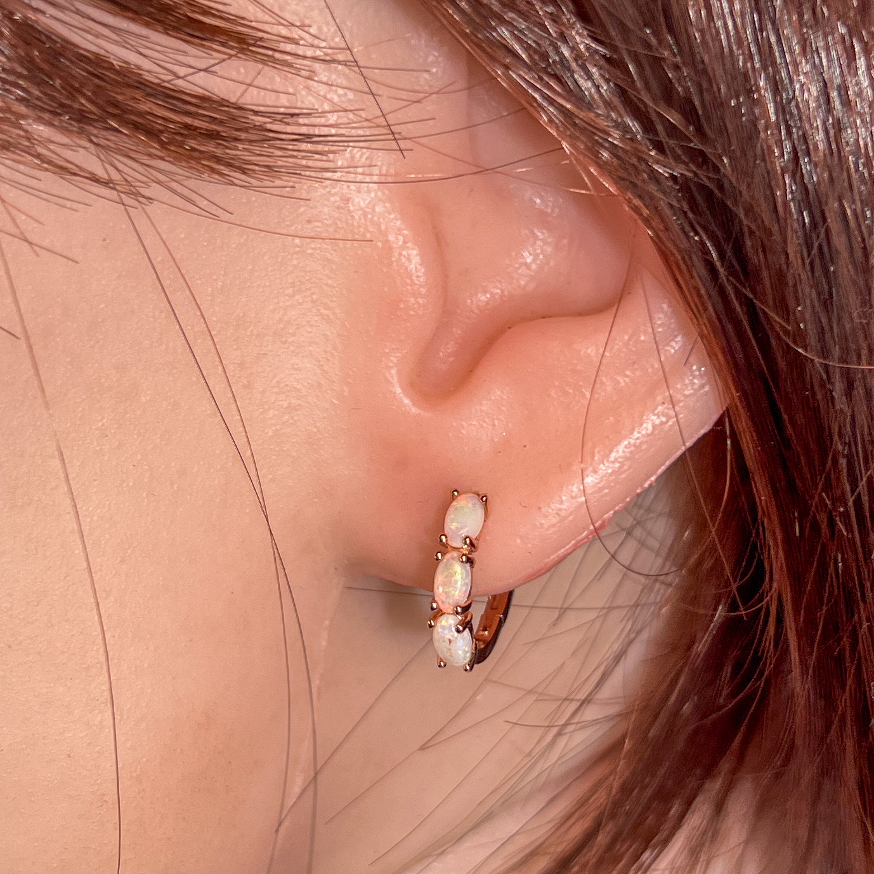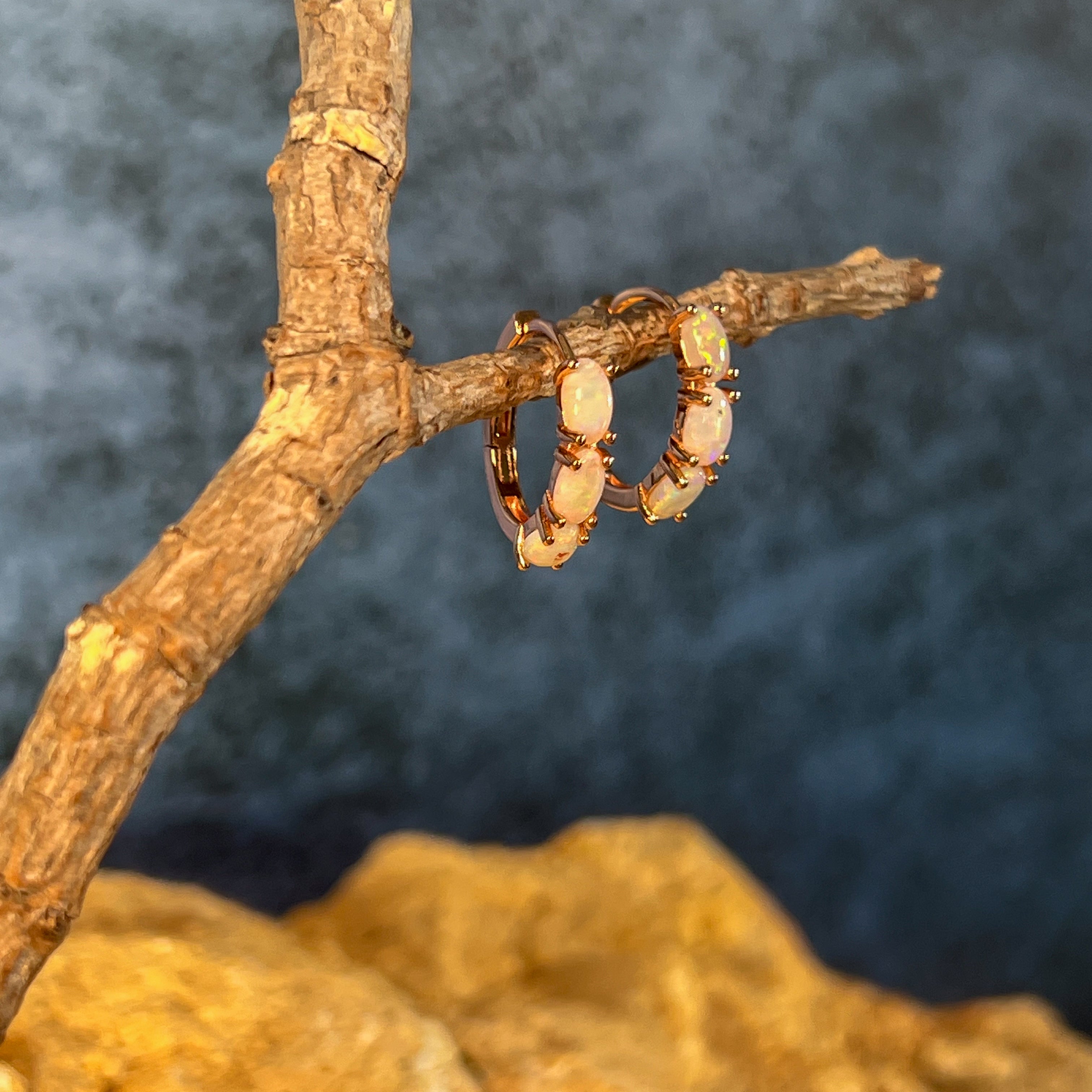 Rose Gold plated Silver huggie style 5x3mm Opal earrings