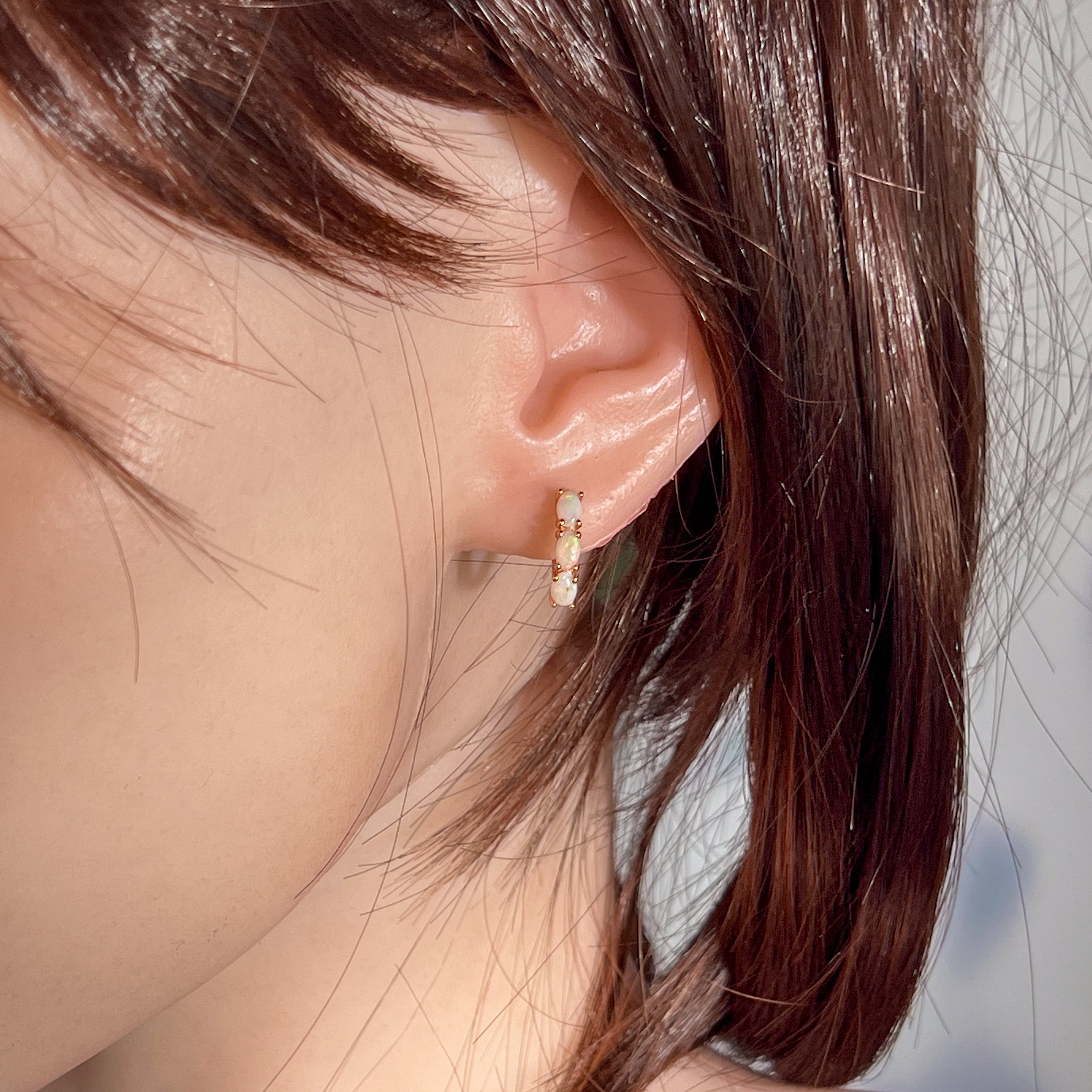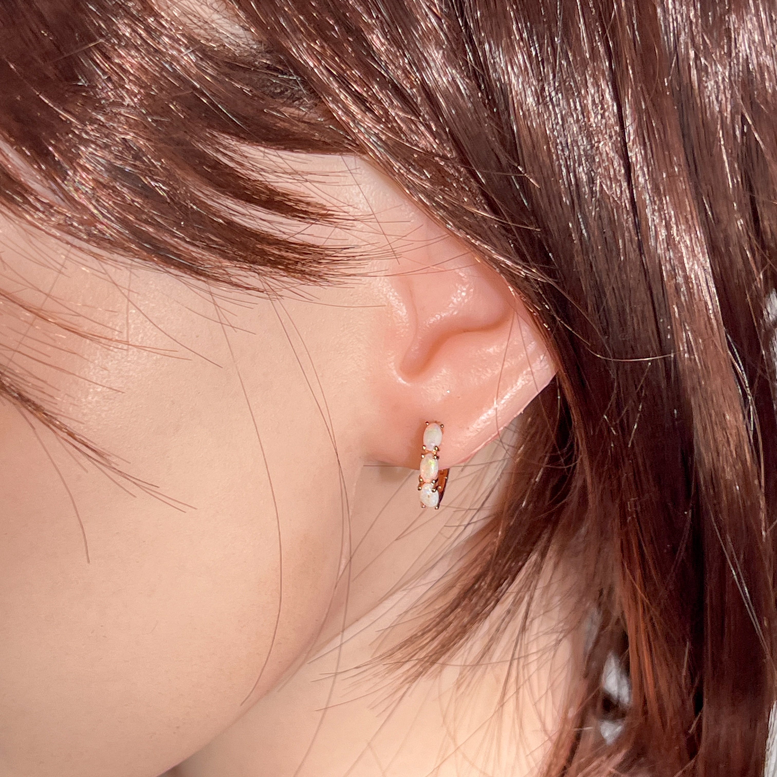 One pair of Rose Gold plated Sterling Silver pair of huggie Opal earrings