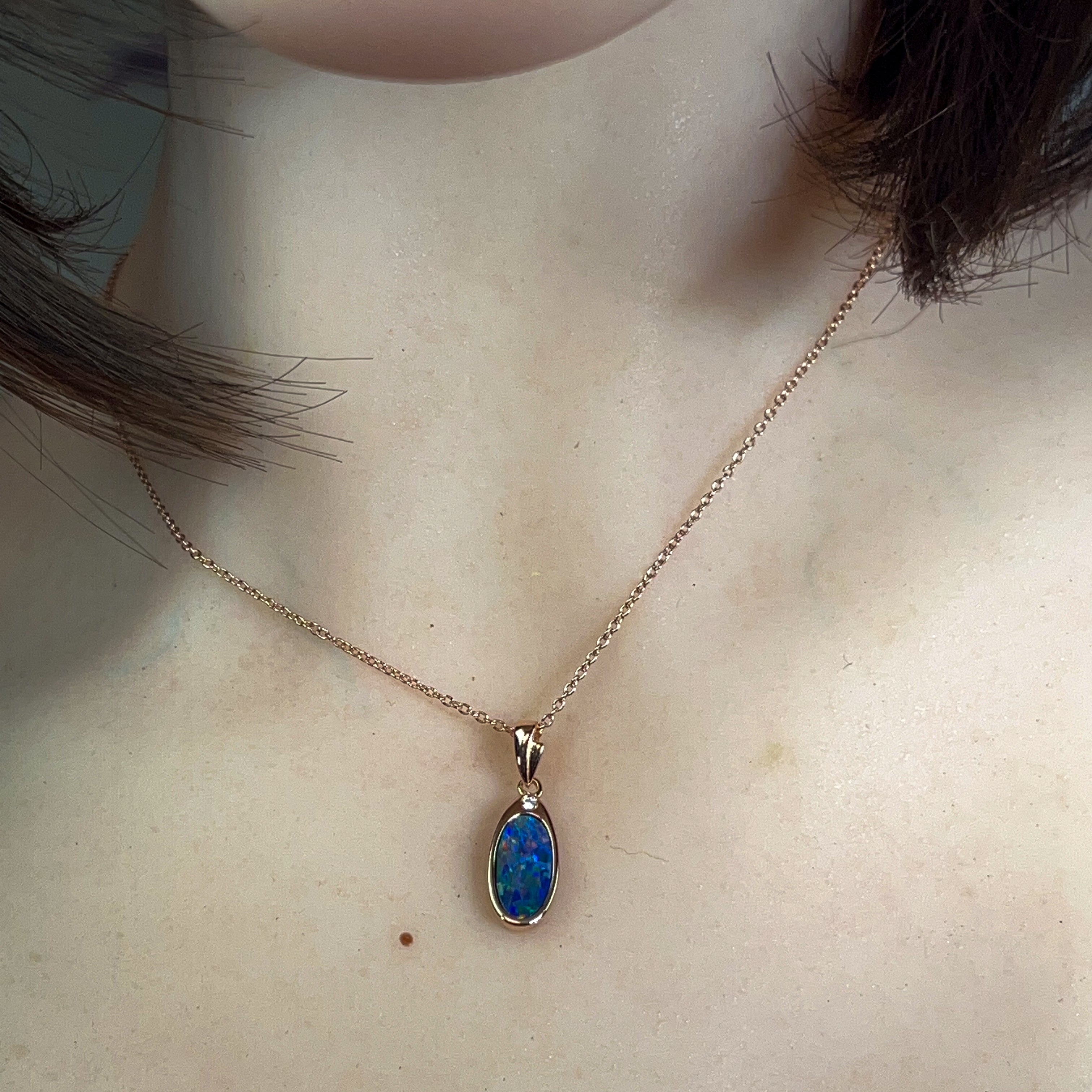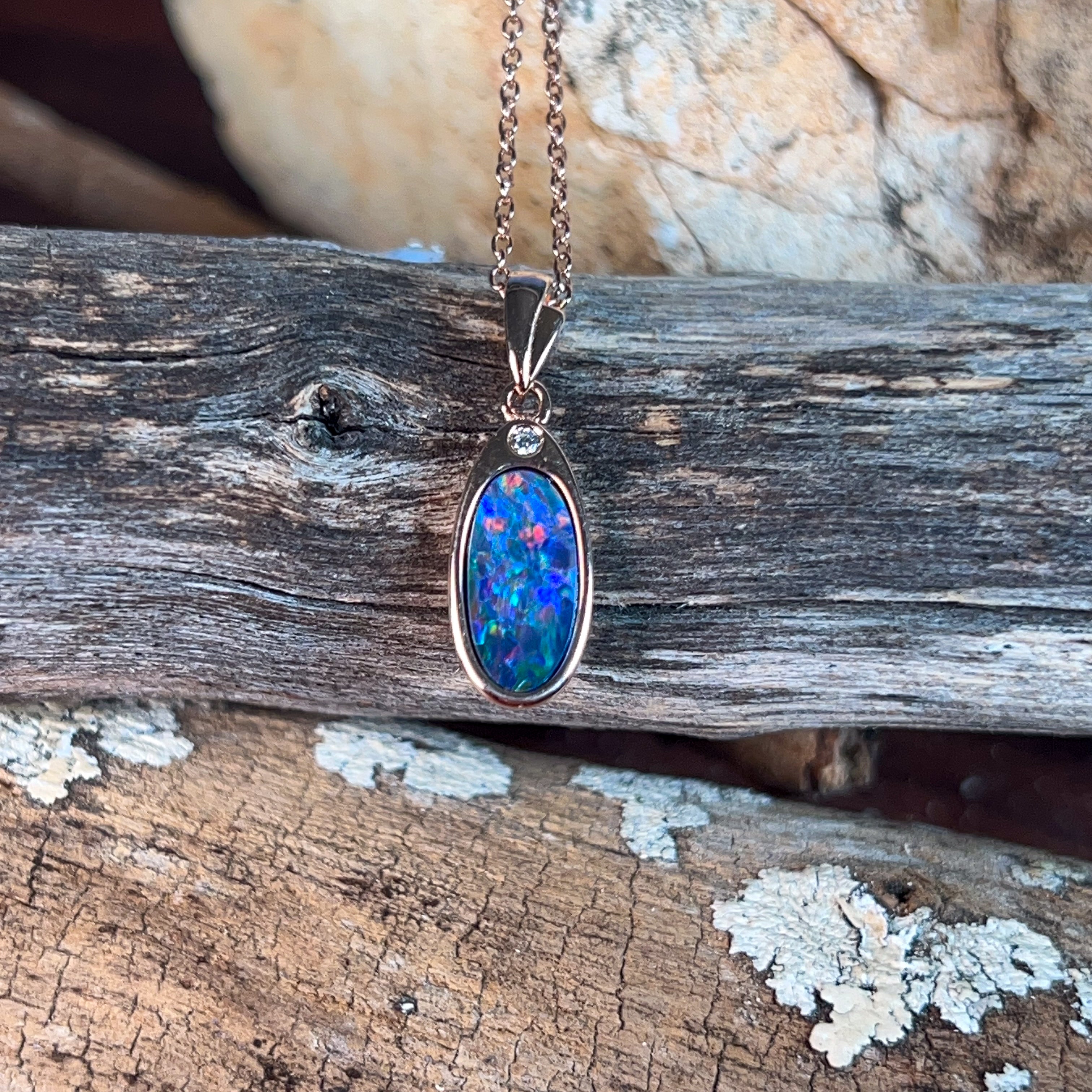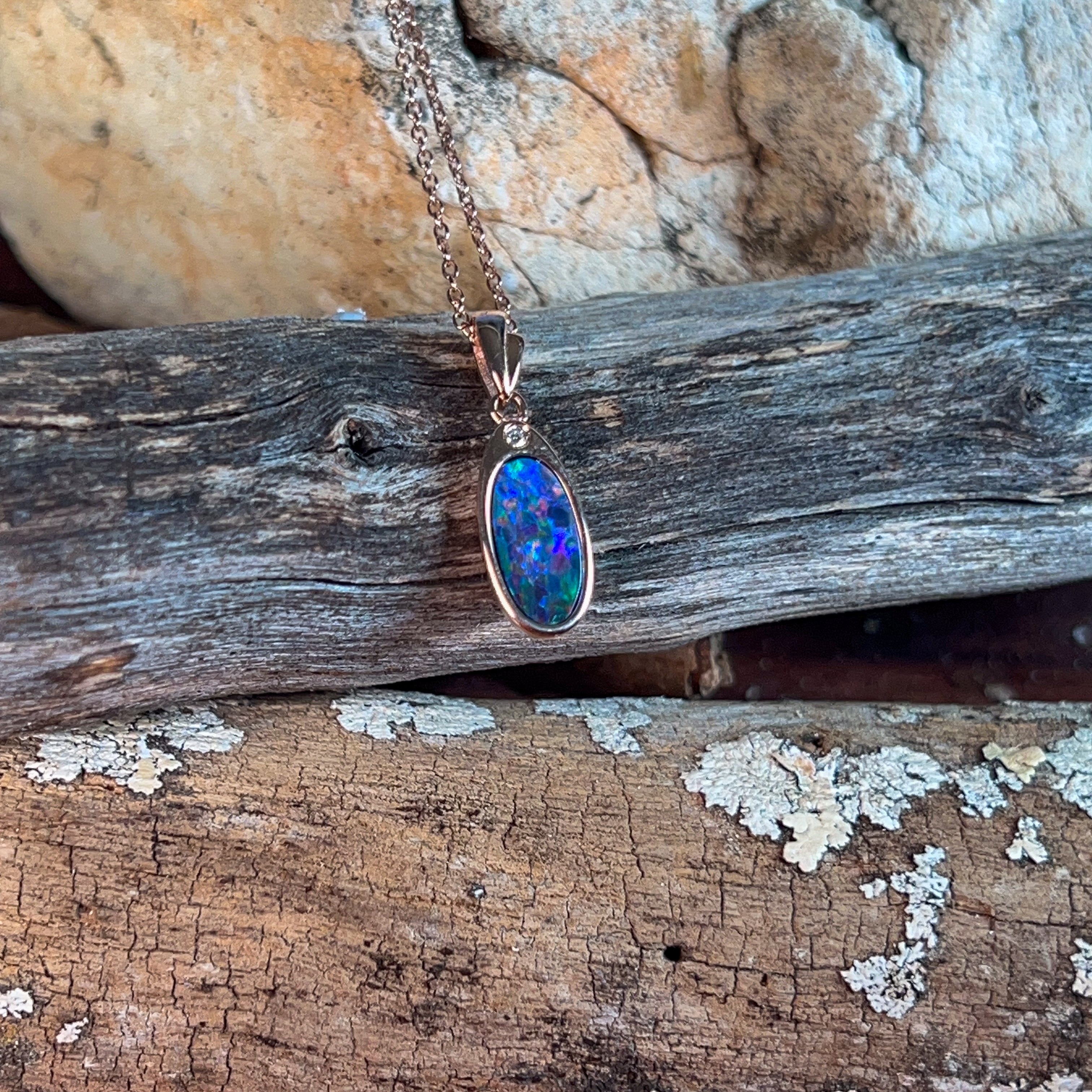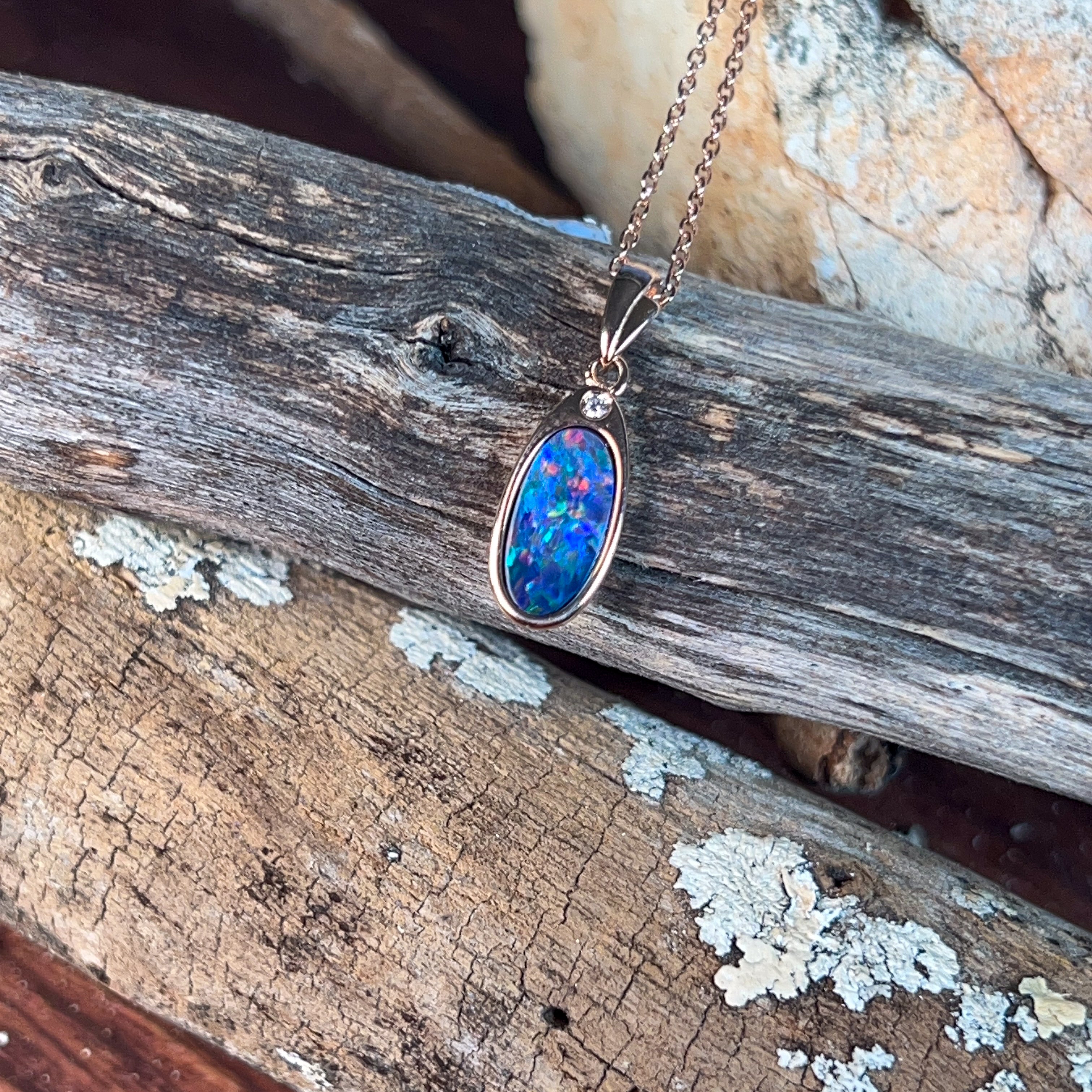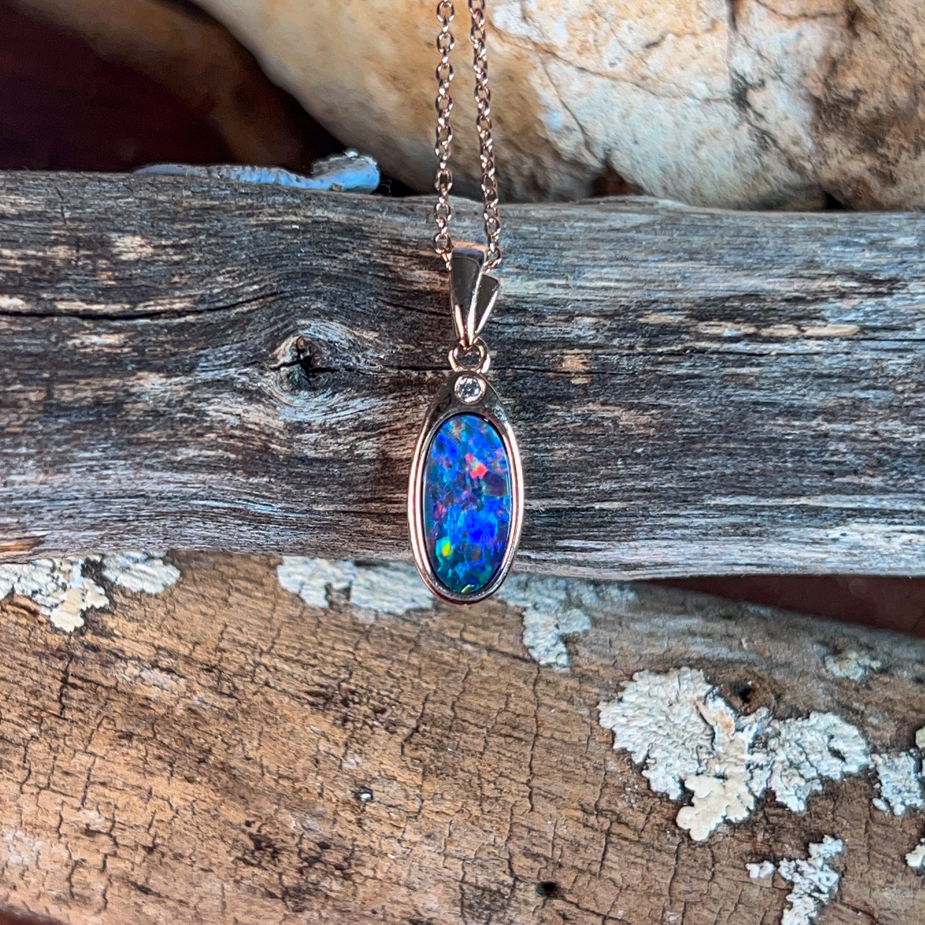 Elevate your jewellery collection with this stunning rose gold plated silver opal doublet pendant. Featuring a captivating 13x7mm opal doublet, this piece combines the mesmerising play-of-colour that opals are renowned for with the timeless elegance of rose gold plating. The doublet construction offers exceptional durability while maintaining that coveted opal brilliance. Perfect for everyday wear or special occasions, this pendant makes a sophisticated statement that effortlessly complements any style. Versatile, eye-catching, and crafted with quality materials, it's the jewellery piece you'll reach for again and again.