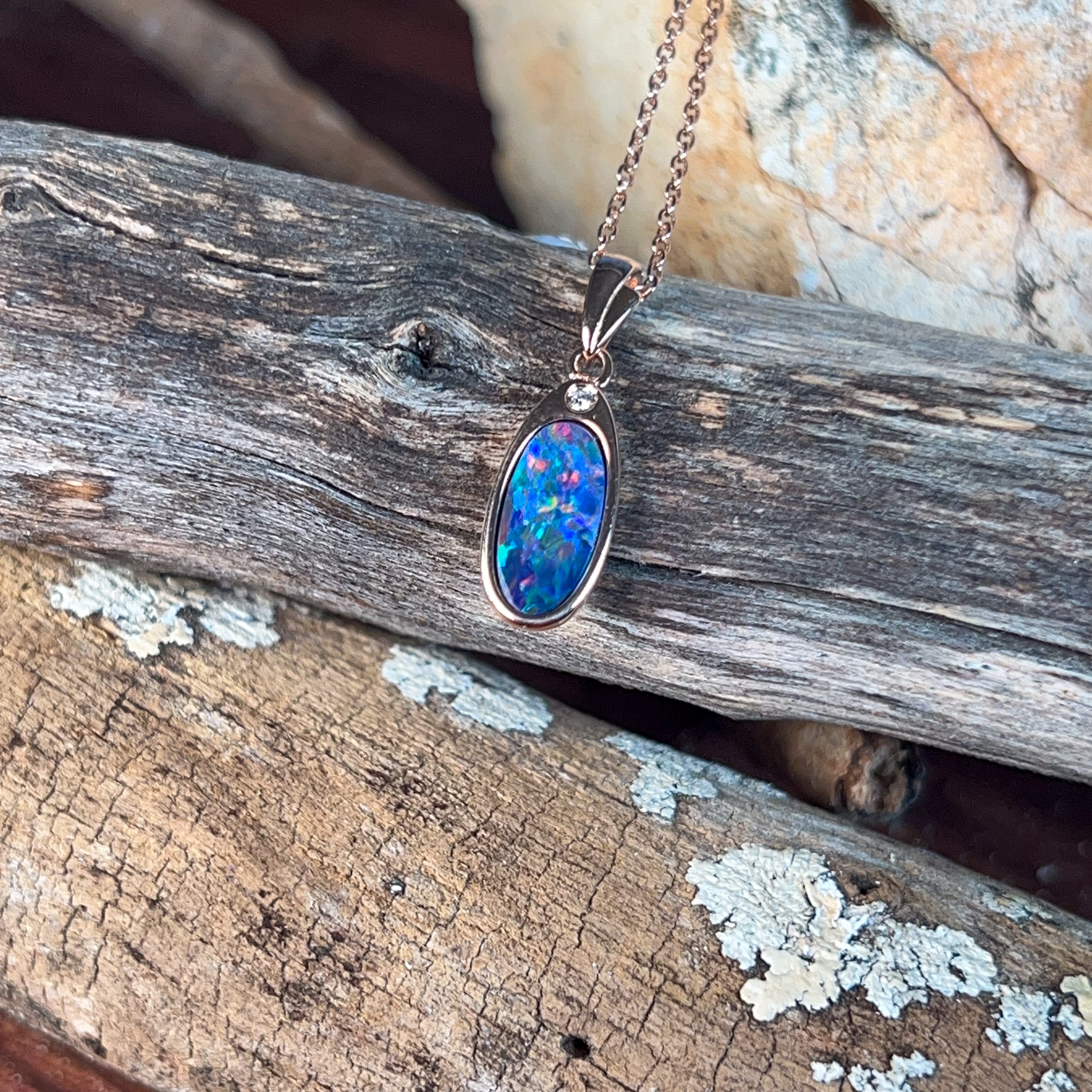 Rose Gold plated Silver Opal doublet 13x7mm pendant