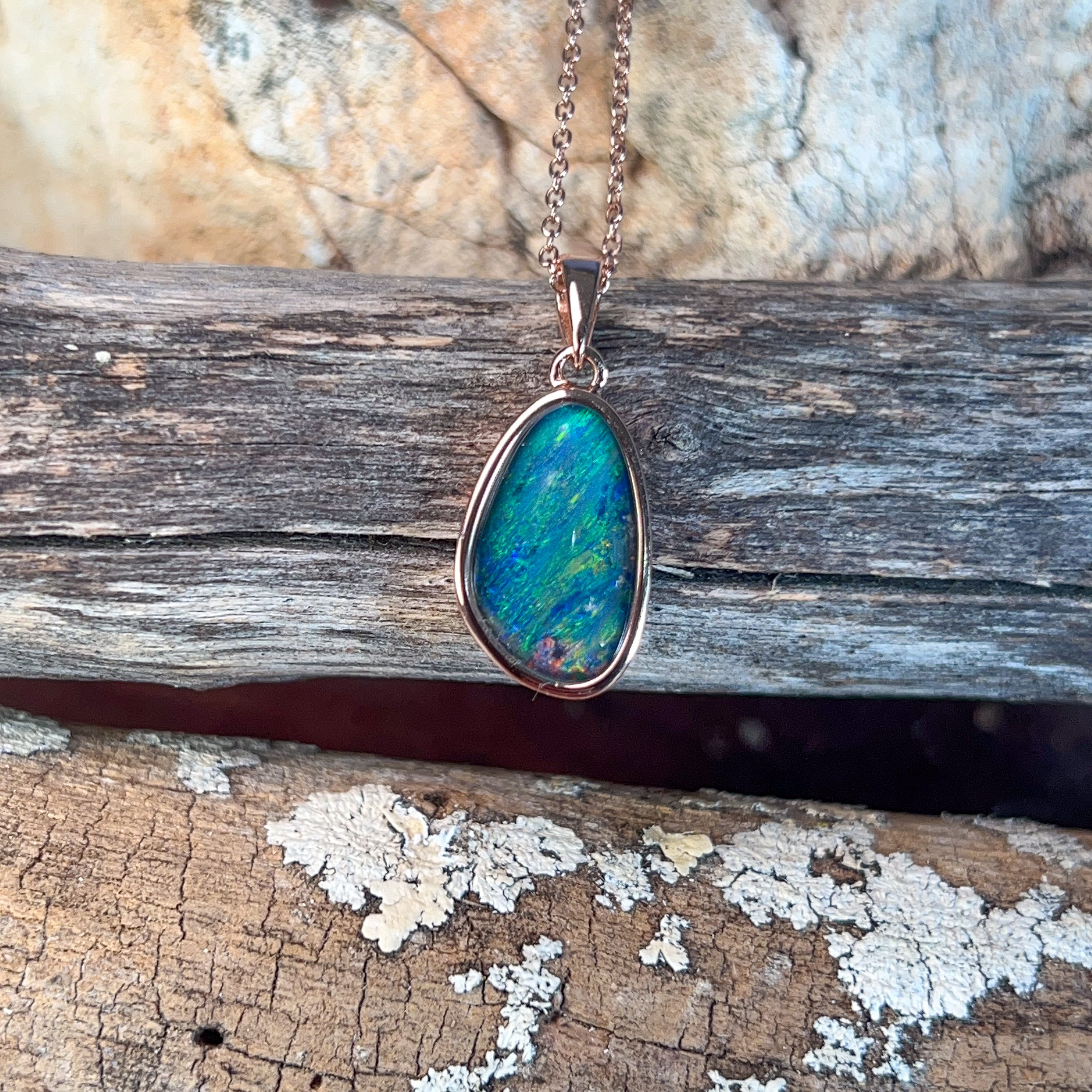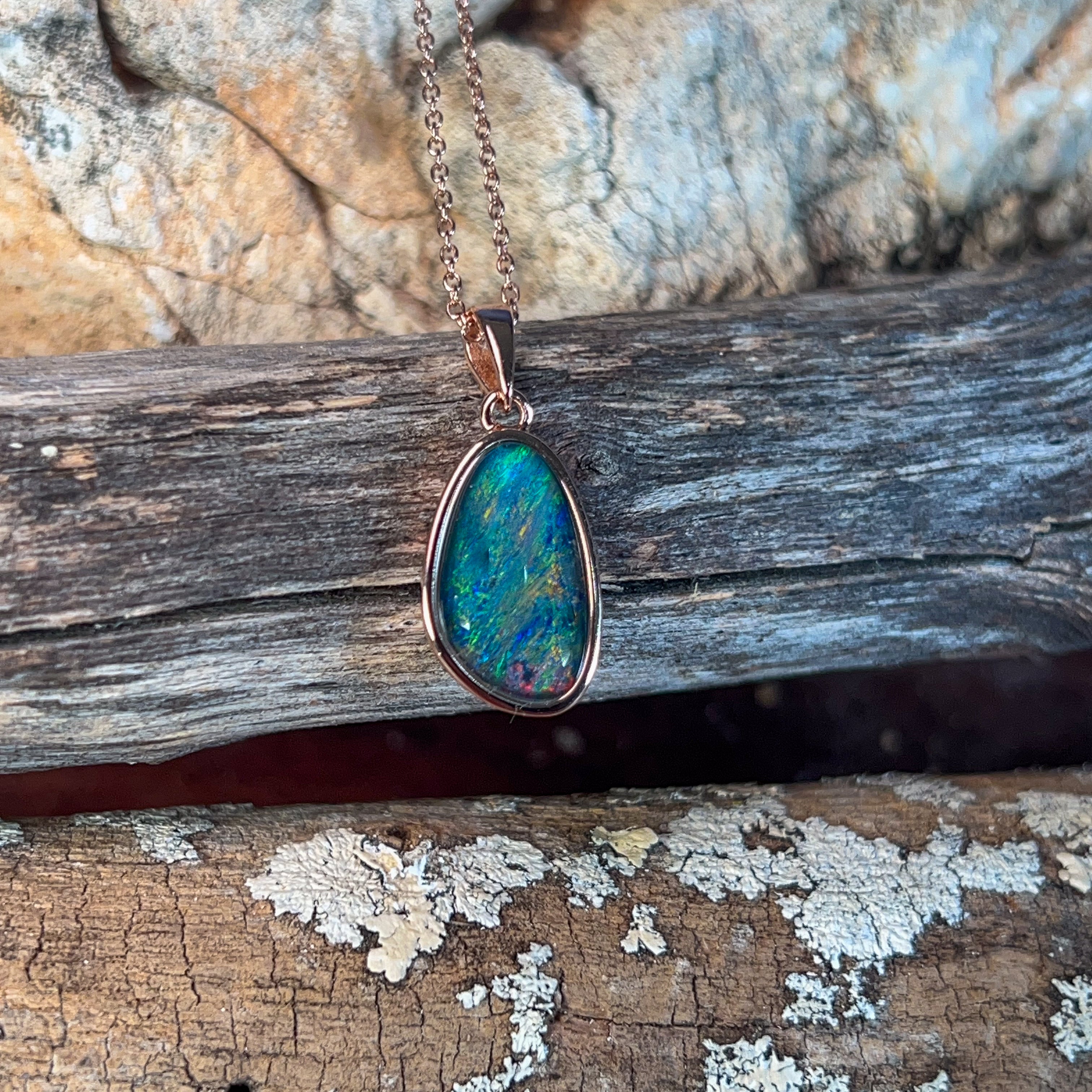 Rose Gold plated silver Opal triplet pendant