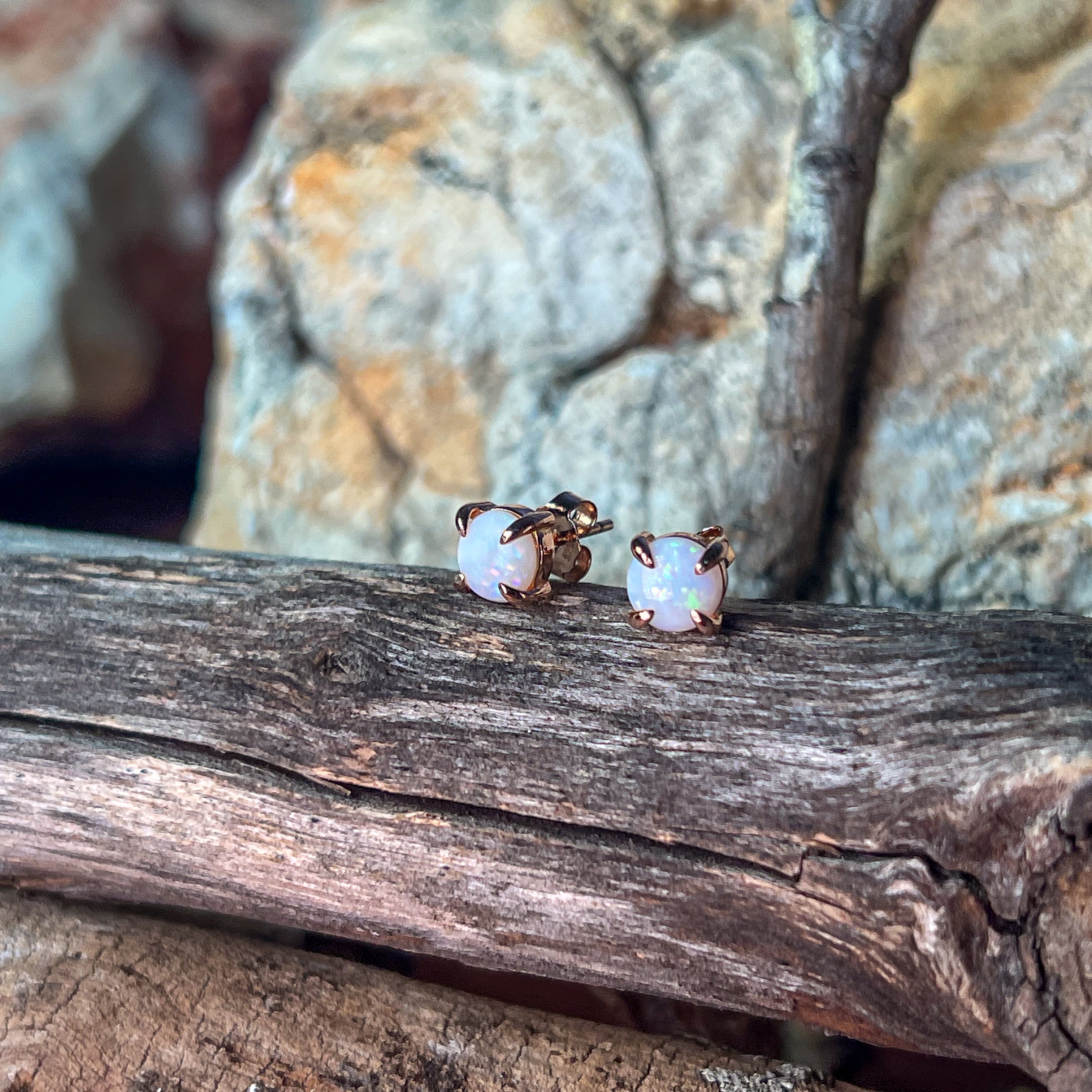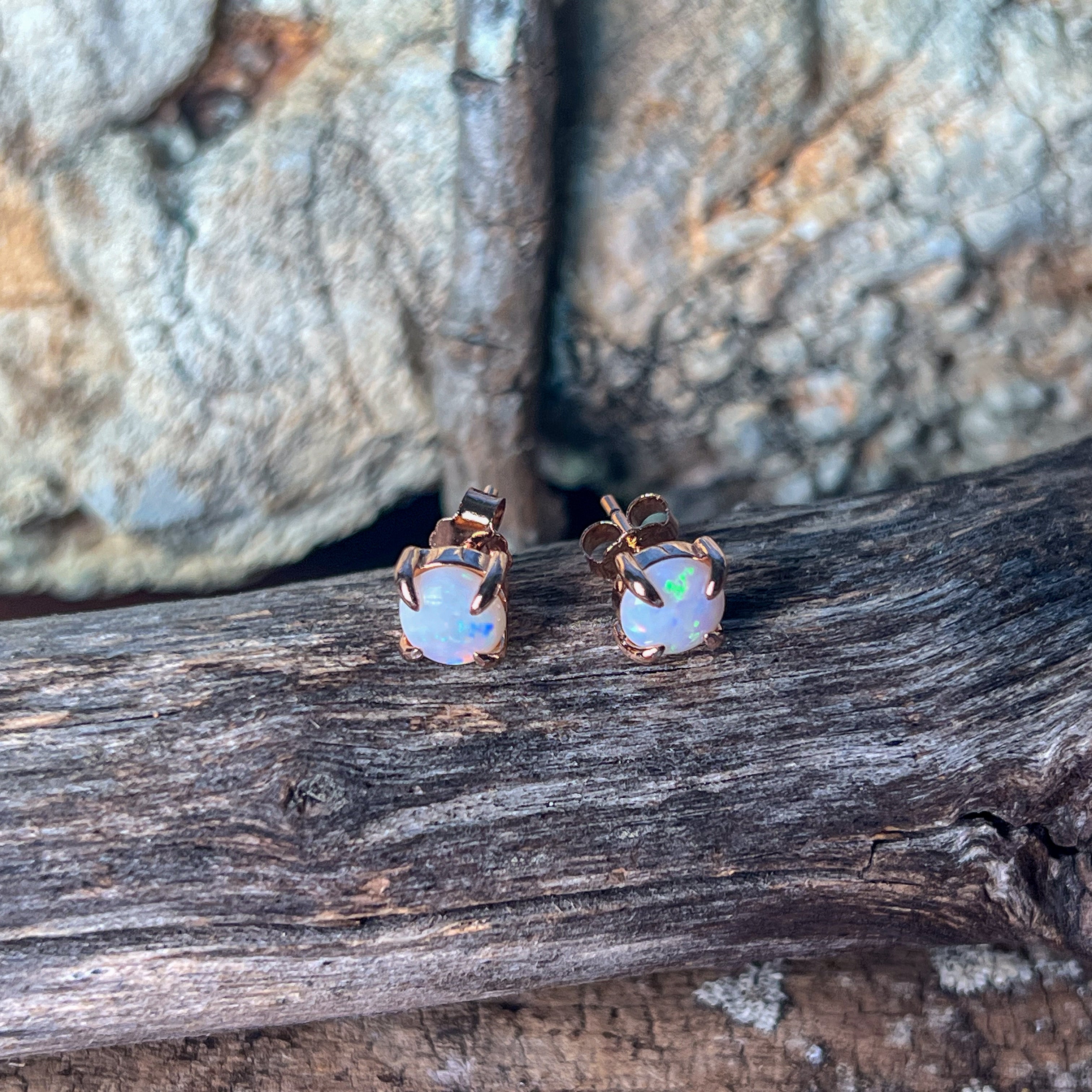 Elevate your everyday style with these Rose Gold plated Sterling Silver Round 6mm White Opal claw studs. Their delicate opal centers shimmer with iridescent hues, beautifully framed by a secure claw setting. Perfect for adding a subtle yet striking touch of elegance, these classic studs complement any outfit, day or night, making them an essential piece in your jewellery collection.
