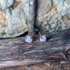 Rose Gold plated Sterling Silver Round 6mm White Opal claw studs