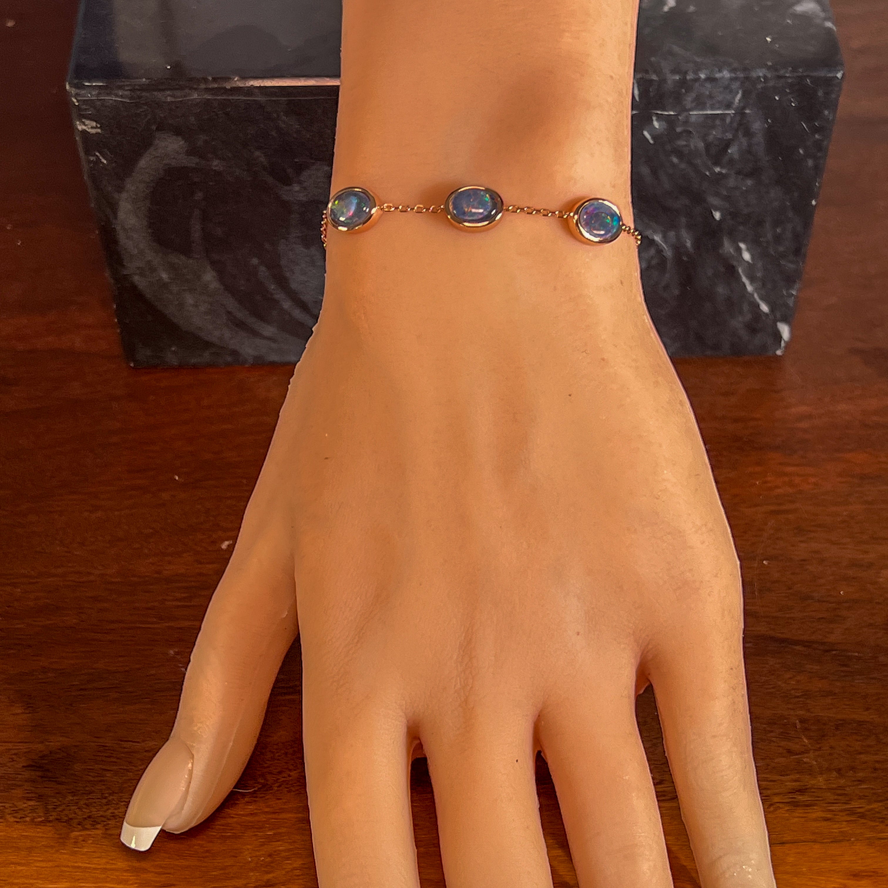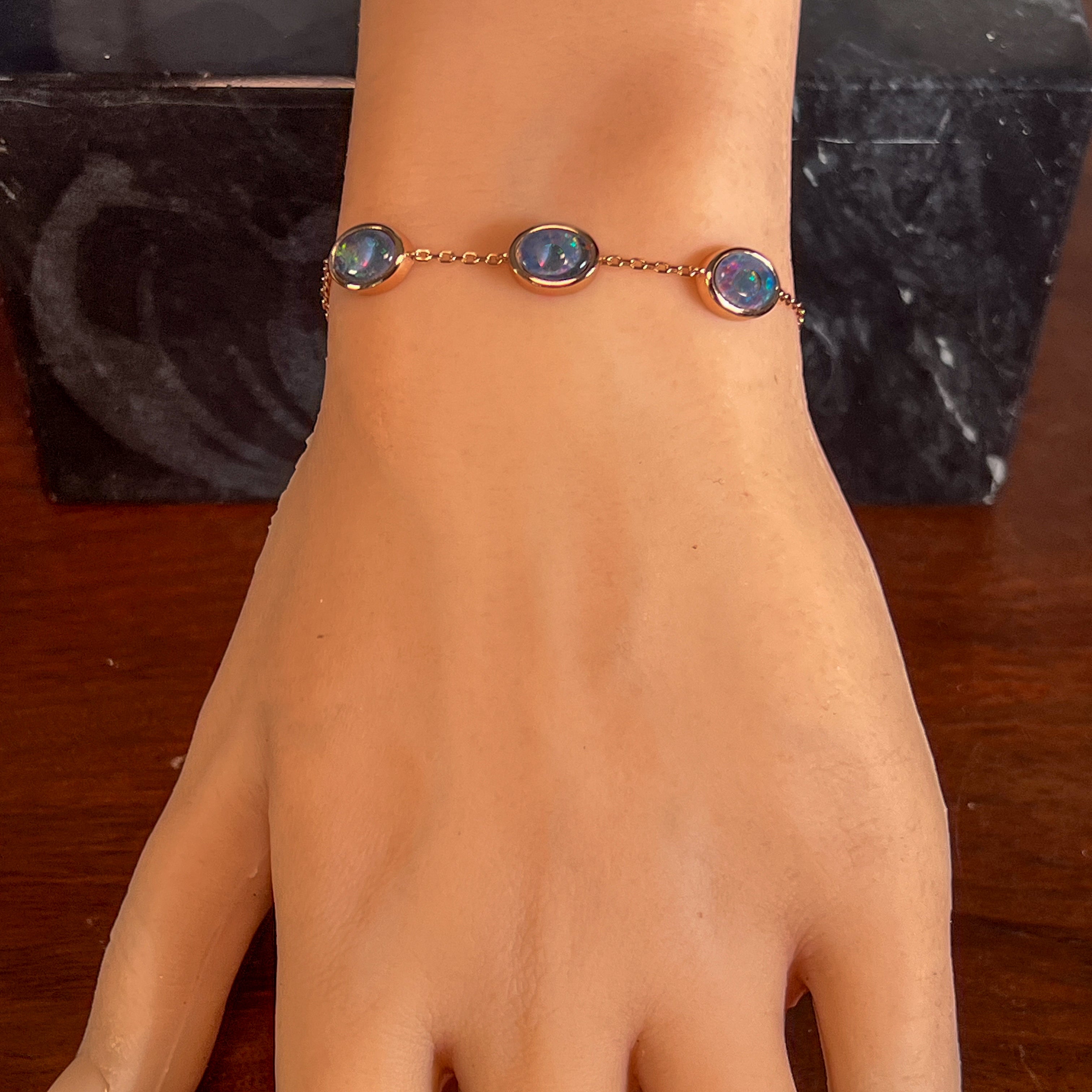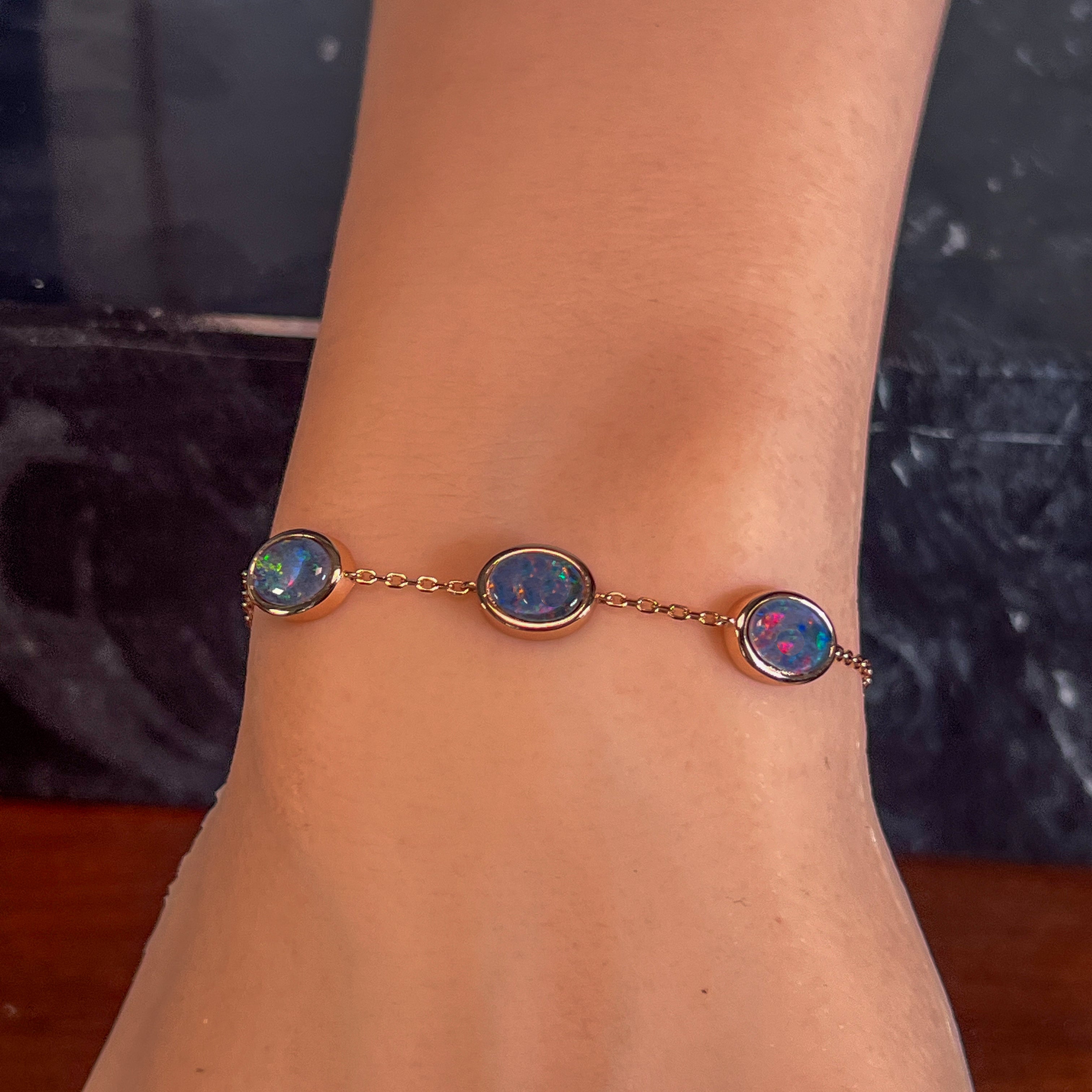 Rose Gold Silver 8x6mm Opal triplet 3 stone bracelet