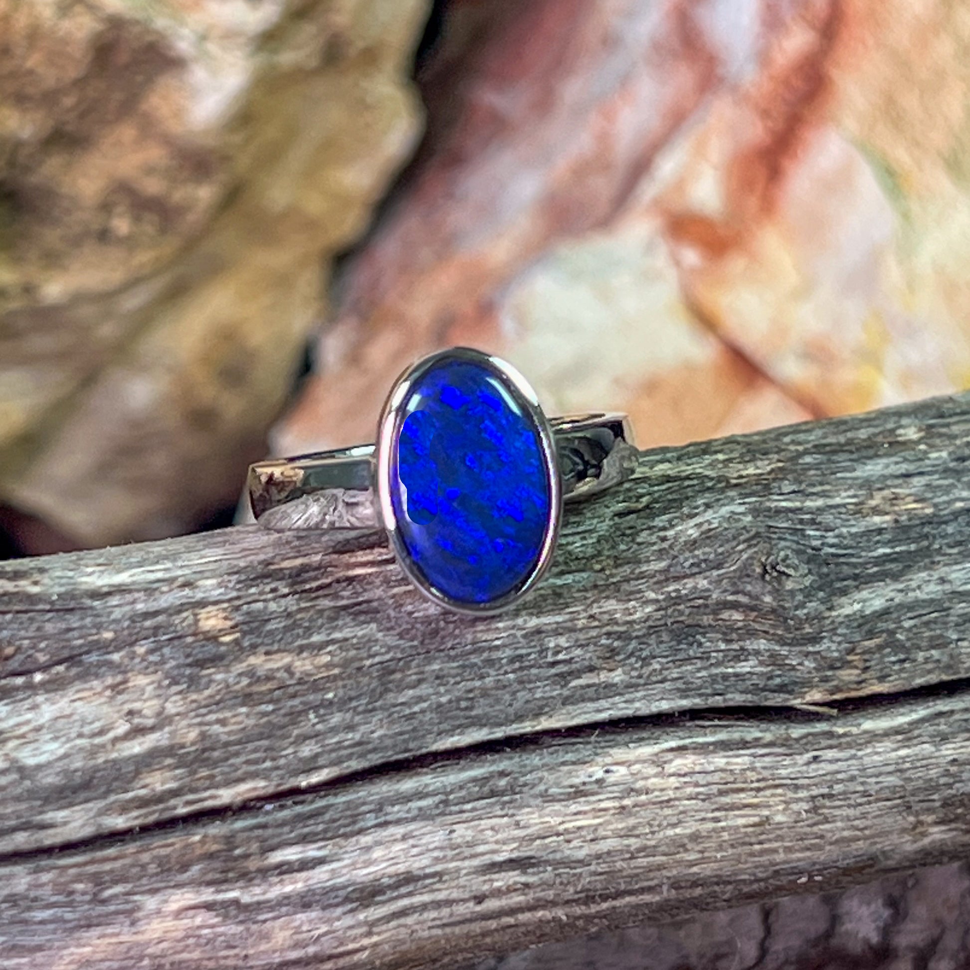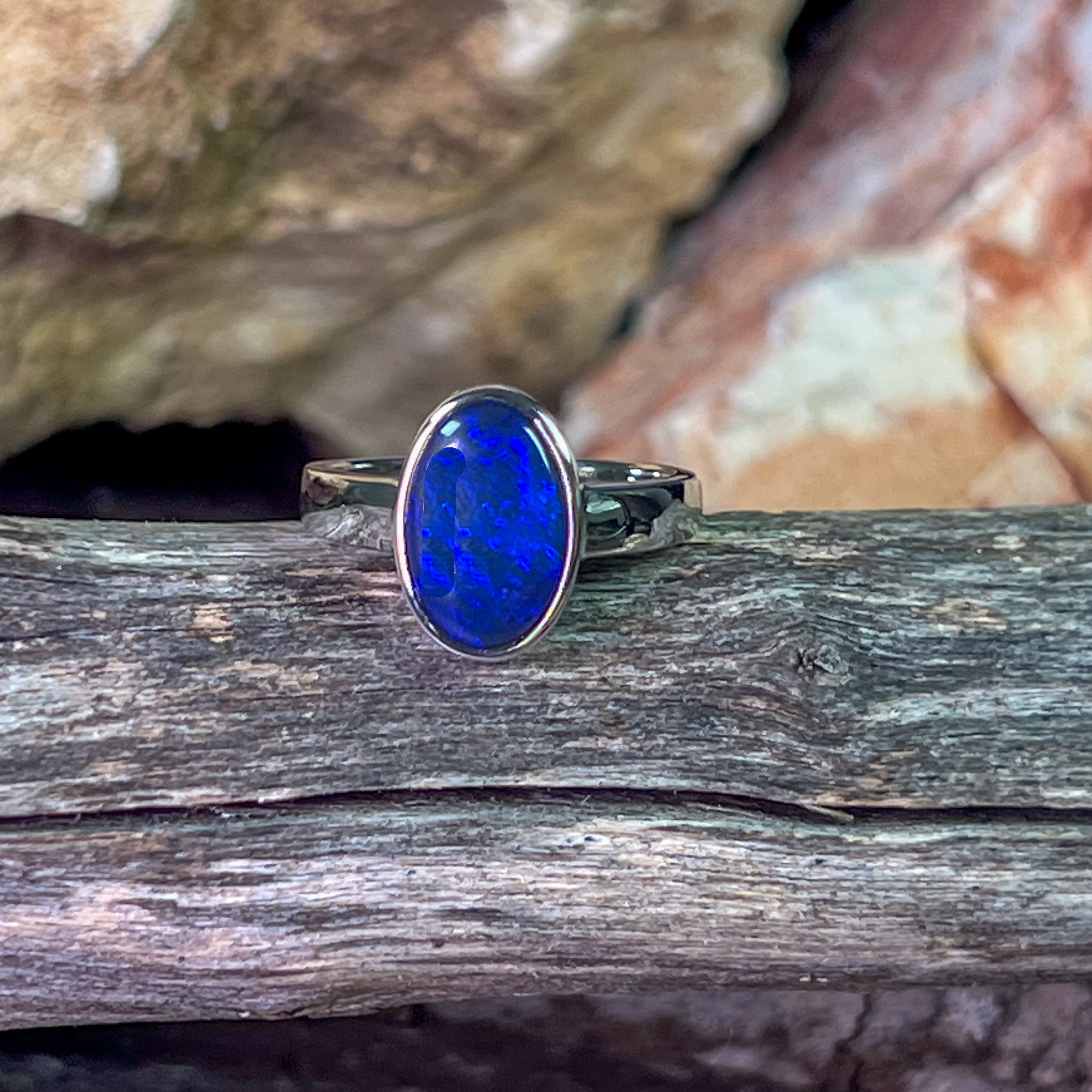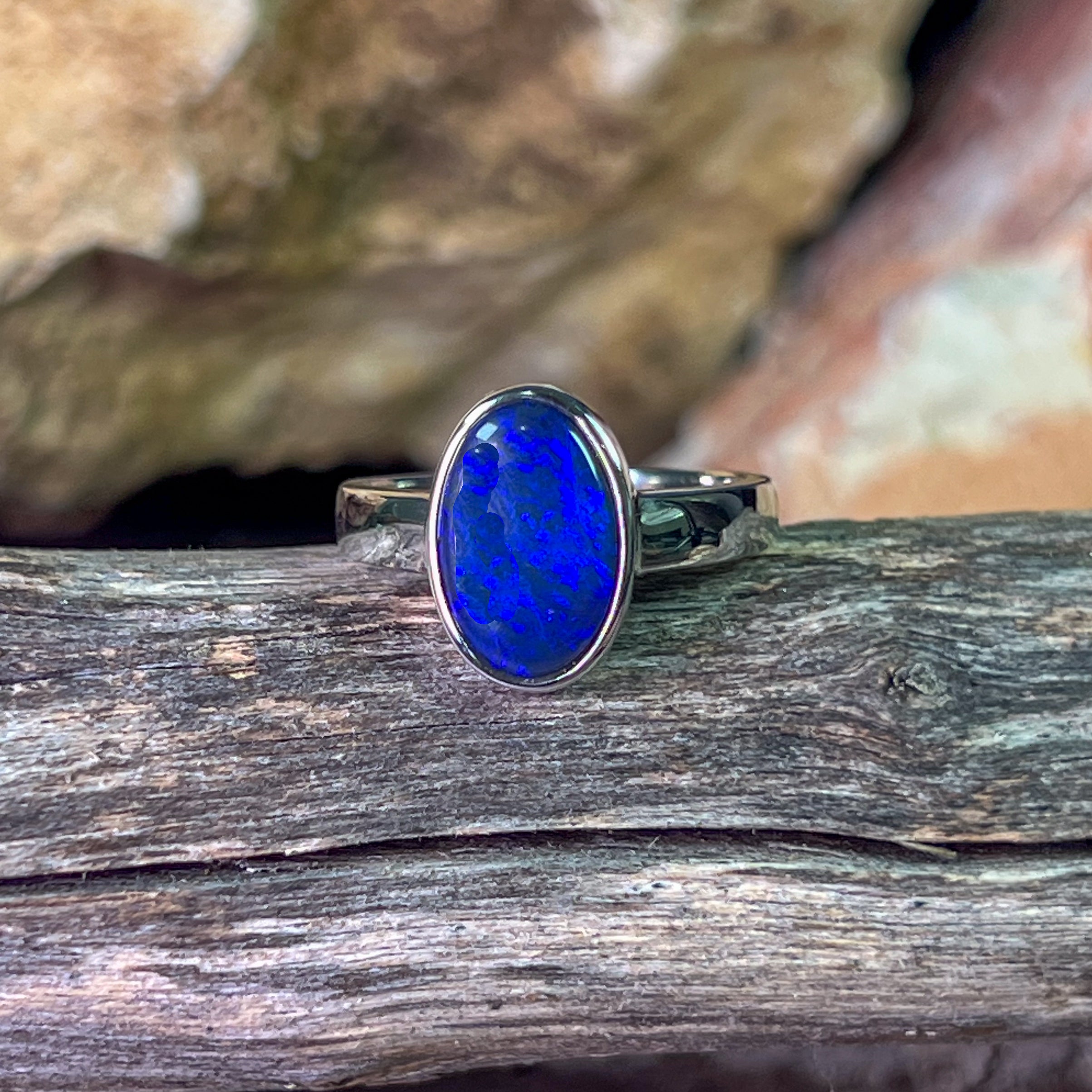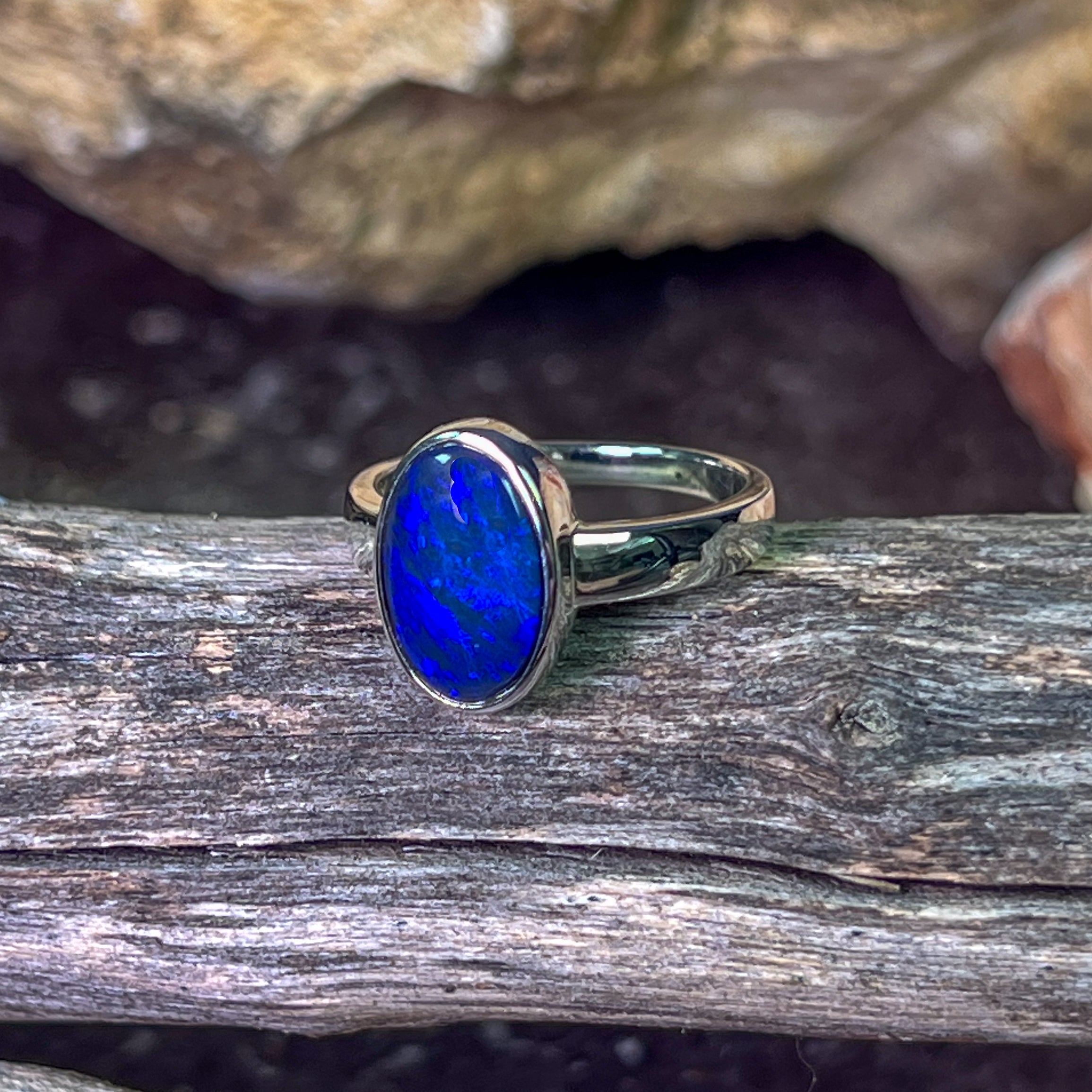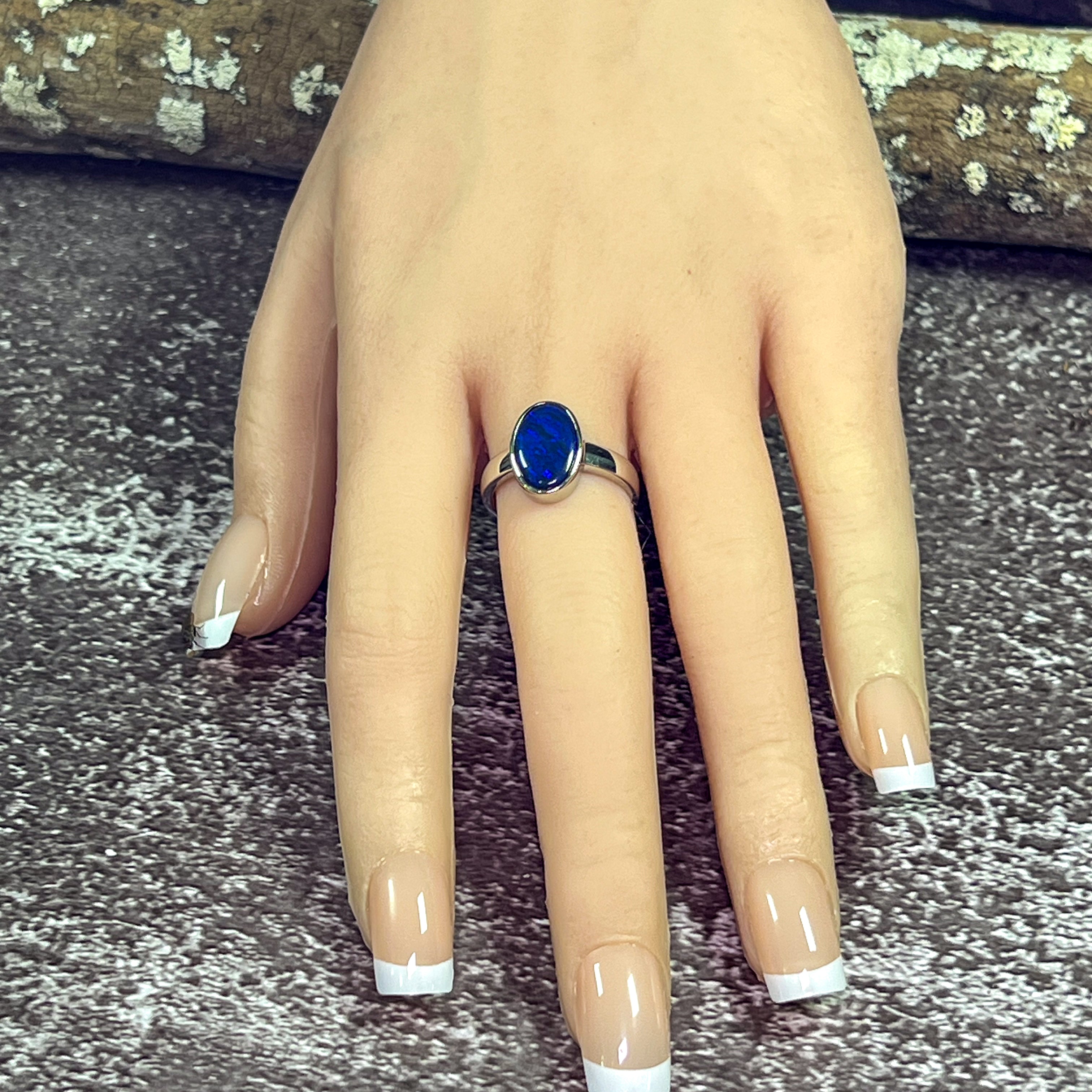Sterling Silver Blue Black Opal 2.16ct bezel set ring