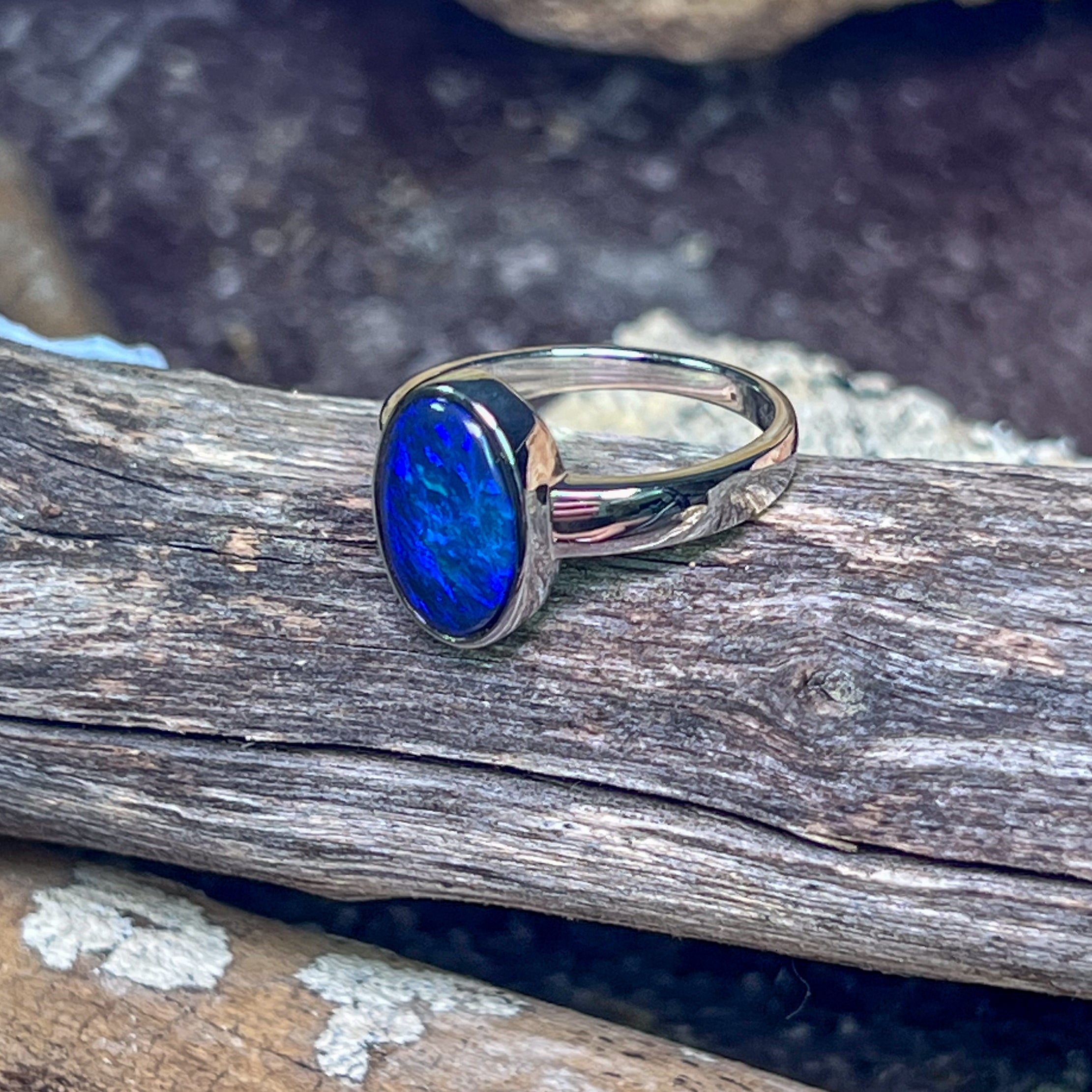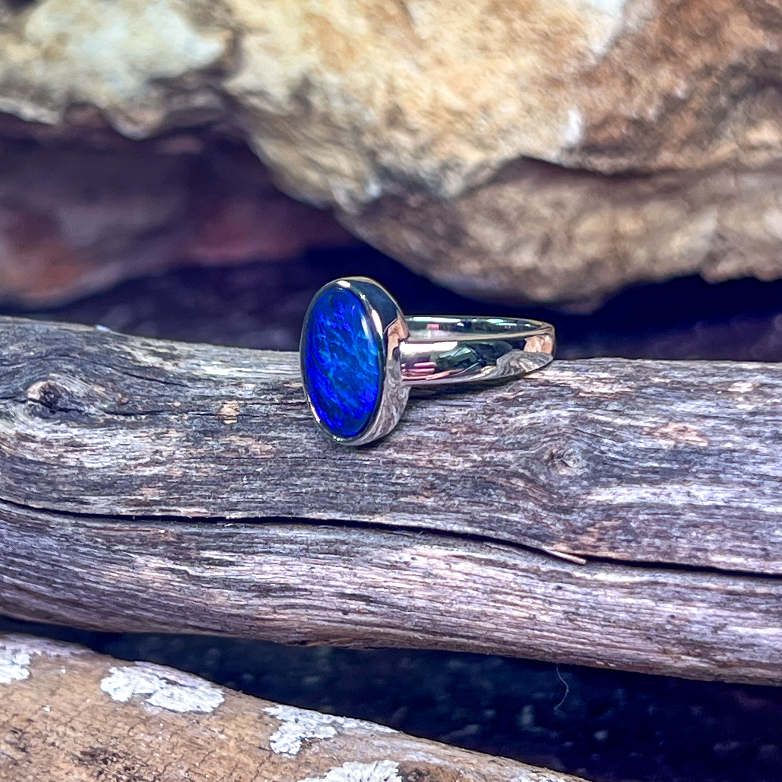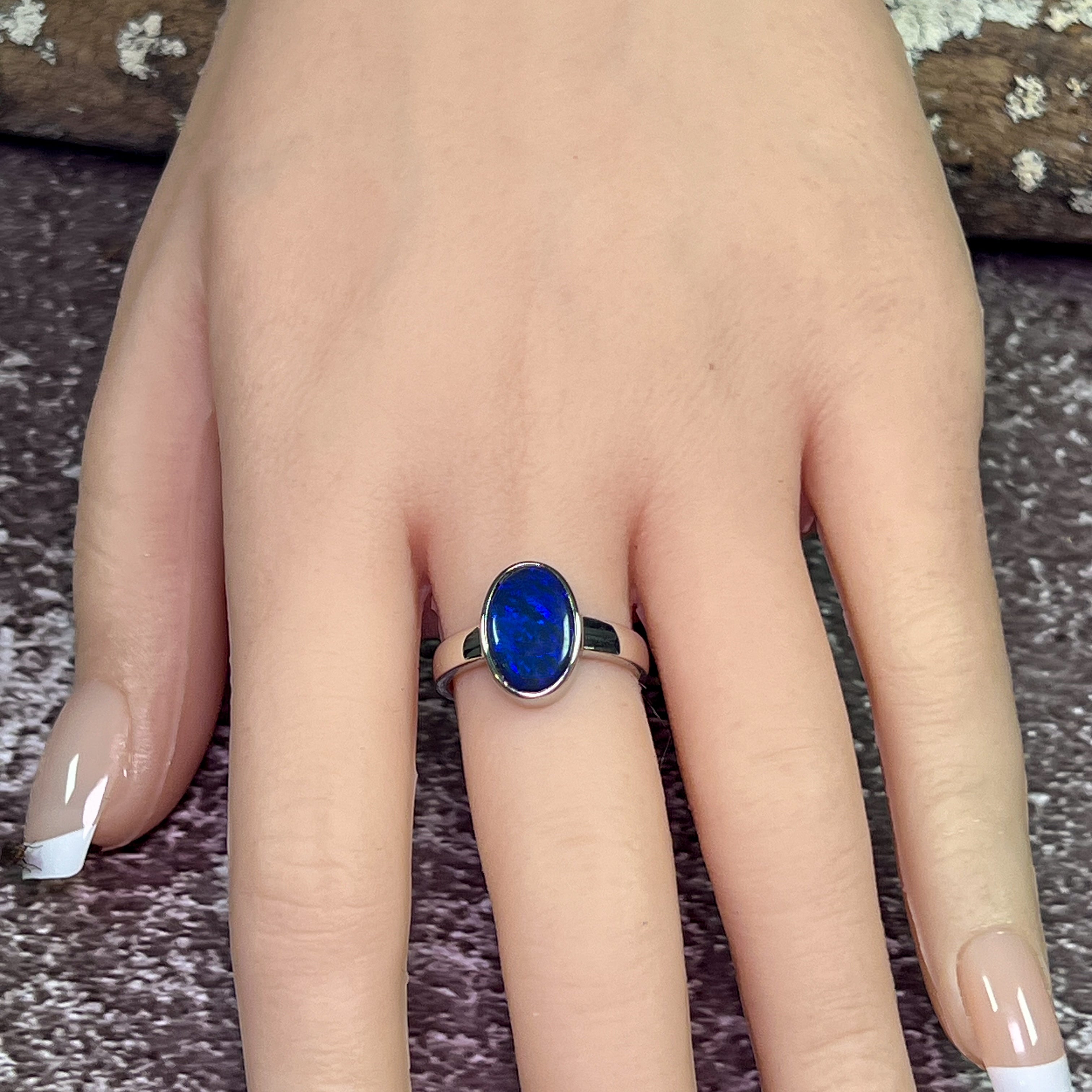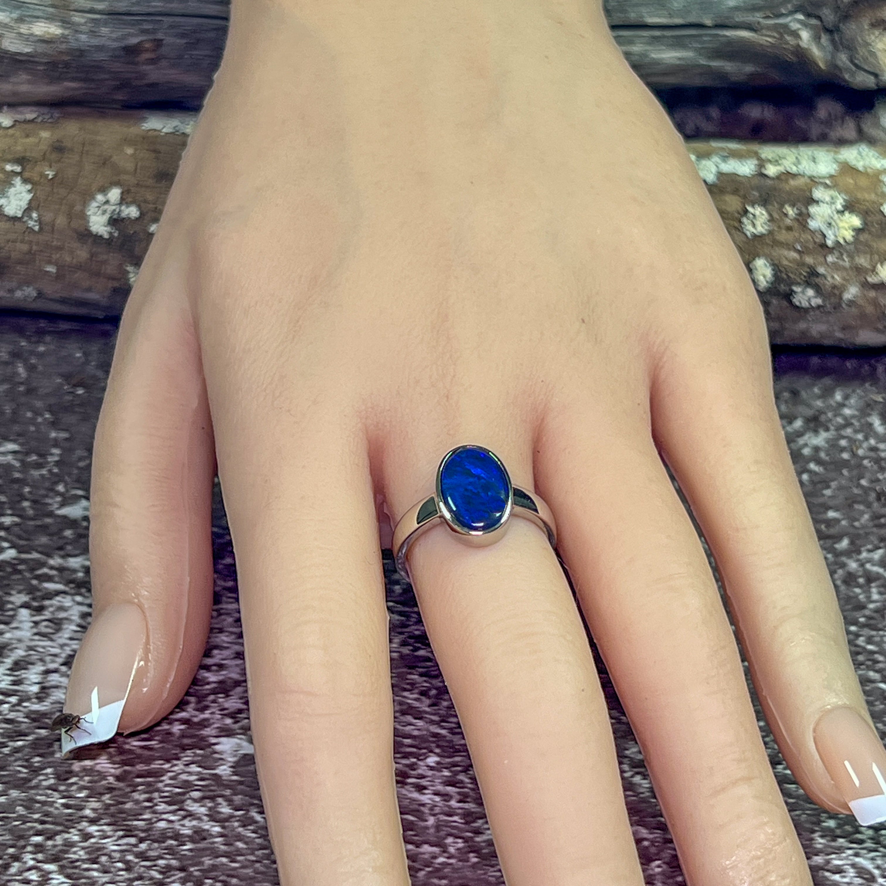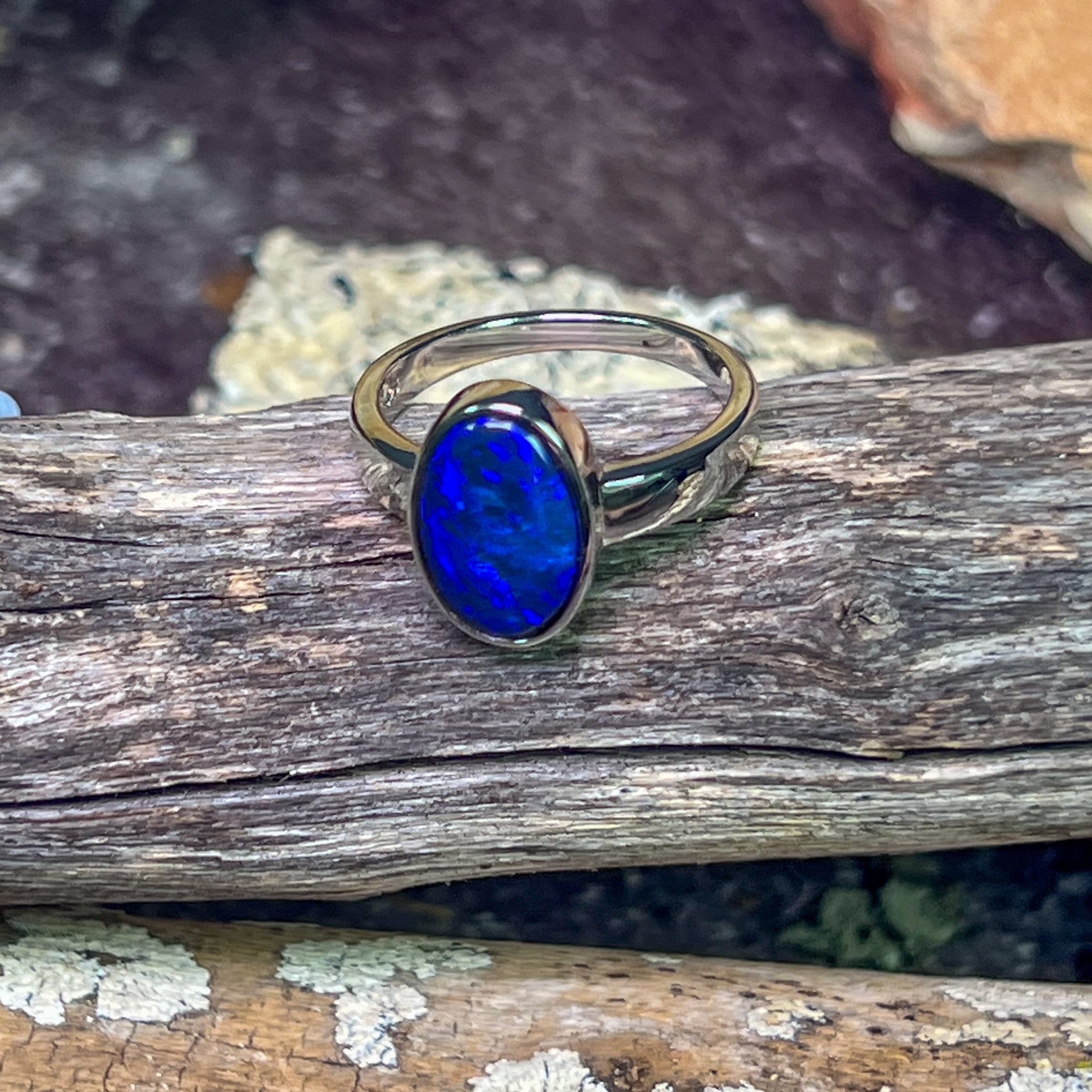 Sterling Silver Blue Black Opal 2.16ct bezel set ring