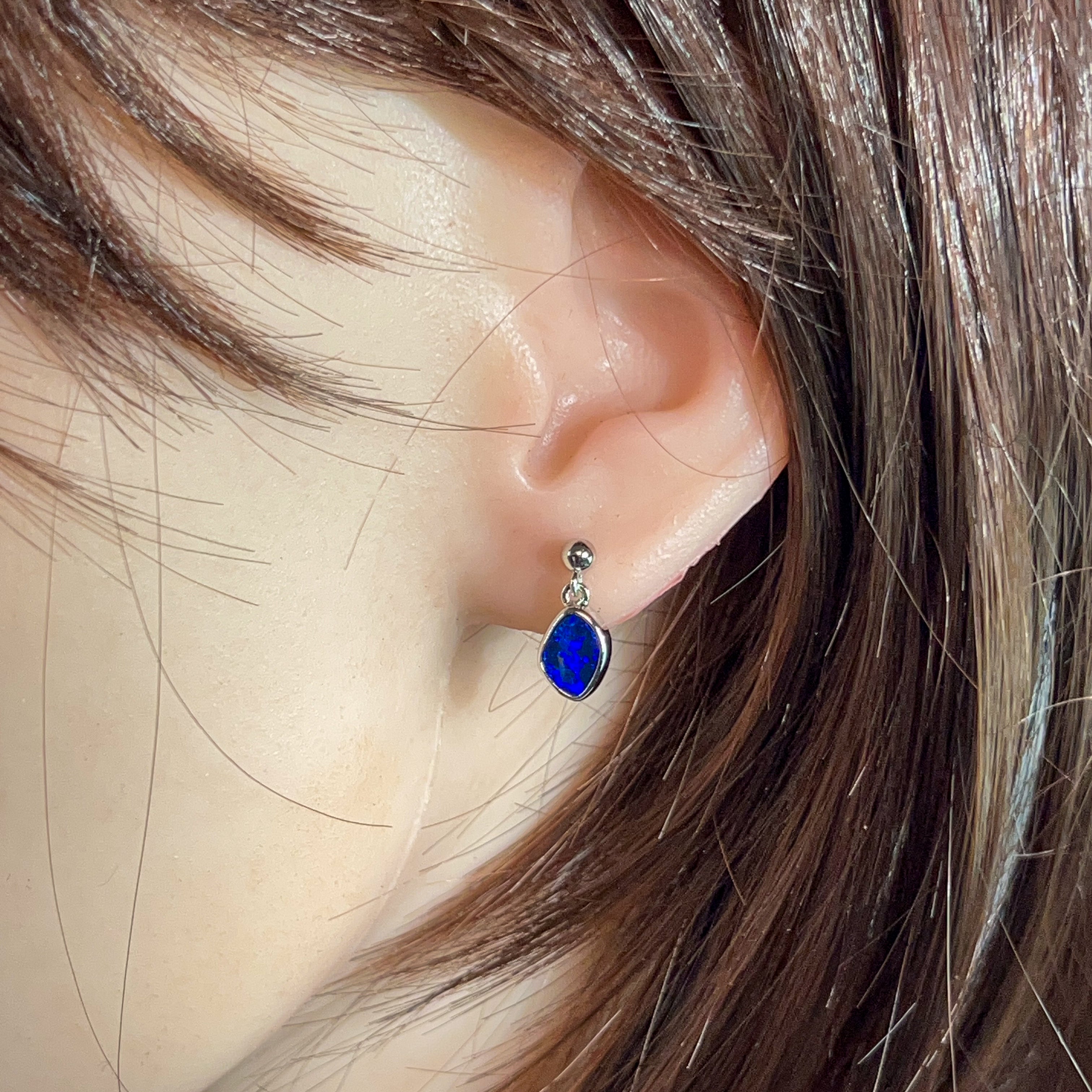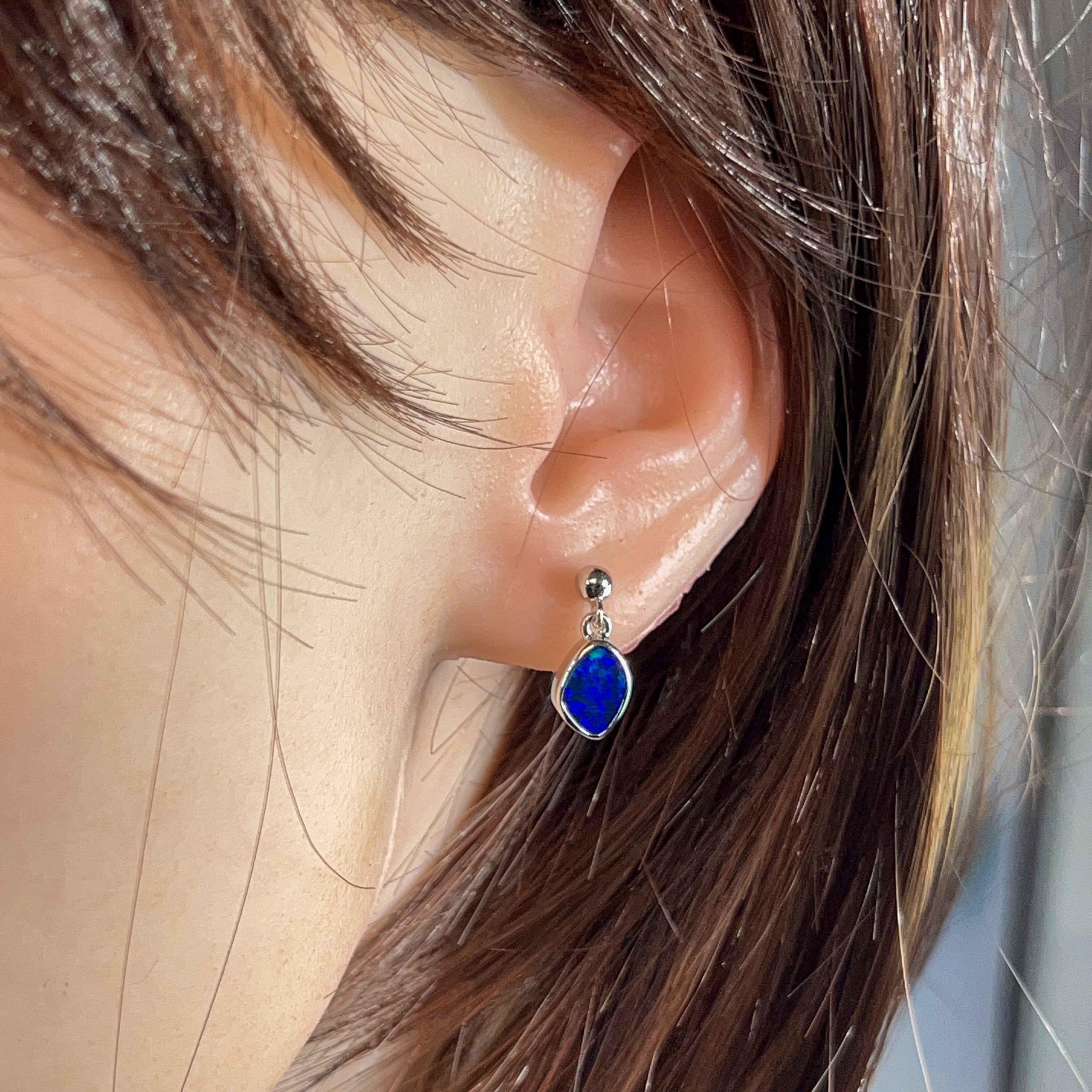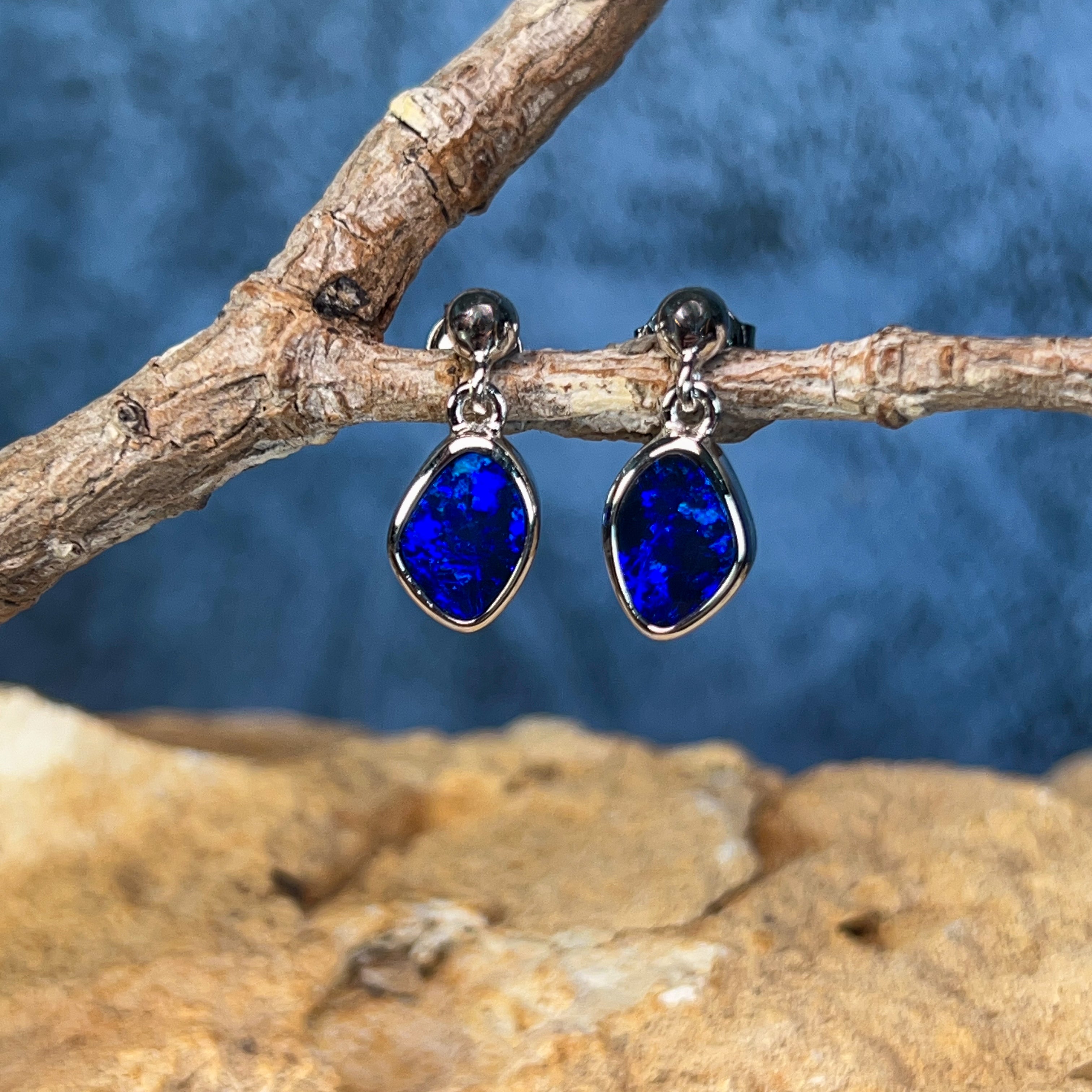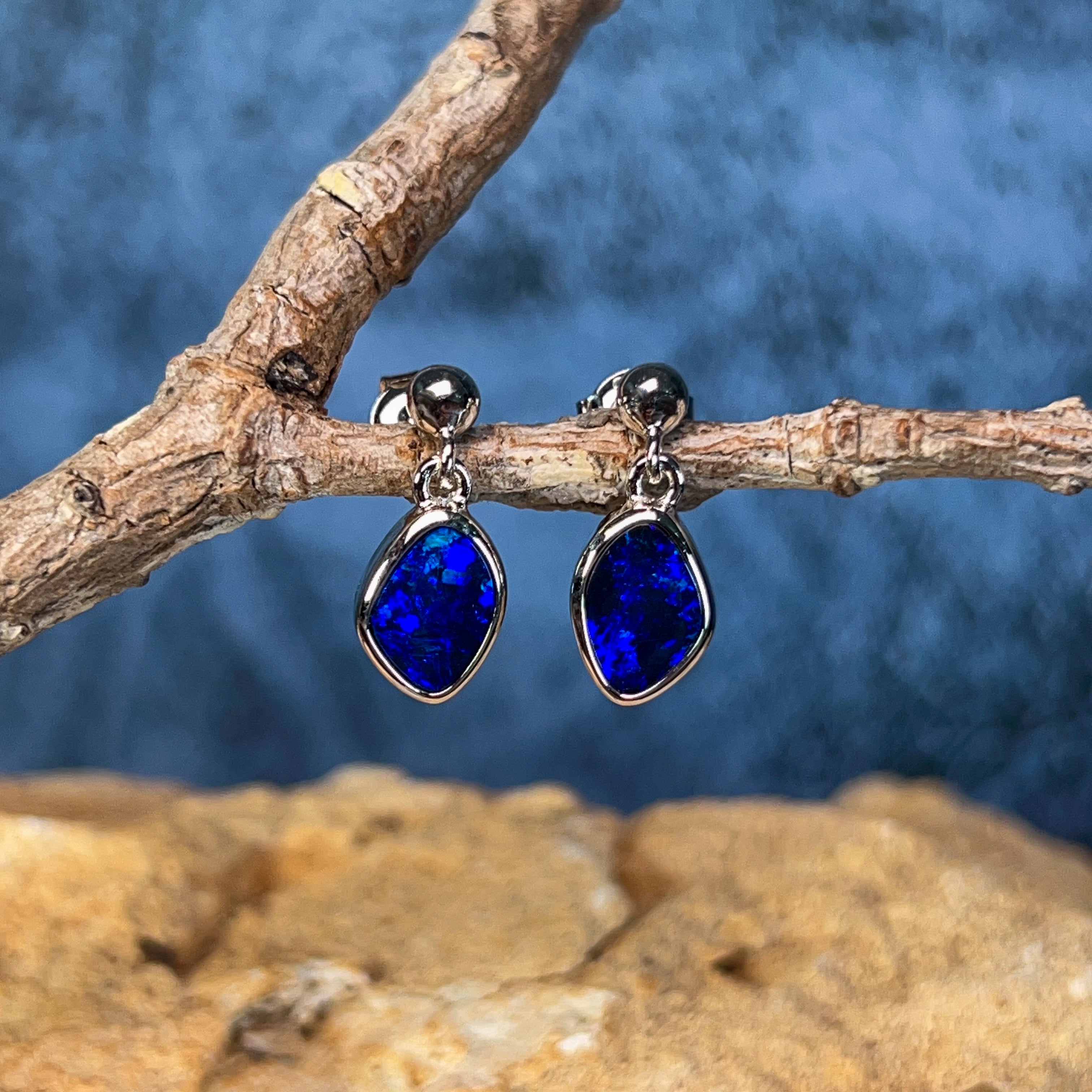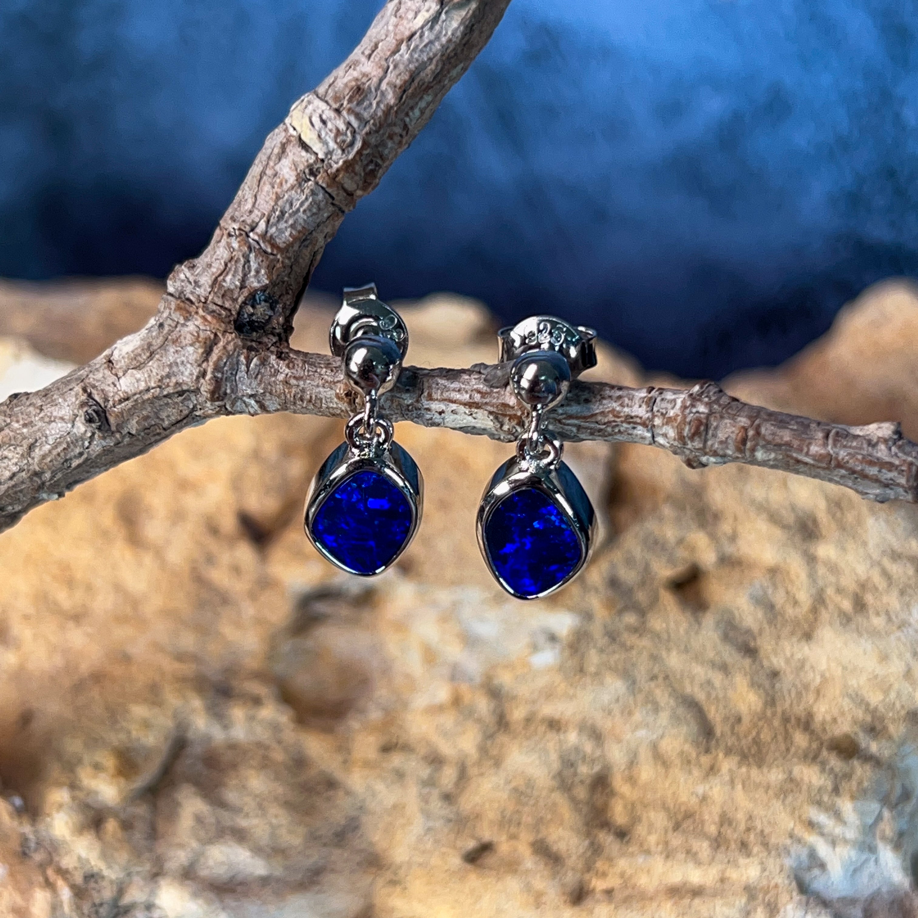 Dive into elegance with these captivating sterling silver blue opal doublet earrings. Each piece showcases a mesmerising 1.85ct stone that captures the essence of the deep ocean—swirling with rich azure hues and luminous depth. The delicate dangling design allows the opals to catch light beautifully, creating an enchanting play of colour with every movement. Crafted in premium sterling silver, these earrings offer timeless sophistication perfect for those who appreciate nature's artistry. Whether you're seeking a statement piece or an everyday treasure, these blue opal danglers deliver understated luxury that speaks volumes.