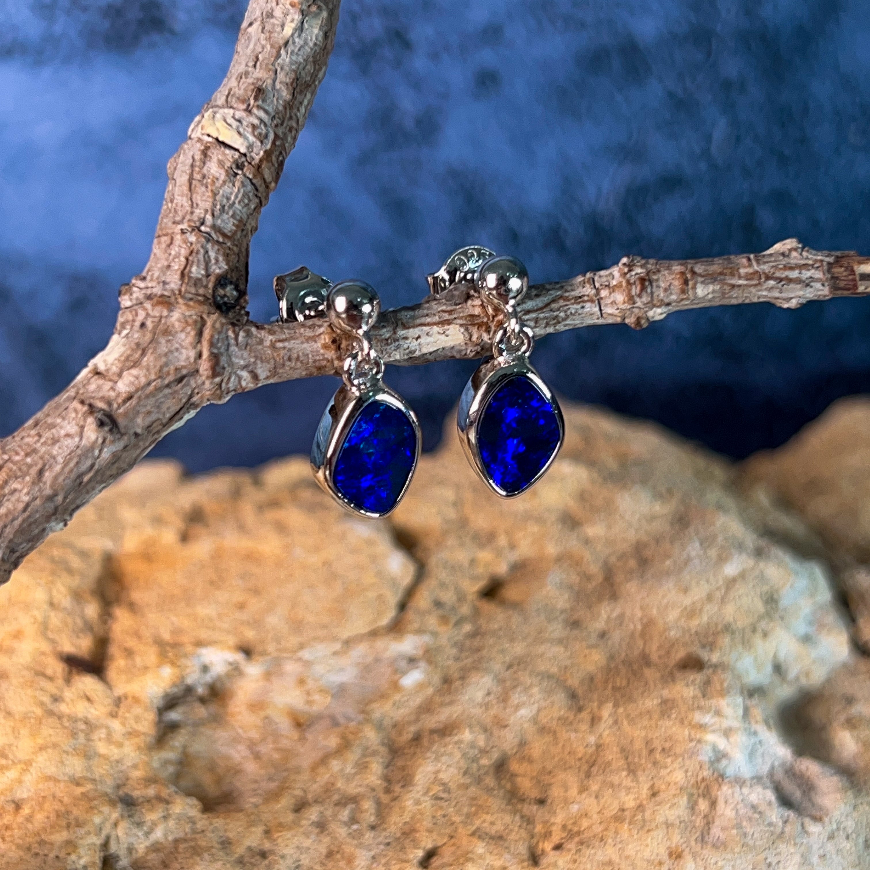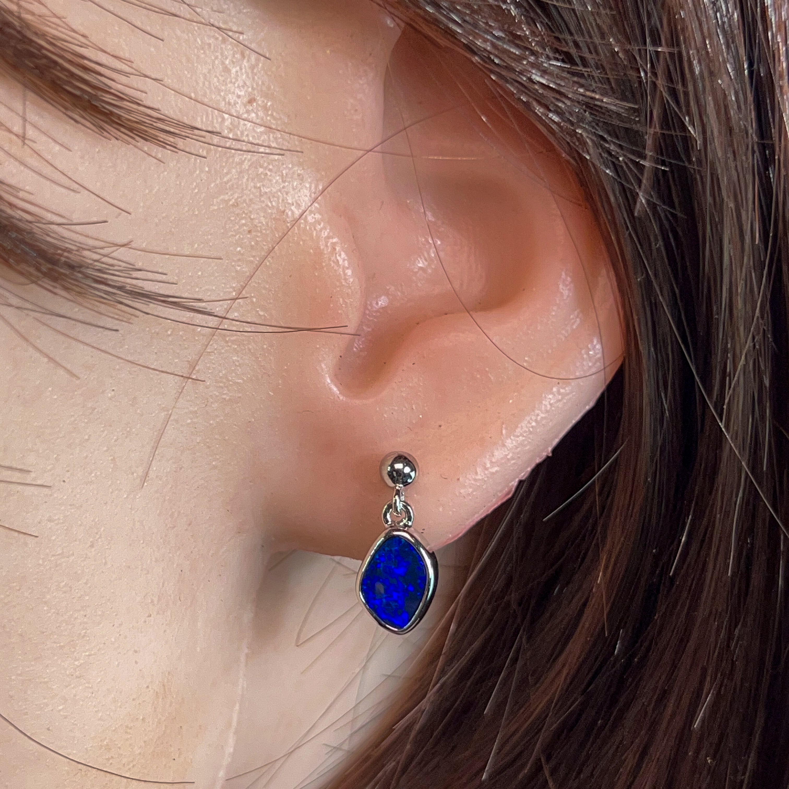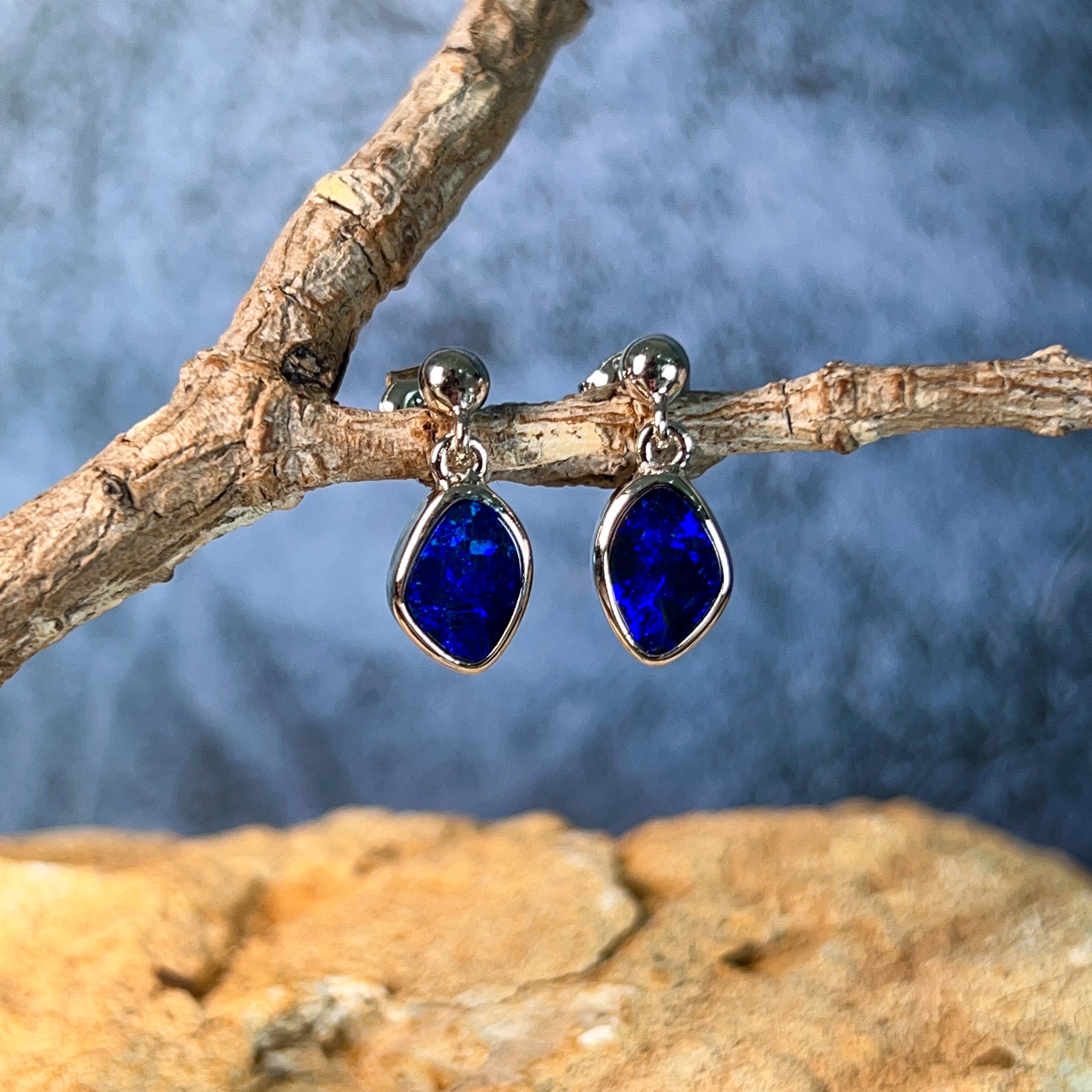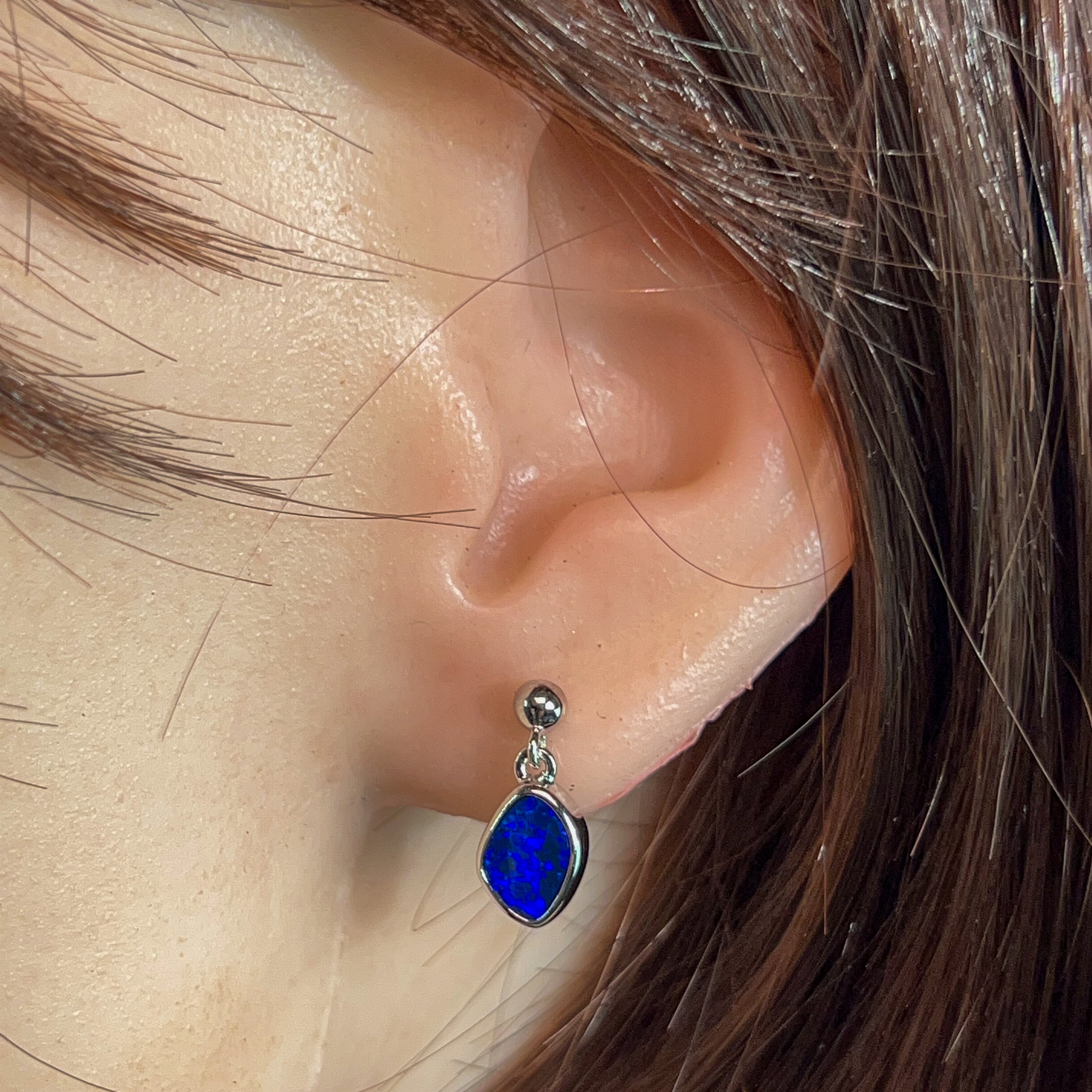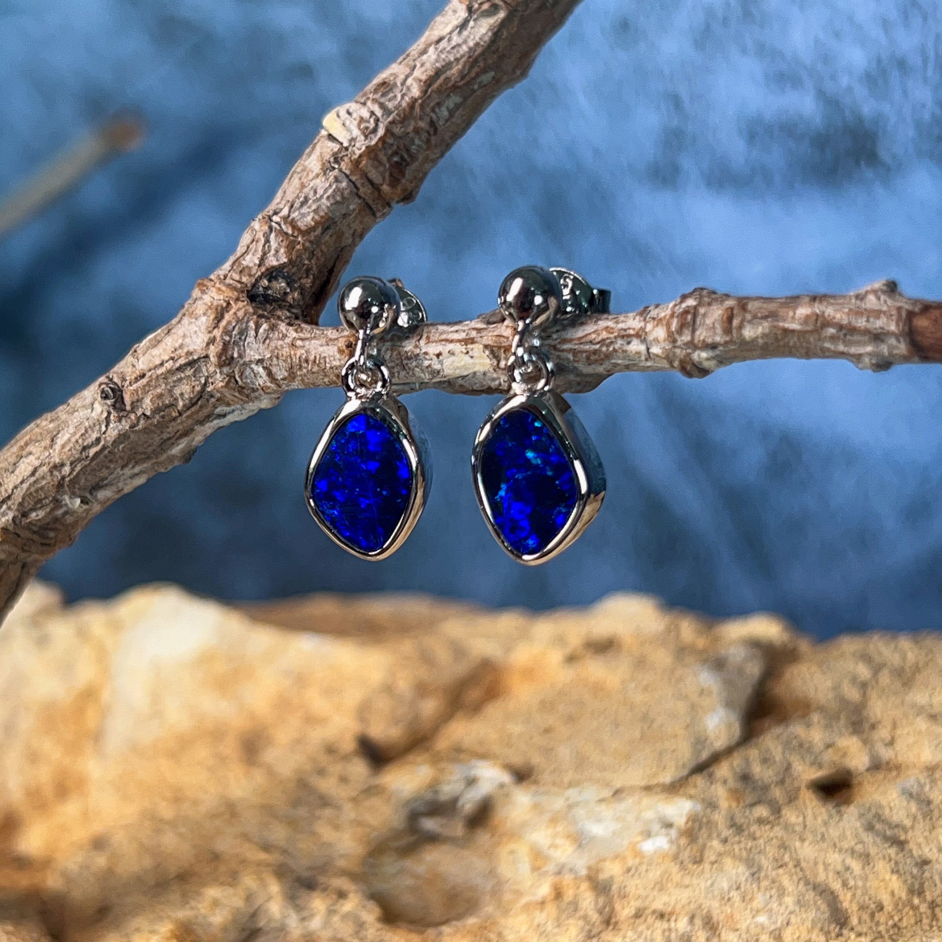 Dive into elegance with these captivating sterling silver blue opal doublet earrings. Each piece showcases a mesmerising 1.85ct stone that captures the essence of the deep ocean—swirling with rich azure hues and luminous depth. The delicate dangling design allows the opals to catch light beautifully, creating an enchanting play of colour with every movement. Crafted in premium sterling silver, these earrings offer timeless sophistication perfect for those who appreciate nature's artistry. Whether you're seeking a statement piece or an everyday treasure, these blue opal danglers deliver understated luxury that speaks volumes.