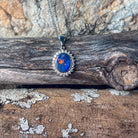 Sterling Silver cluster Opal doublet 9x7mm Blue Red pendant