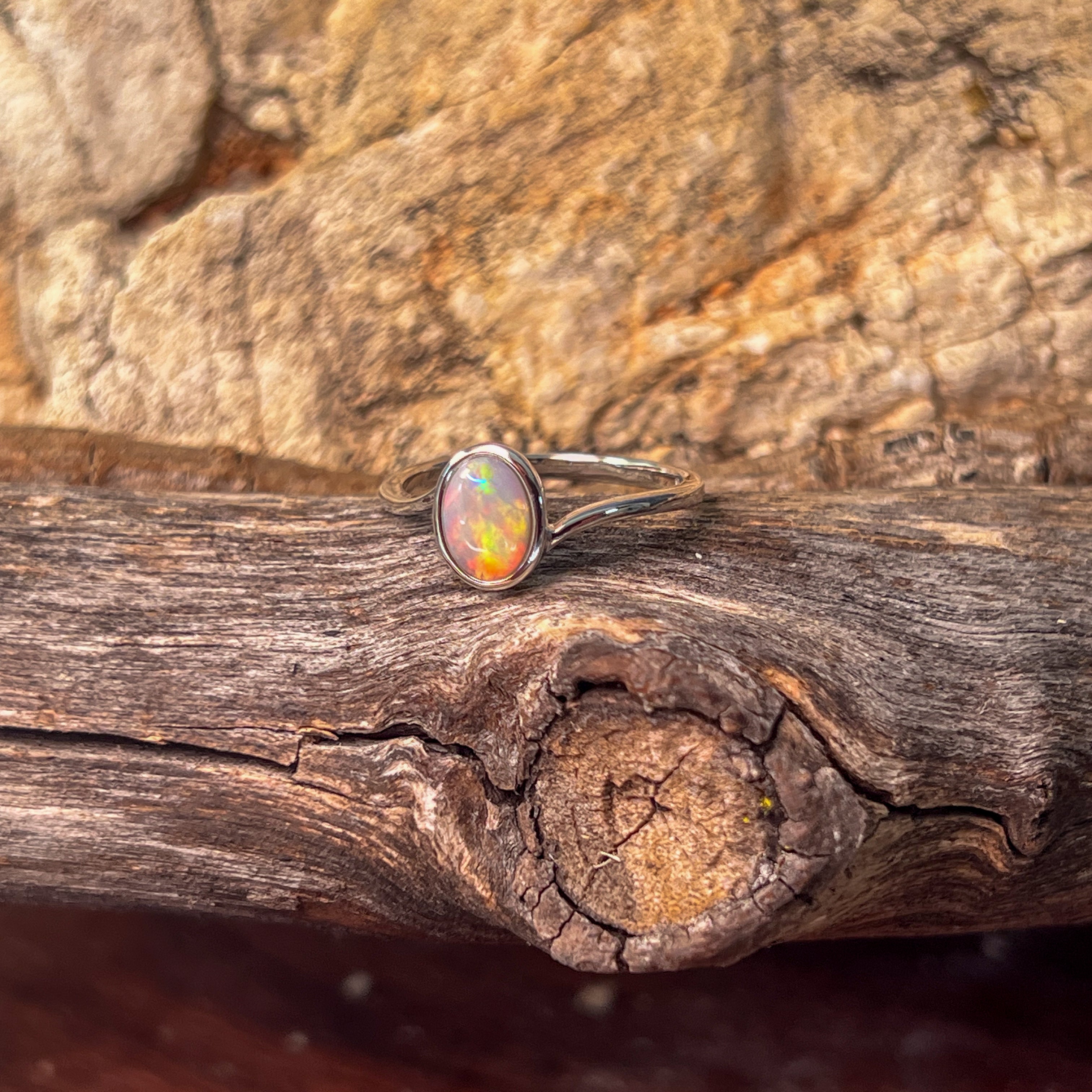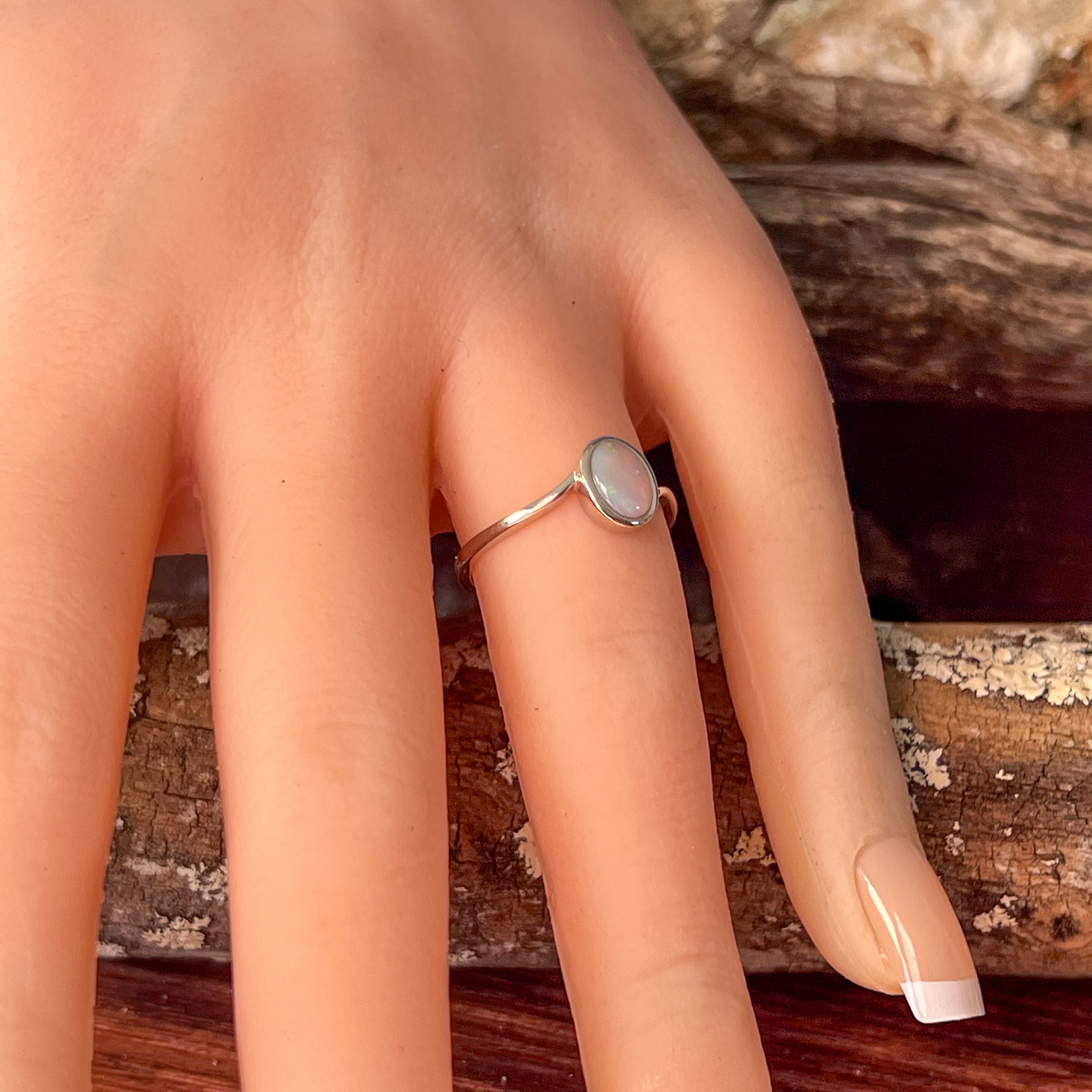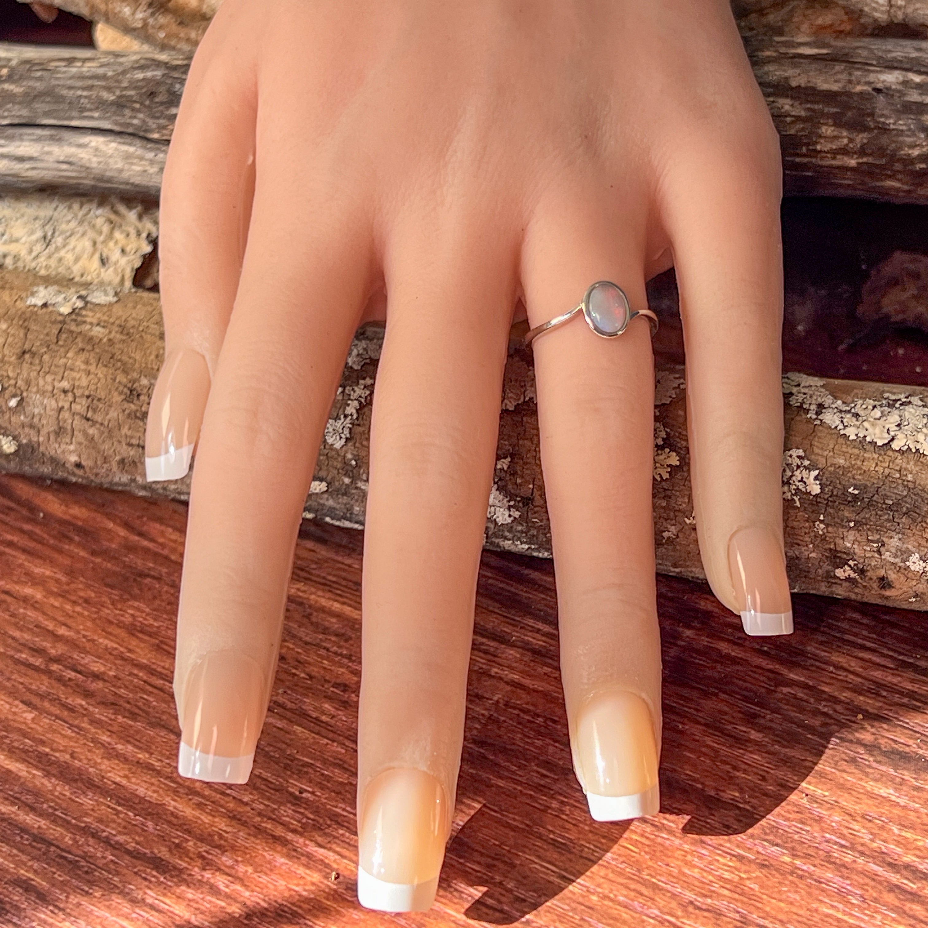 Sterling Silver cross over ring with one 7x5mm White Opal