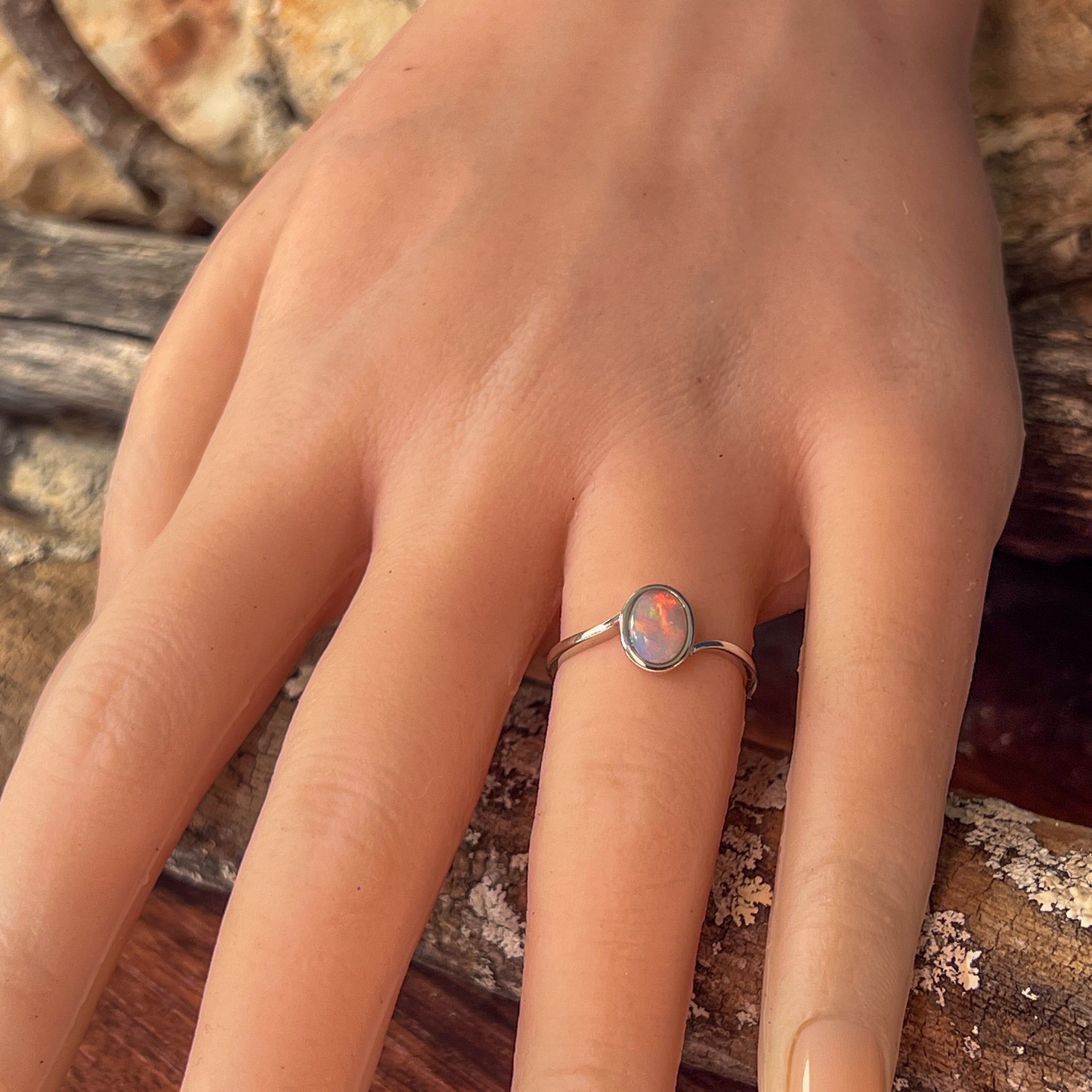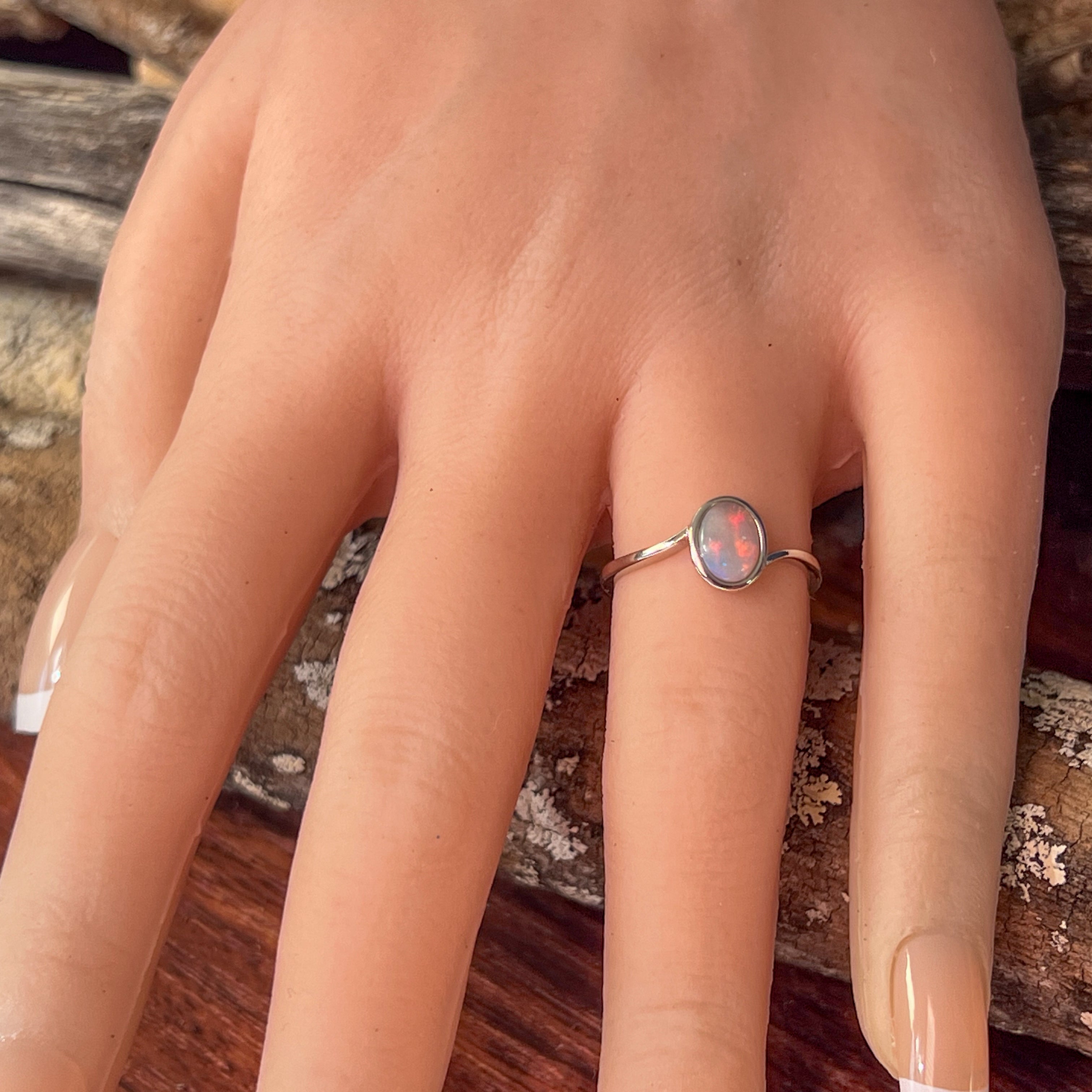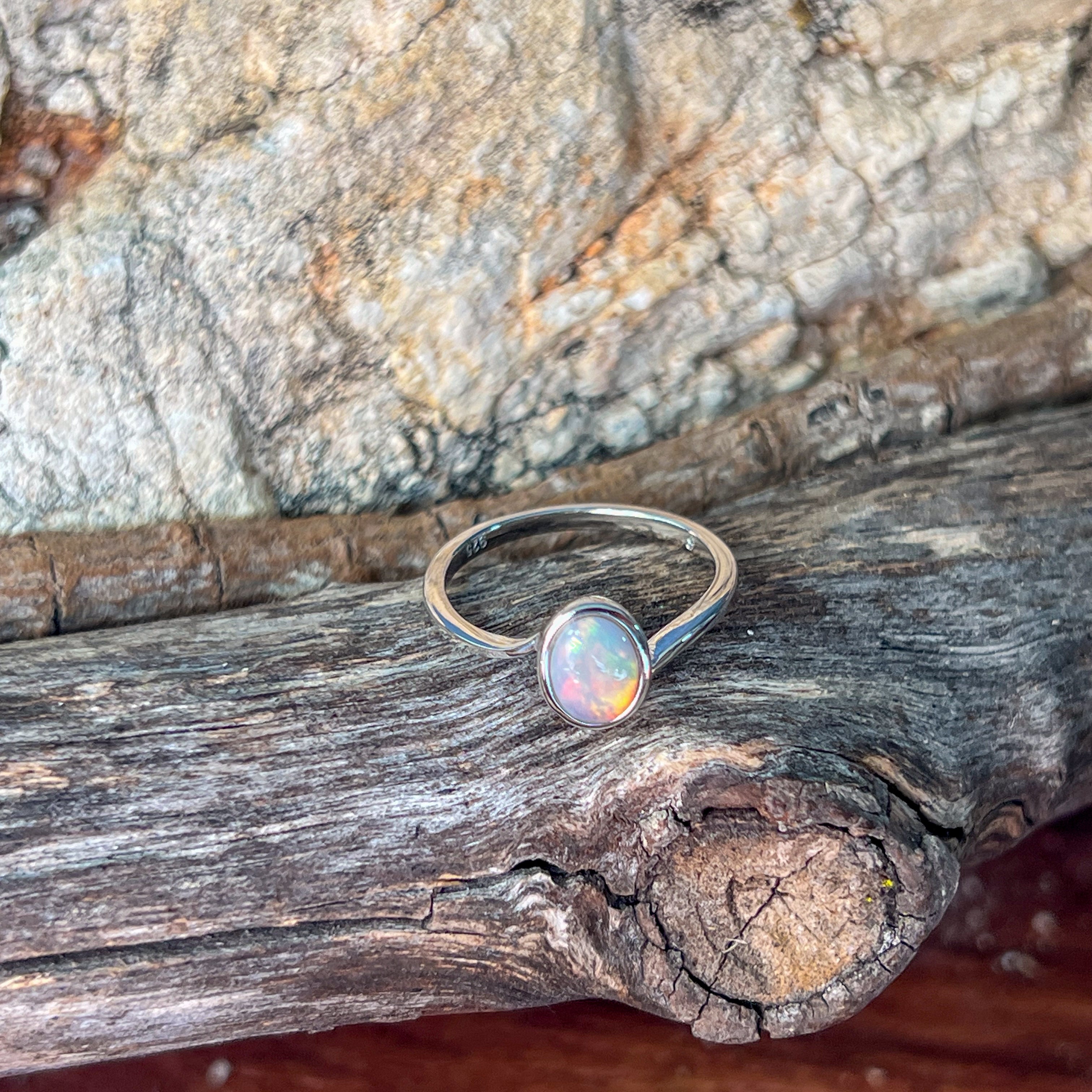 Sterling Silver cross over ring with one 7x5mm White Opal