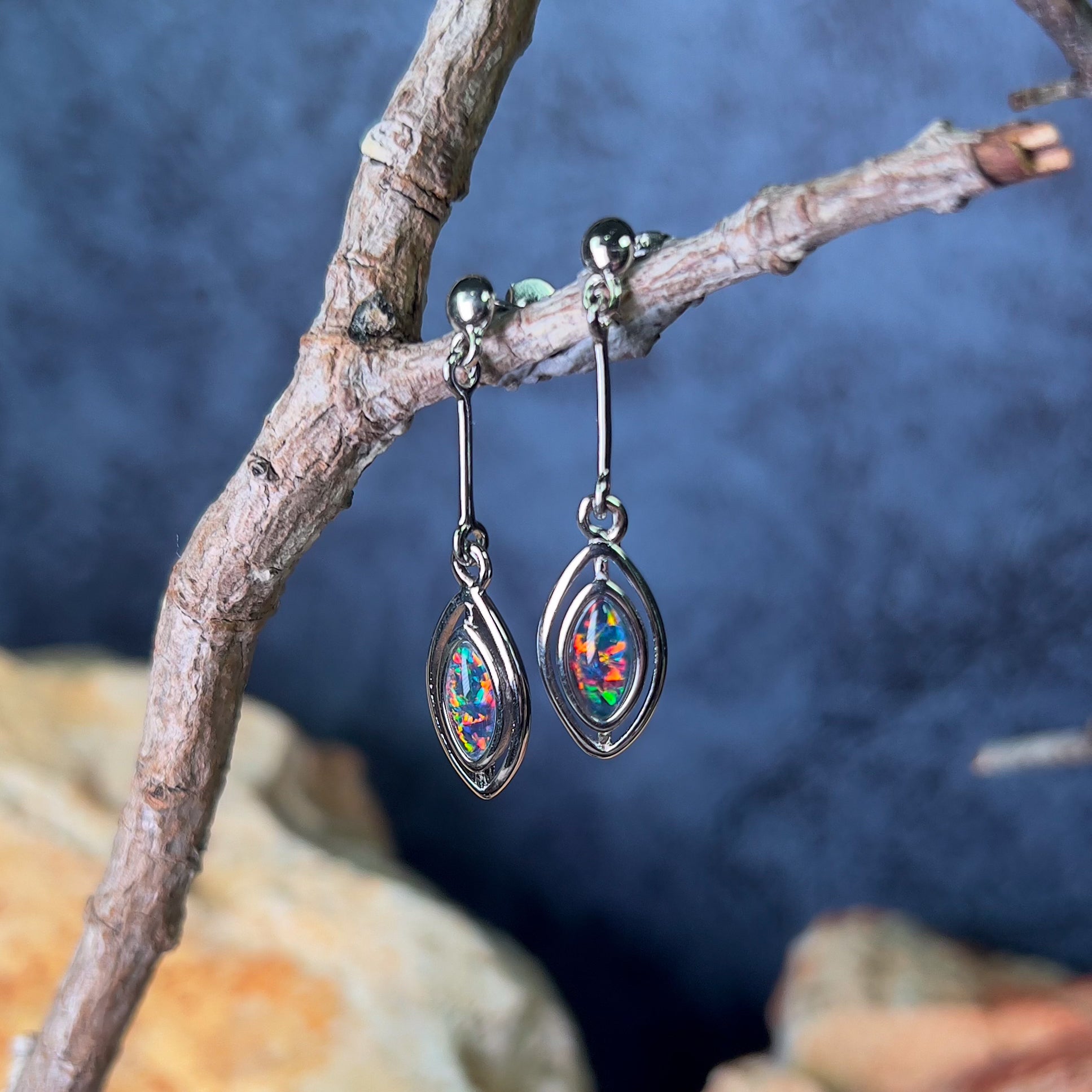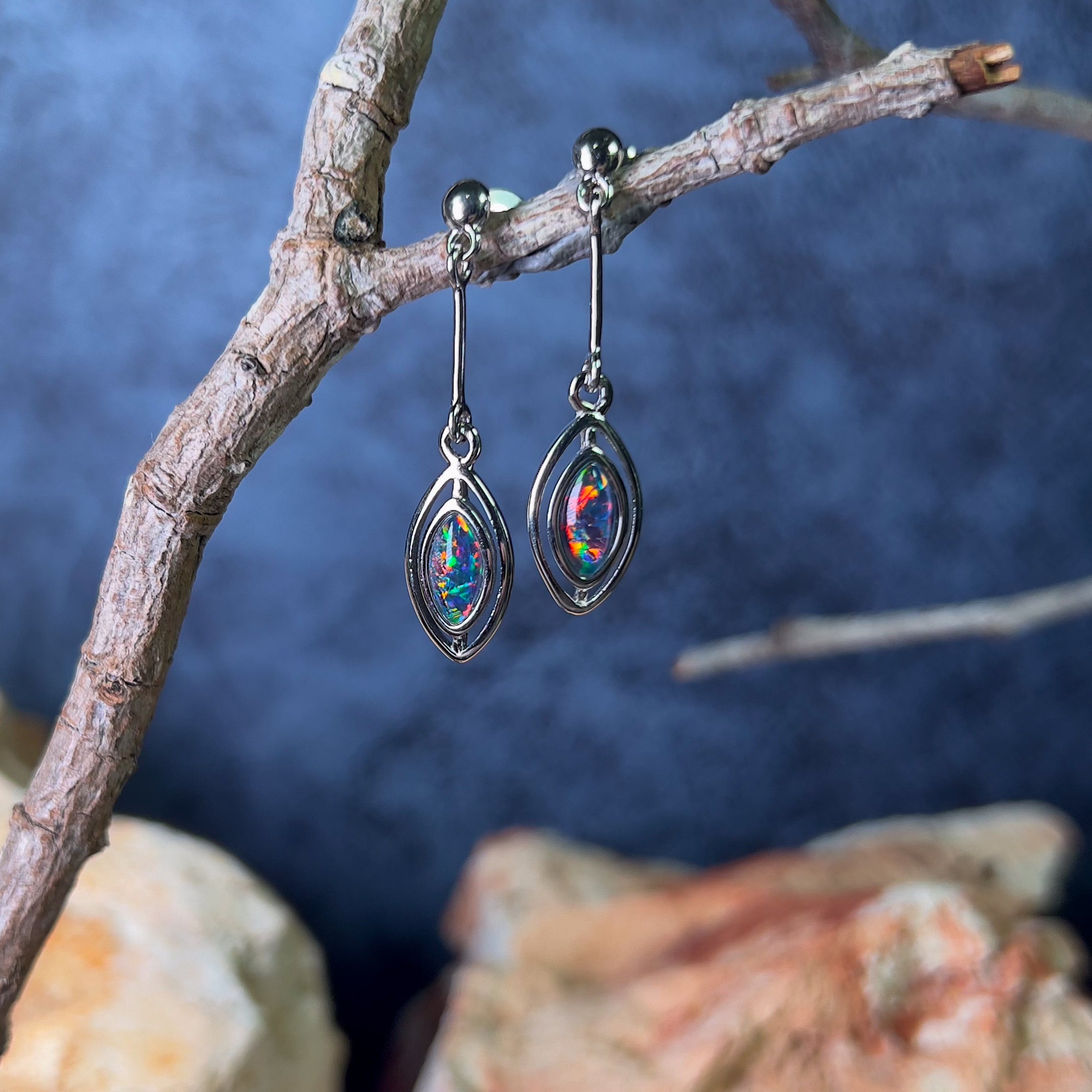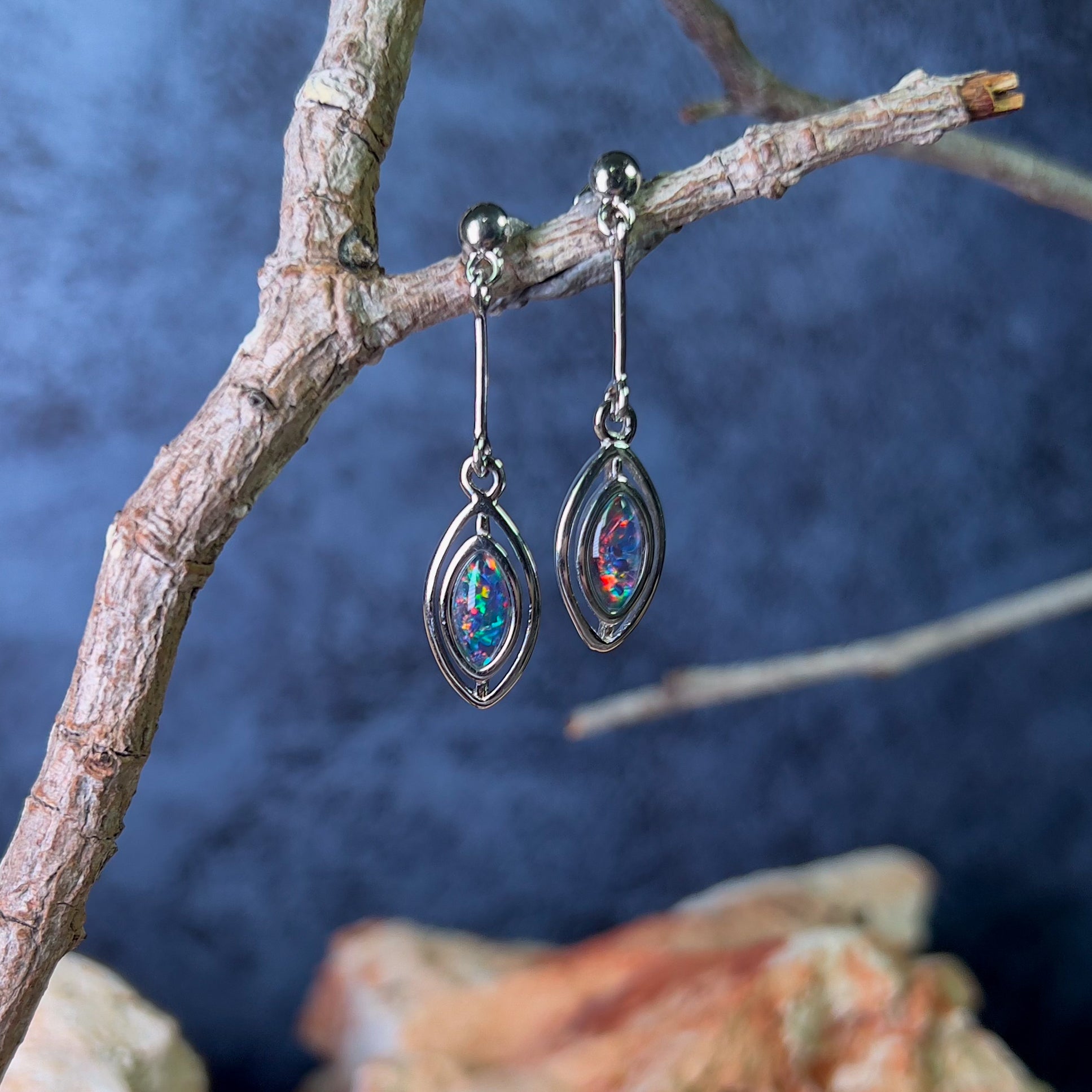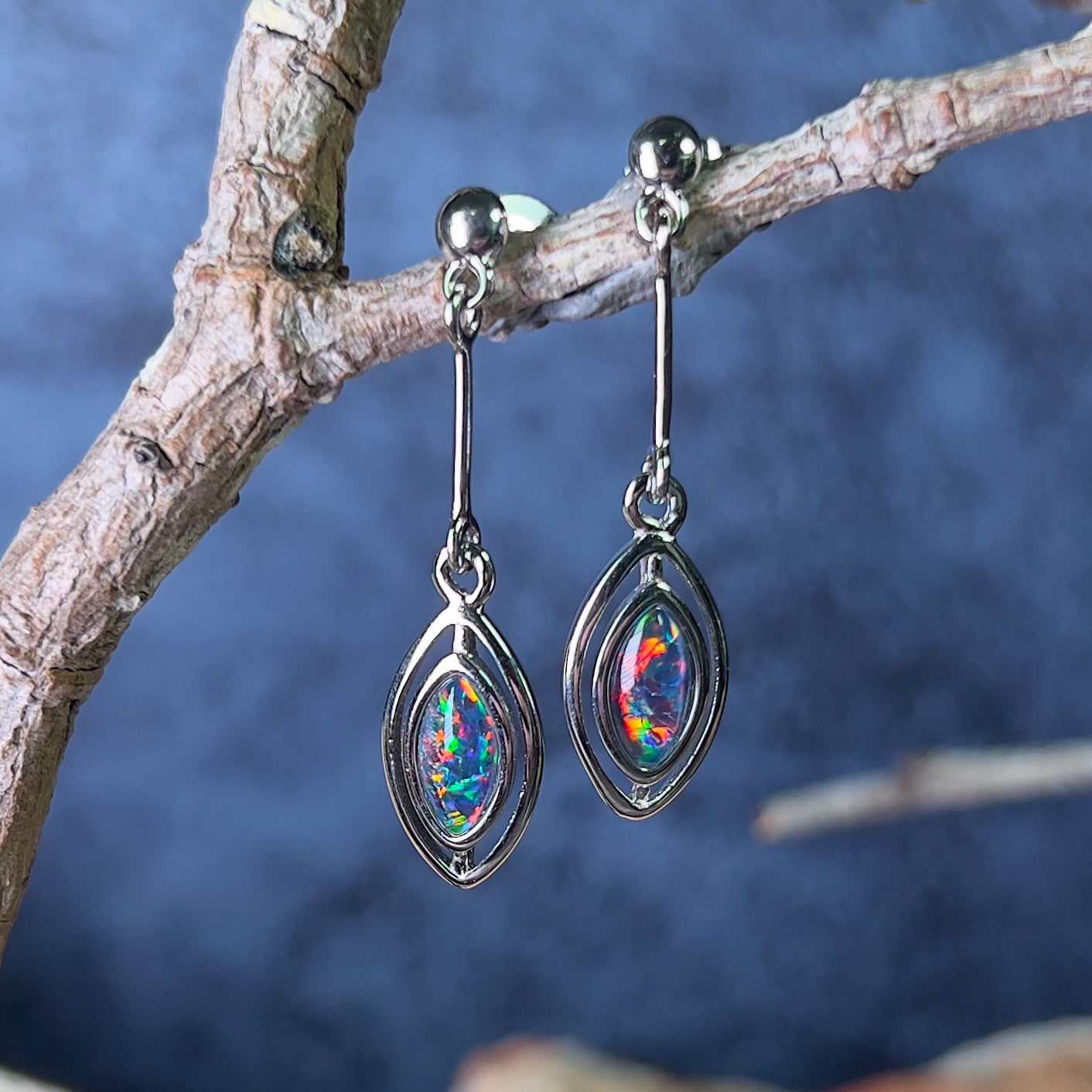 Sterling Silver dangling marquise shape Opal triplets earrings