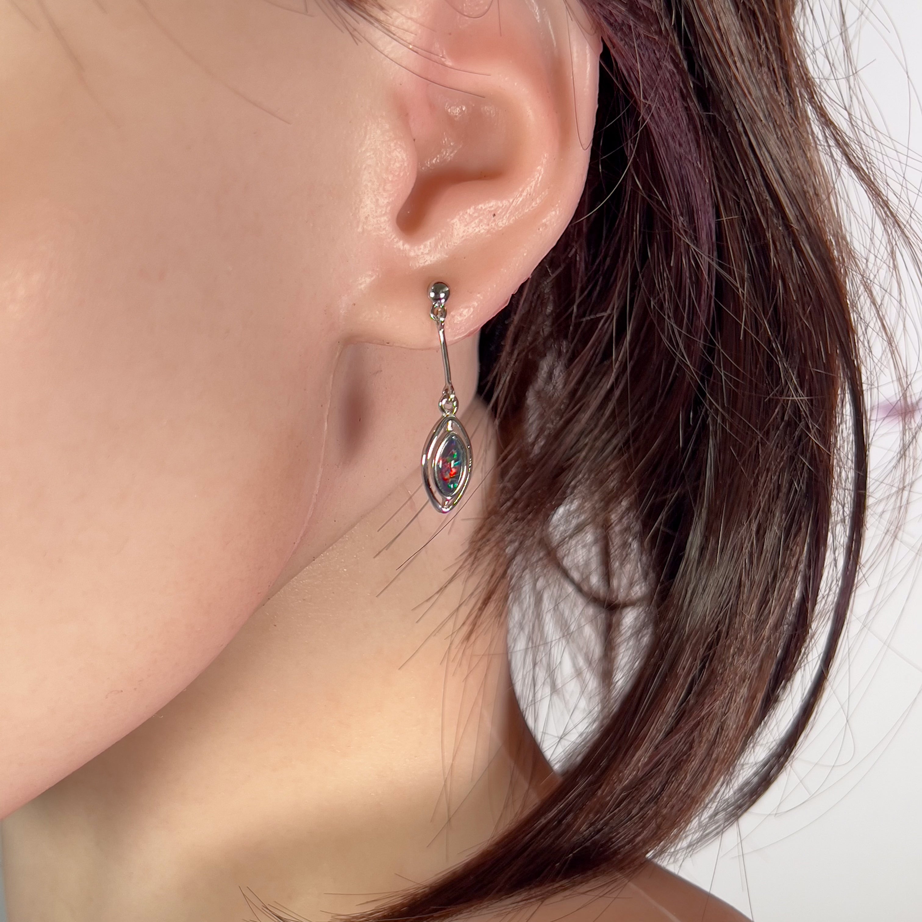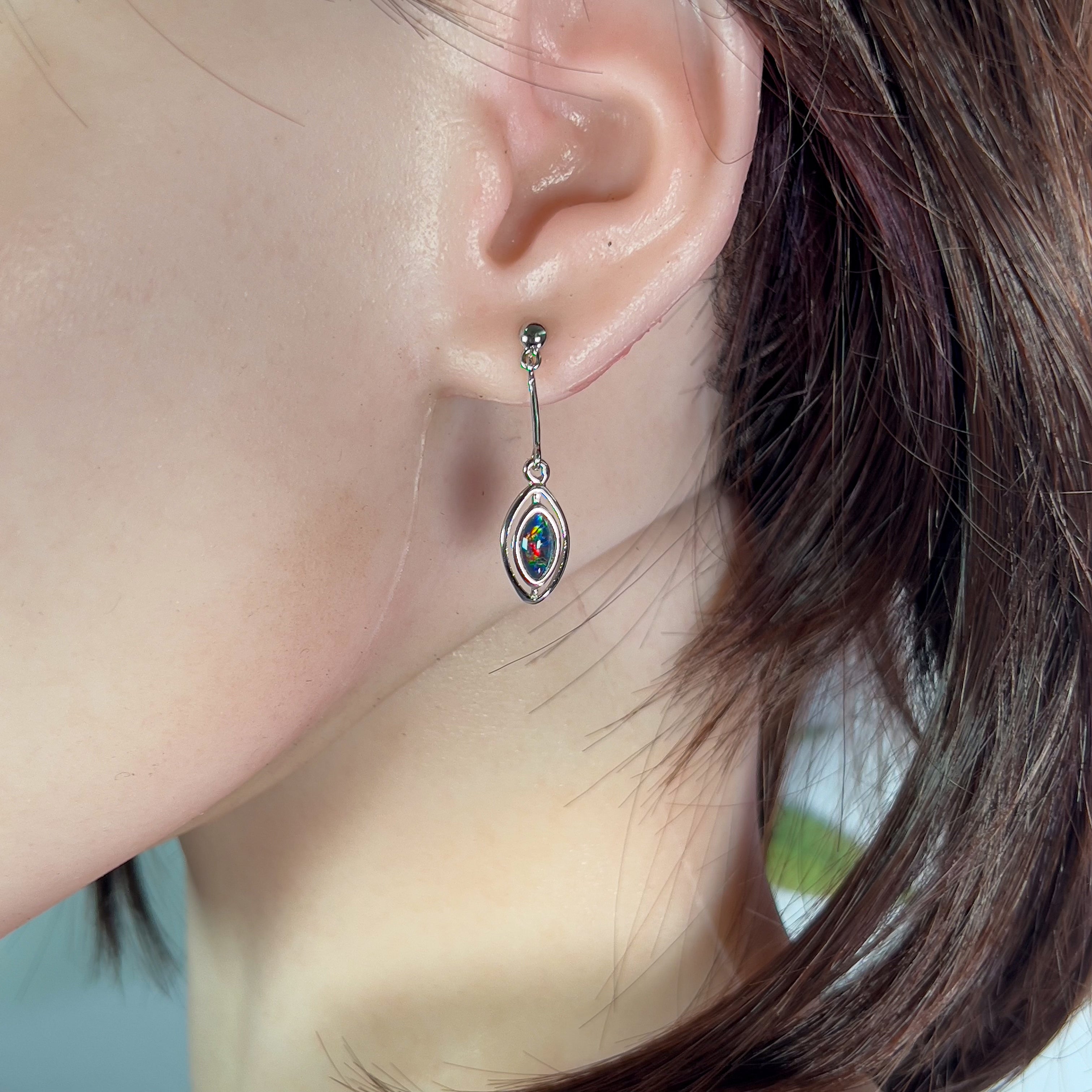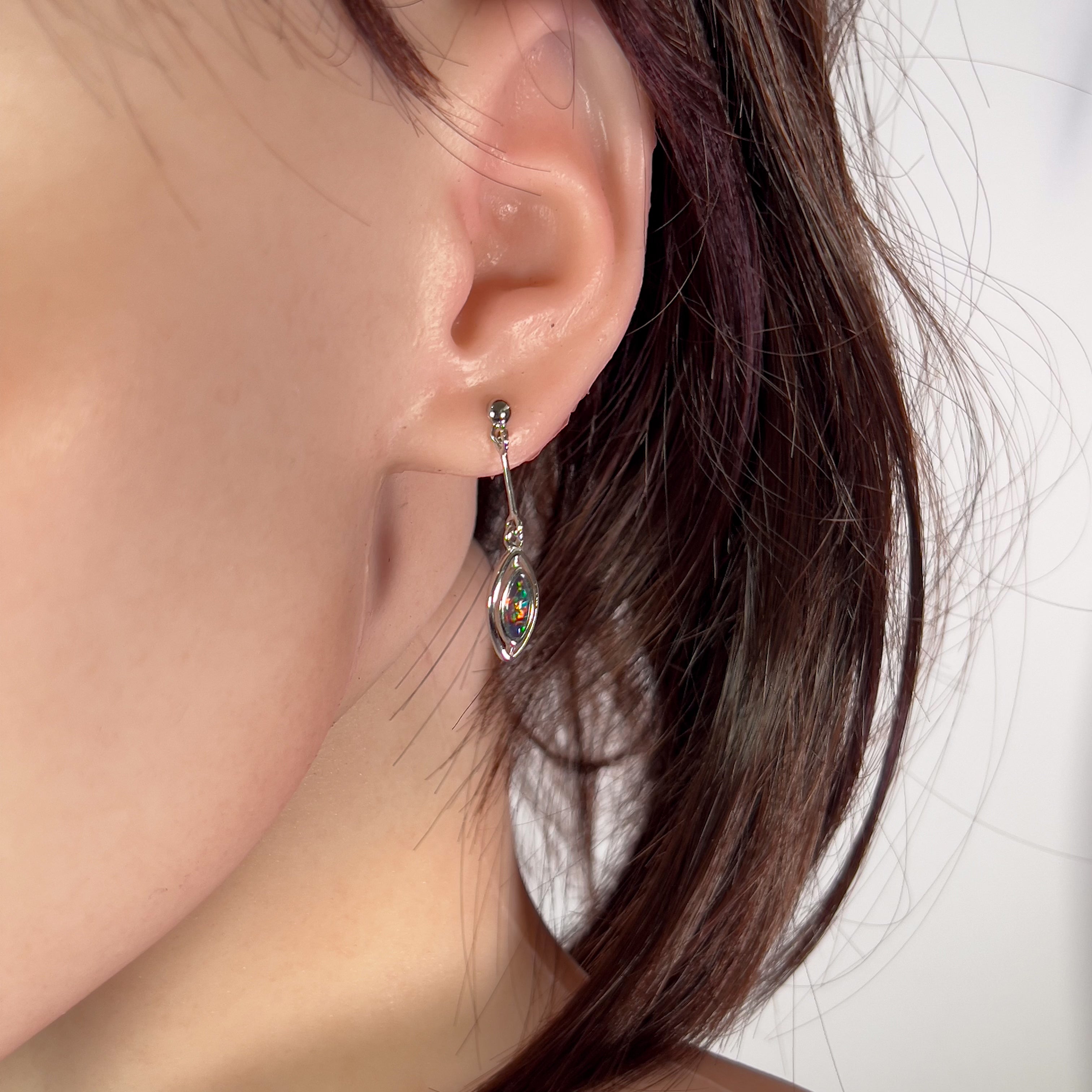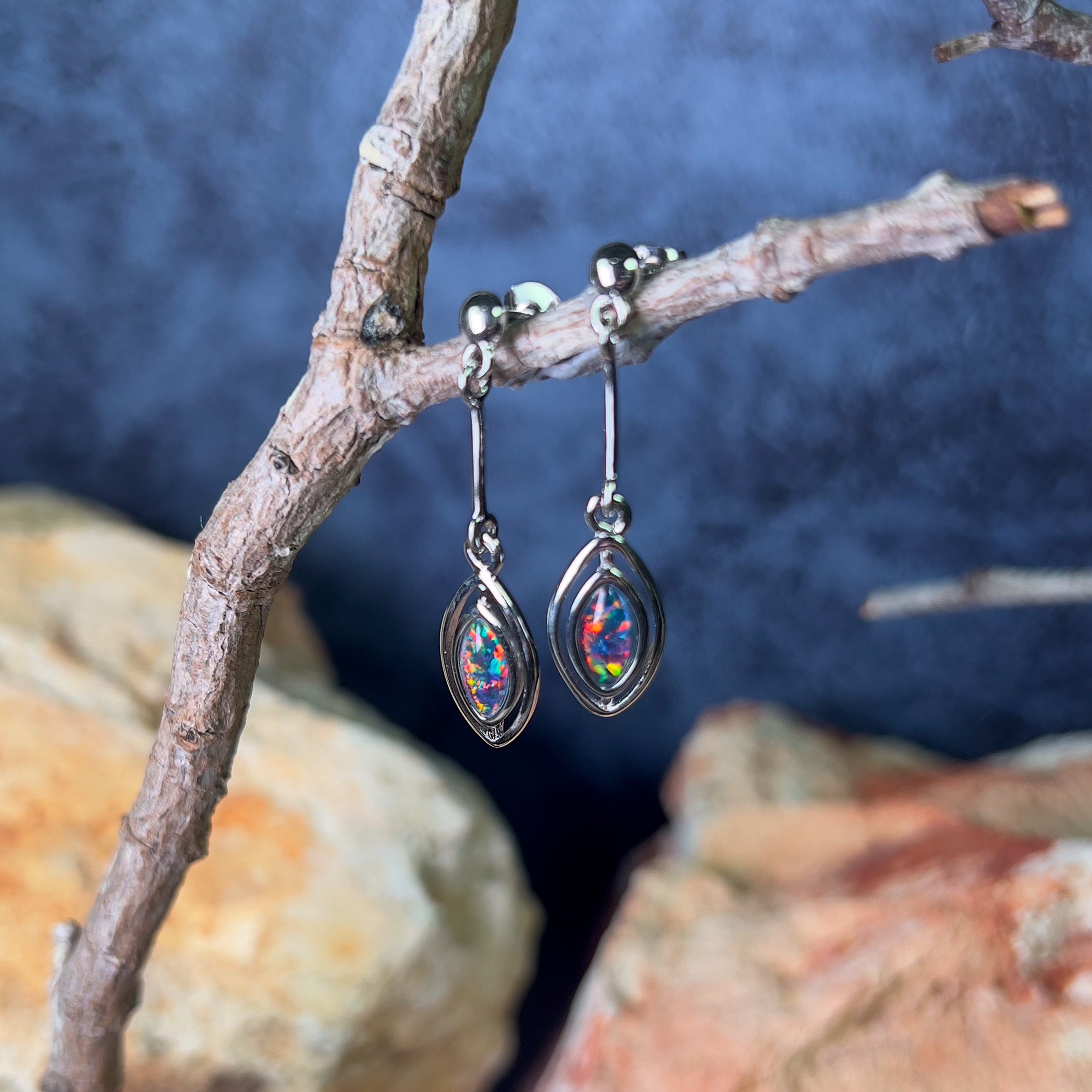 Sterling Silver dangling marquise shape Opal triplets earrings