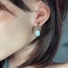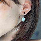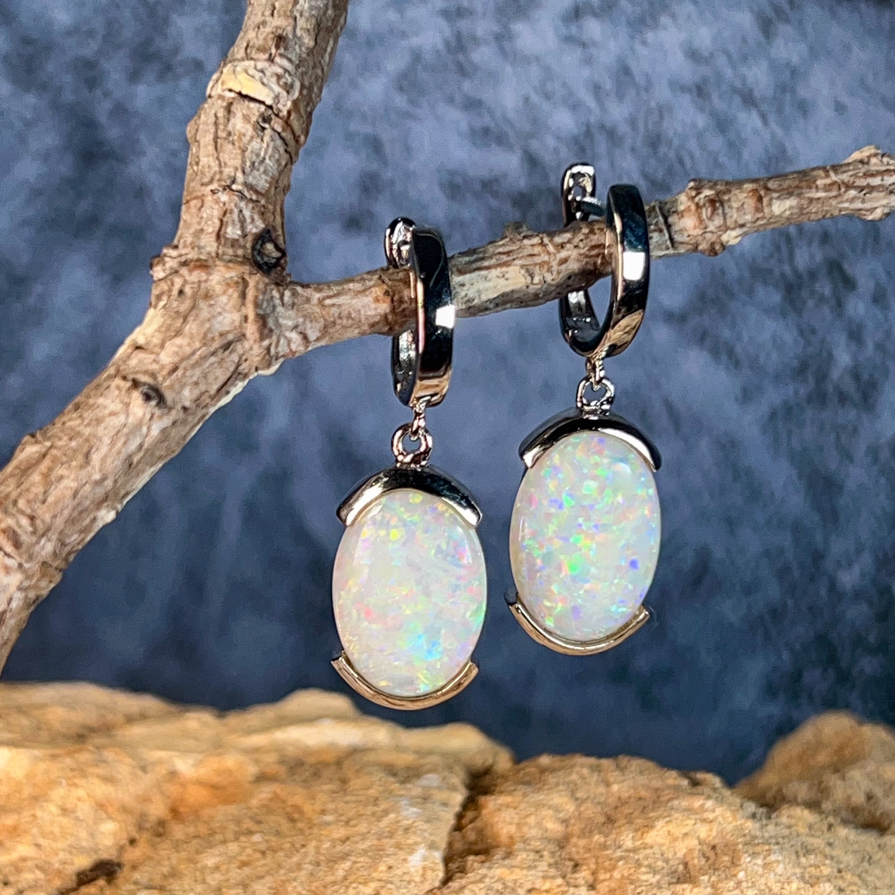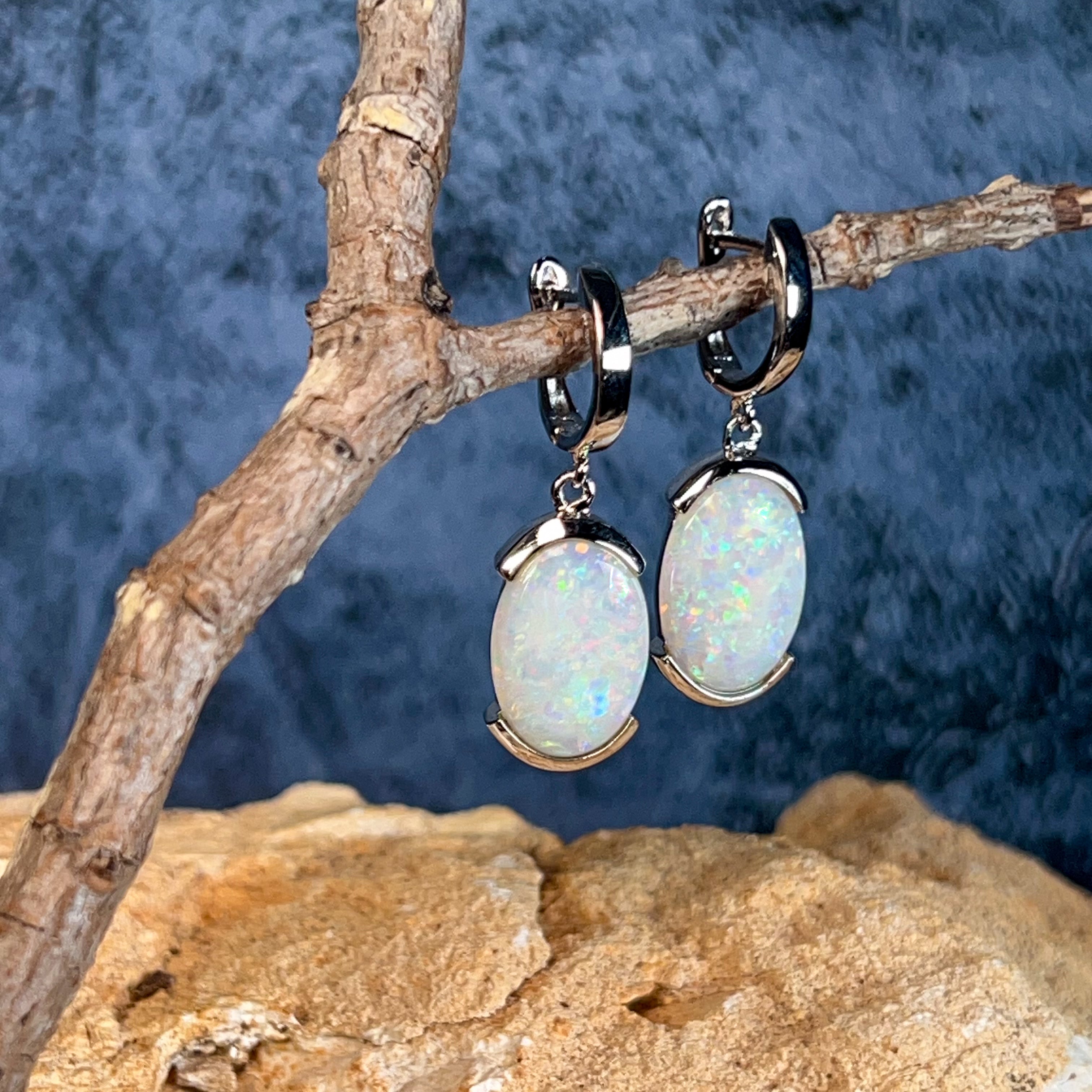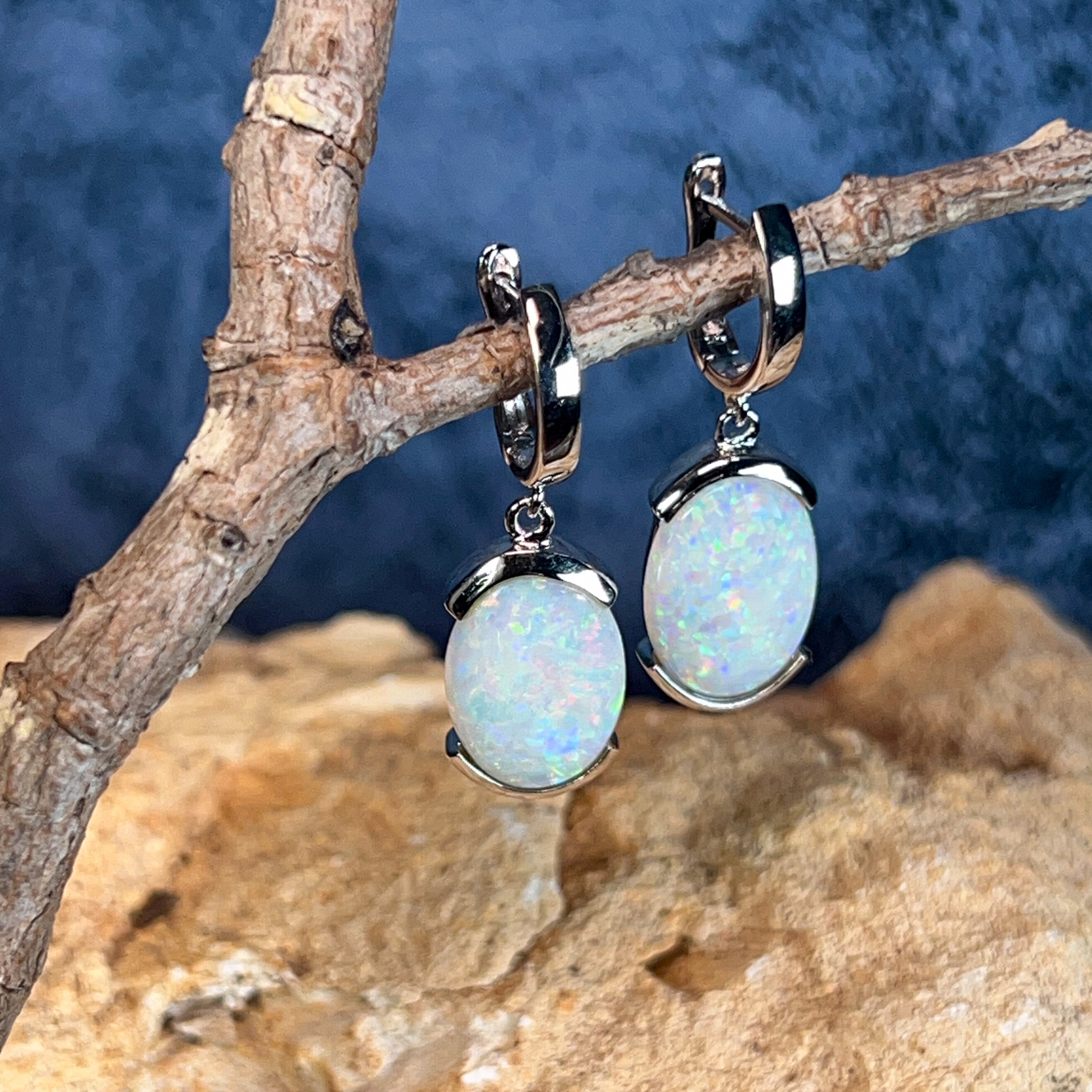 Sterling Silver drop style huggie White Opal 16x10mm half bezel earrings