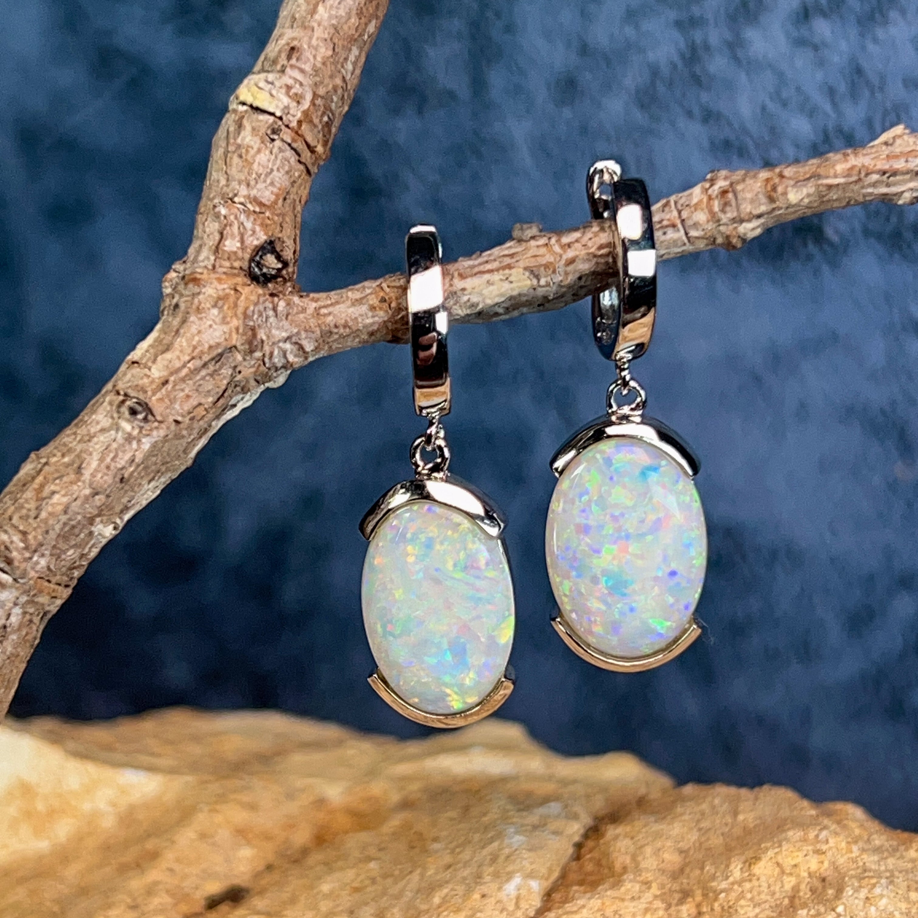 Tiny treasures that pack a punch! These sterling silver huggie earrings feature a stunning white opal drop that catches the light beautifully. The half bezel setting keeps your precious stone secure while the dangle design adds just the right amount of movement and sparkle. Perfect for everyday wear or special occasions—because who says you can't have fun with your jewellery?