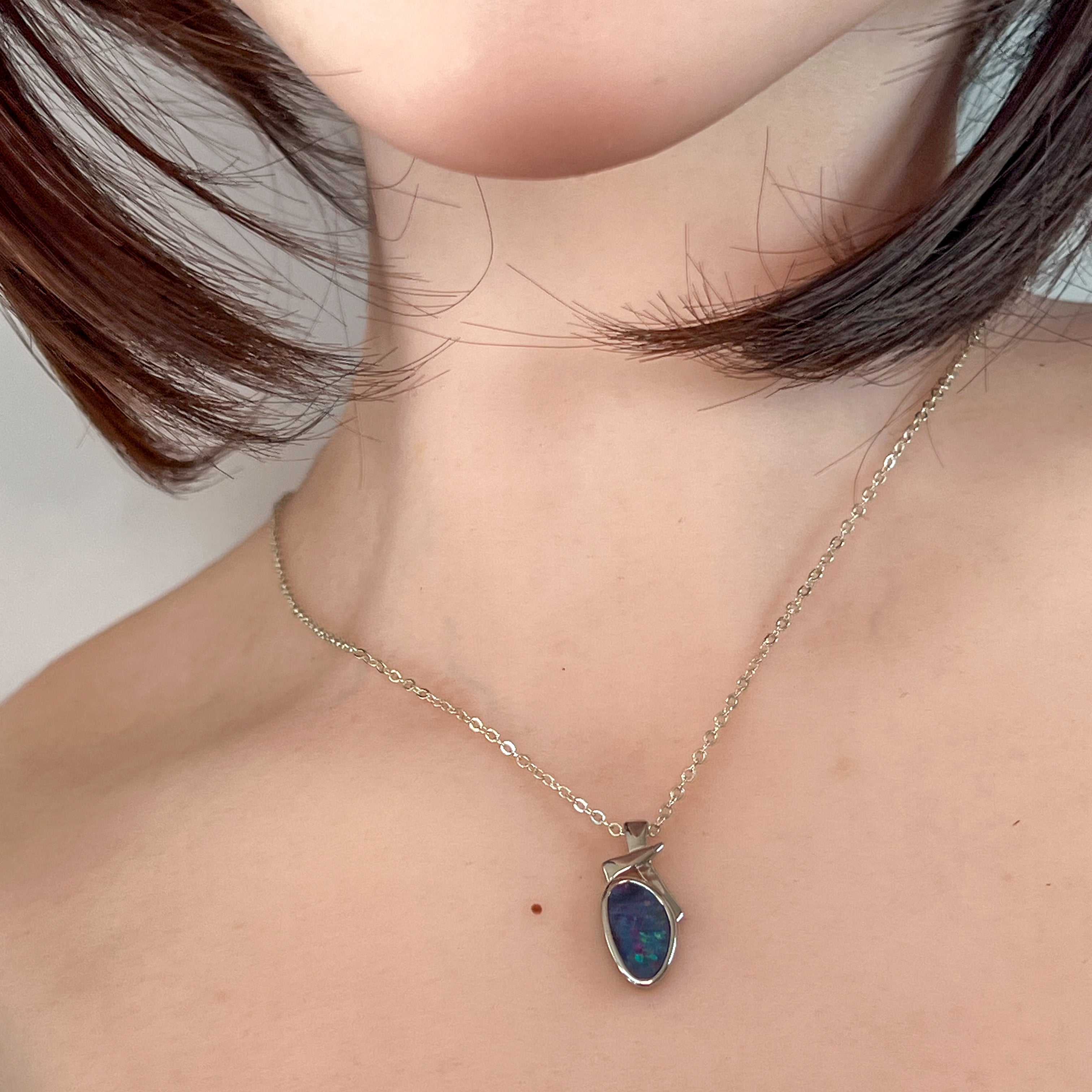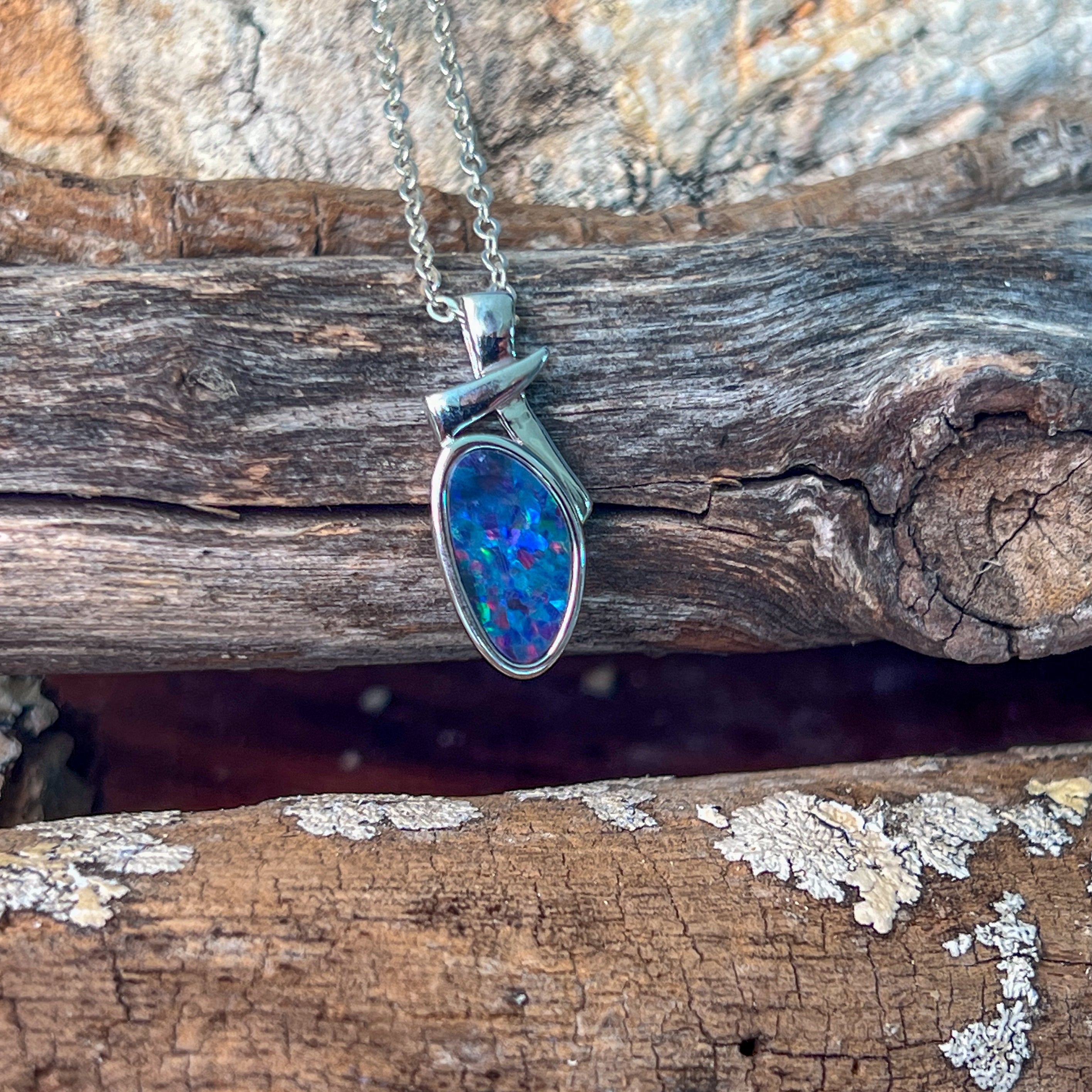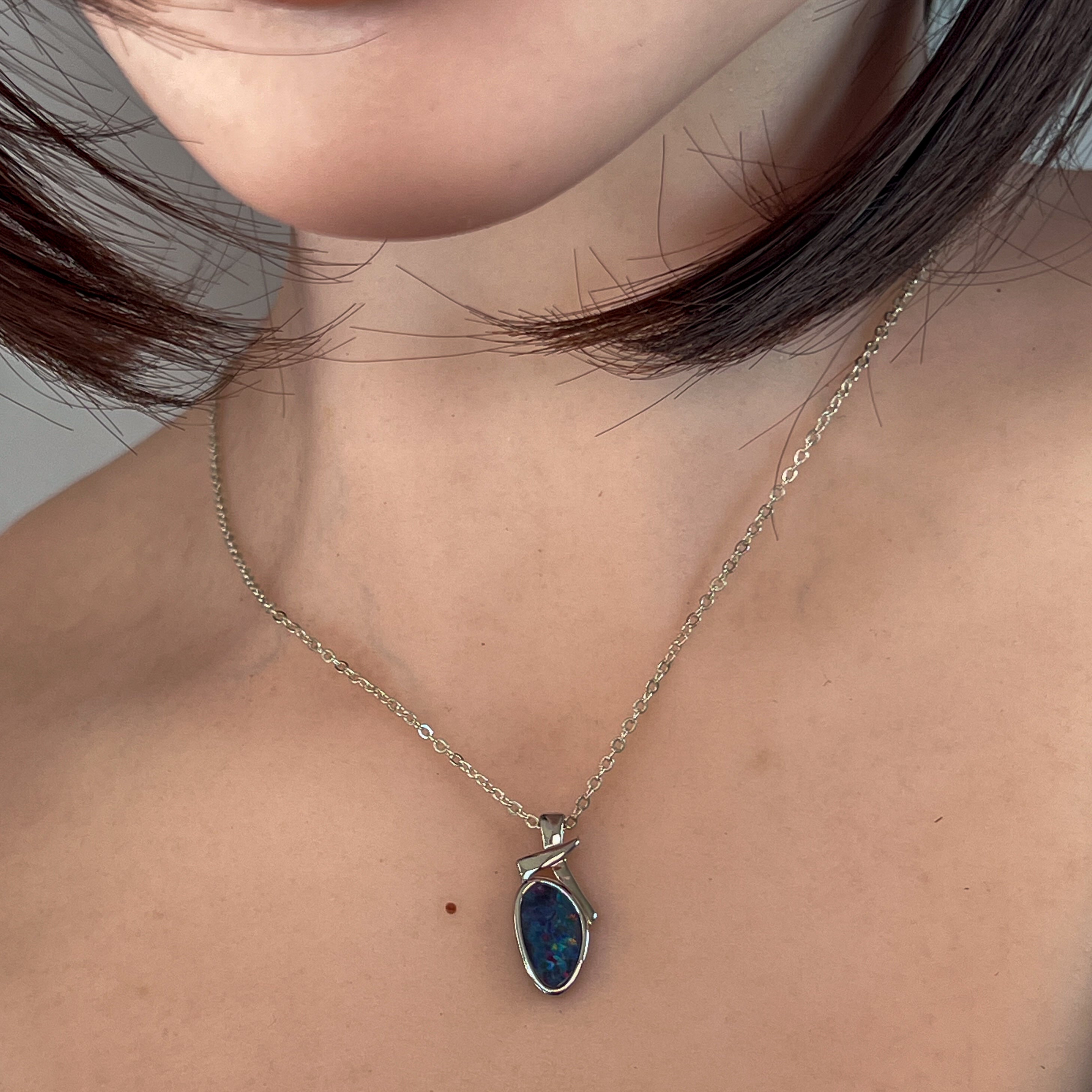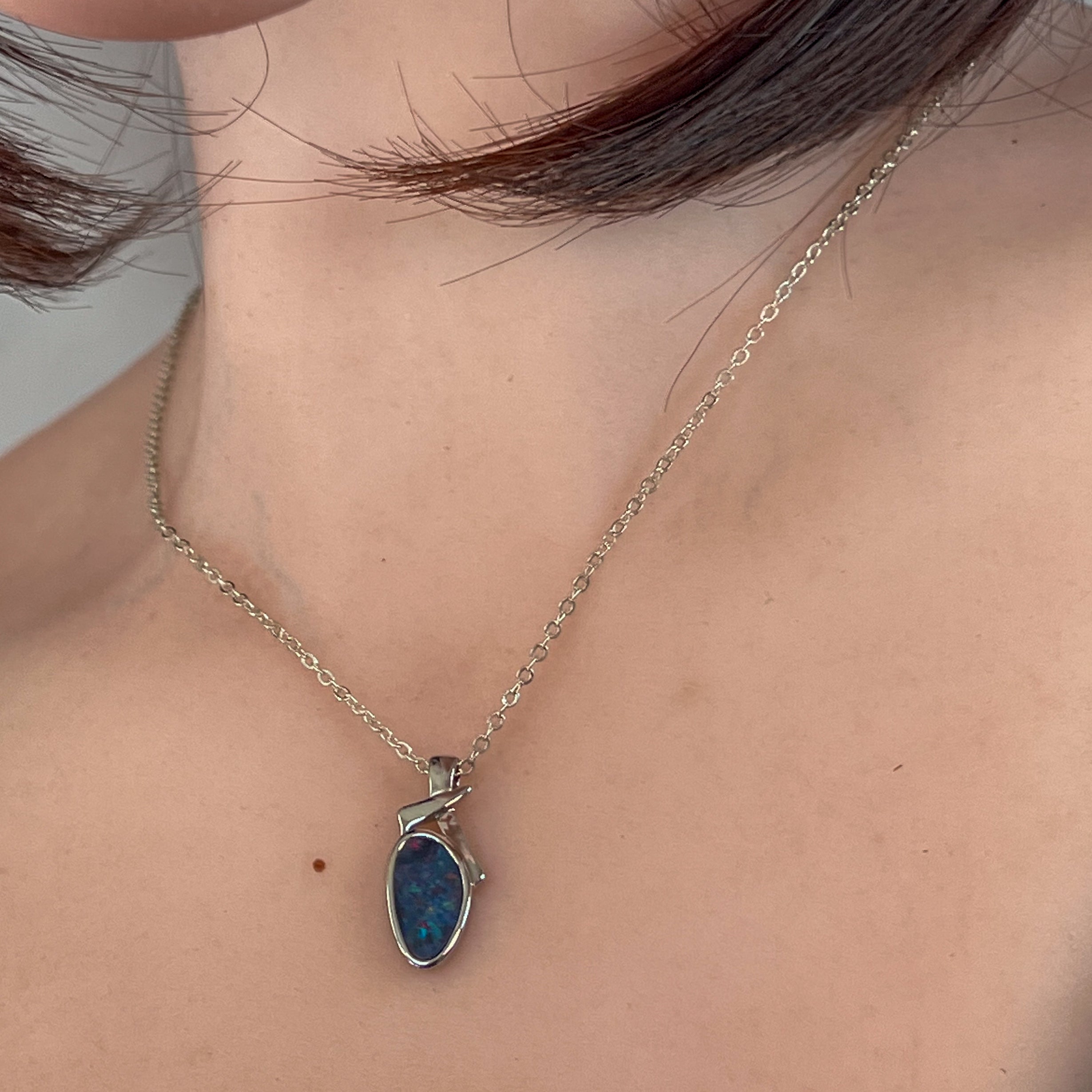 Sterling Silver freeform shap opal doublet 13x7mm pendant
