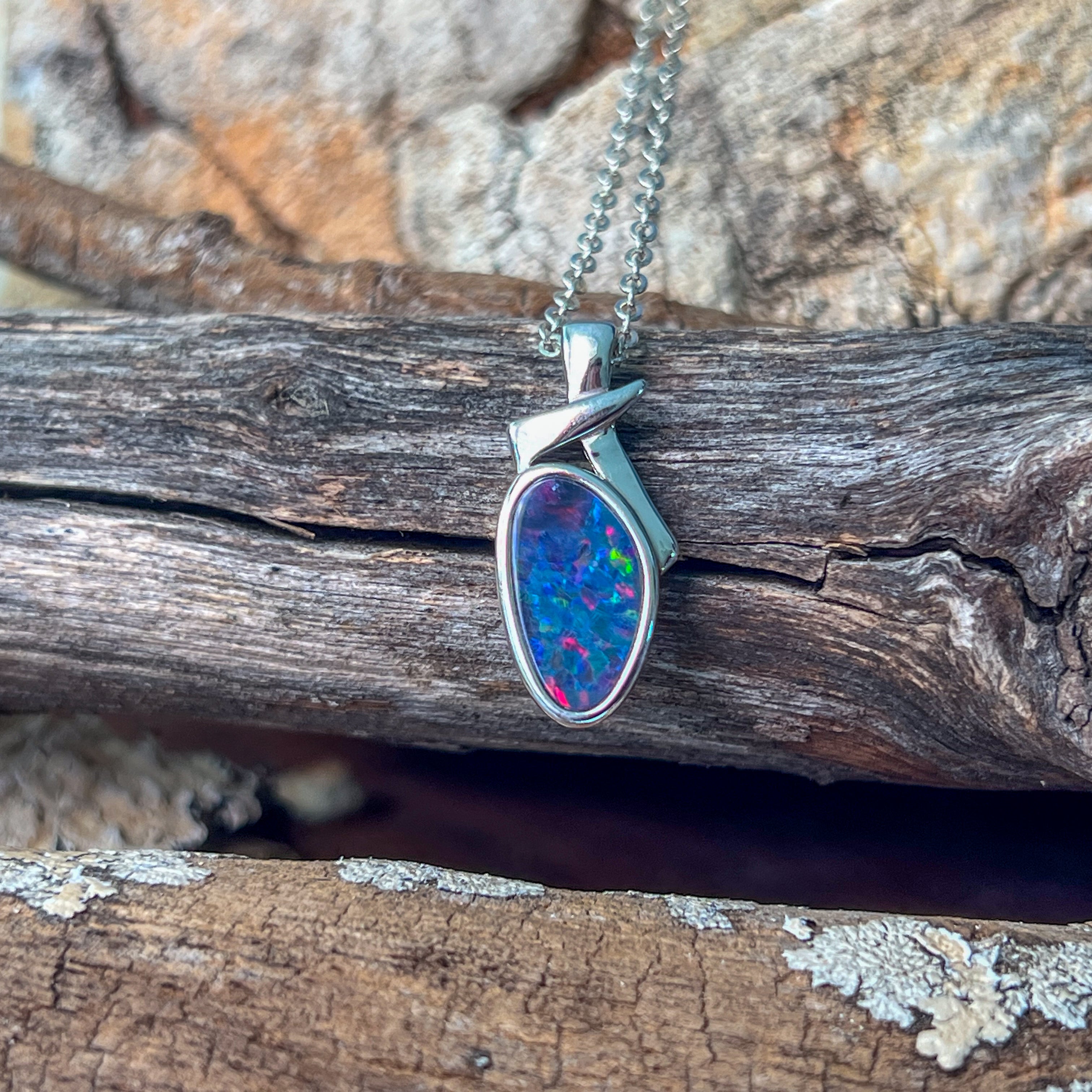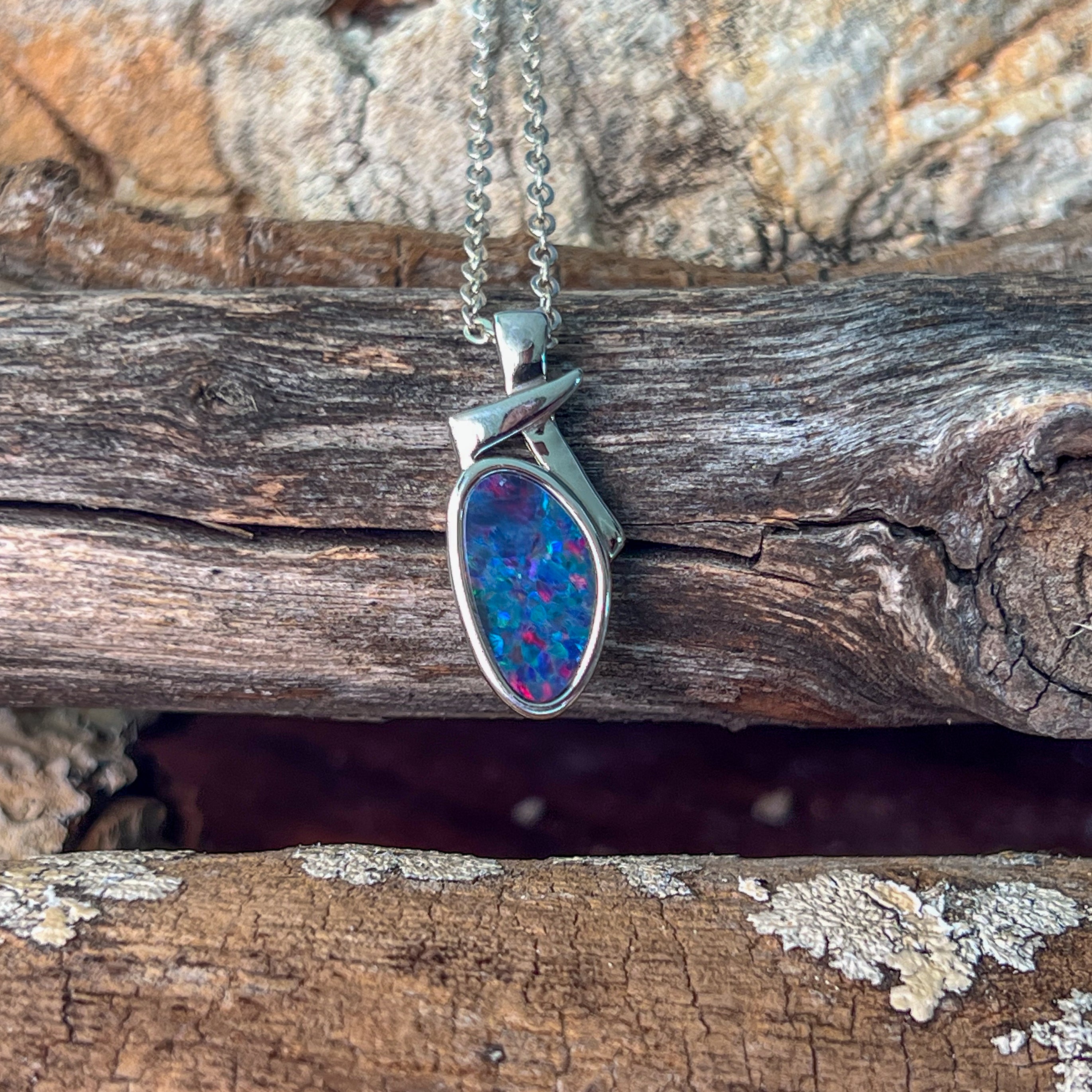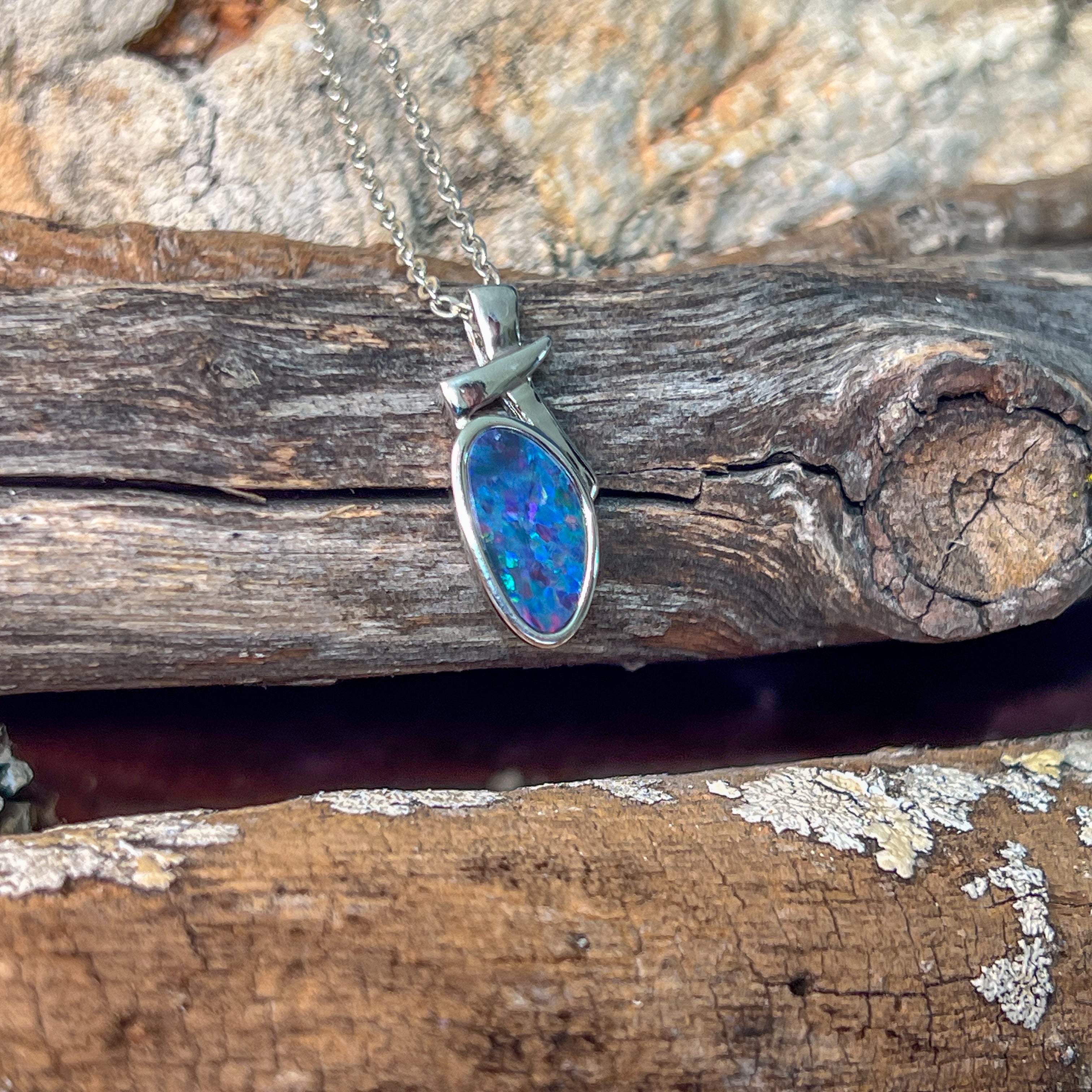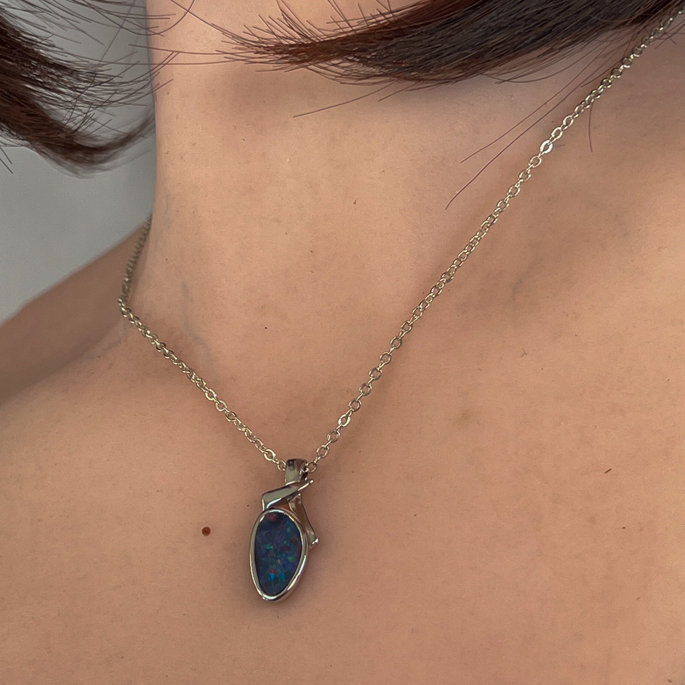 Sterling Silver freeform shap opal doublet 13x7mm pendant