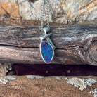 One Sterling Silver Opal doublet bezel set solitaire pendant