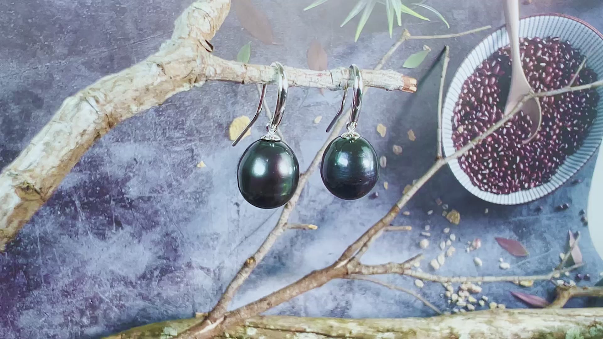 Sterling Silver Hook earrings with Black Pearls drop shape