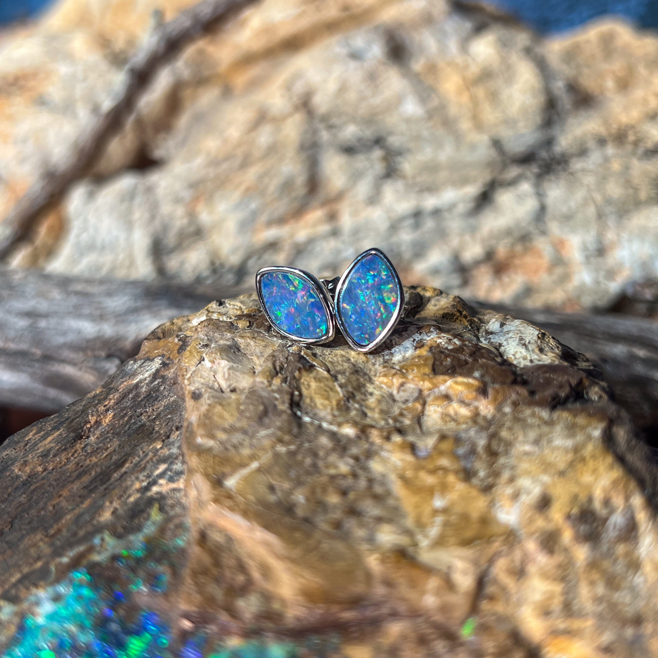 Sterling Silver Marquise shape Opal doublet stud earrings