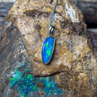 Sterling Silver Opal doublet Blue Green long triangular shape pendant