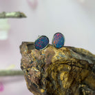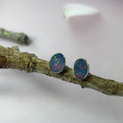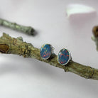 Sterling Silver Opal Doublet Stud Earrings - 8x6mm Oval, Dainty and Minimalist Opal Jewelry, Cute Gift for Her, Handmade Birthstone Studs