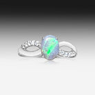 One Sterling Silver cross over ring 7x5mm Australian Dark Opal with cubic zirconias