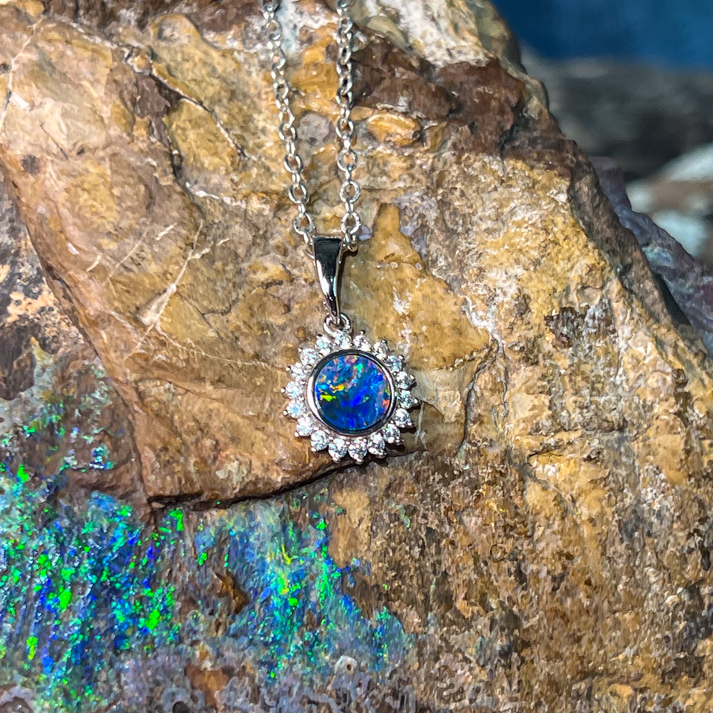 Sterling Silver Opal round 6mm doublet cluster pendant