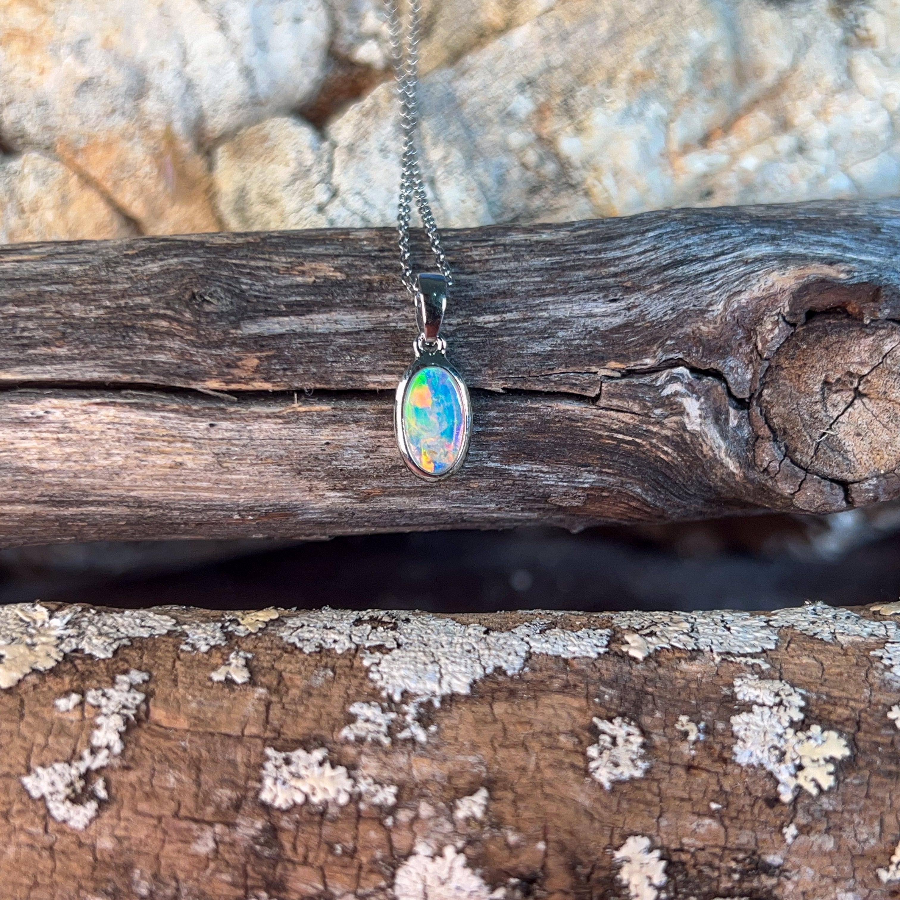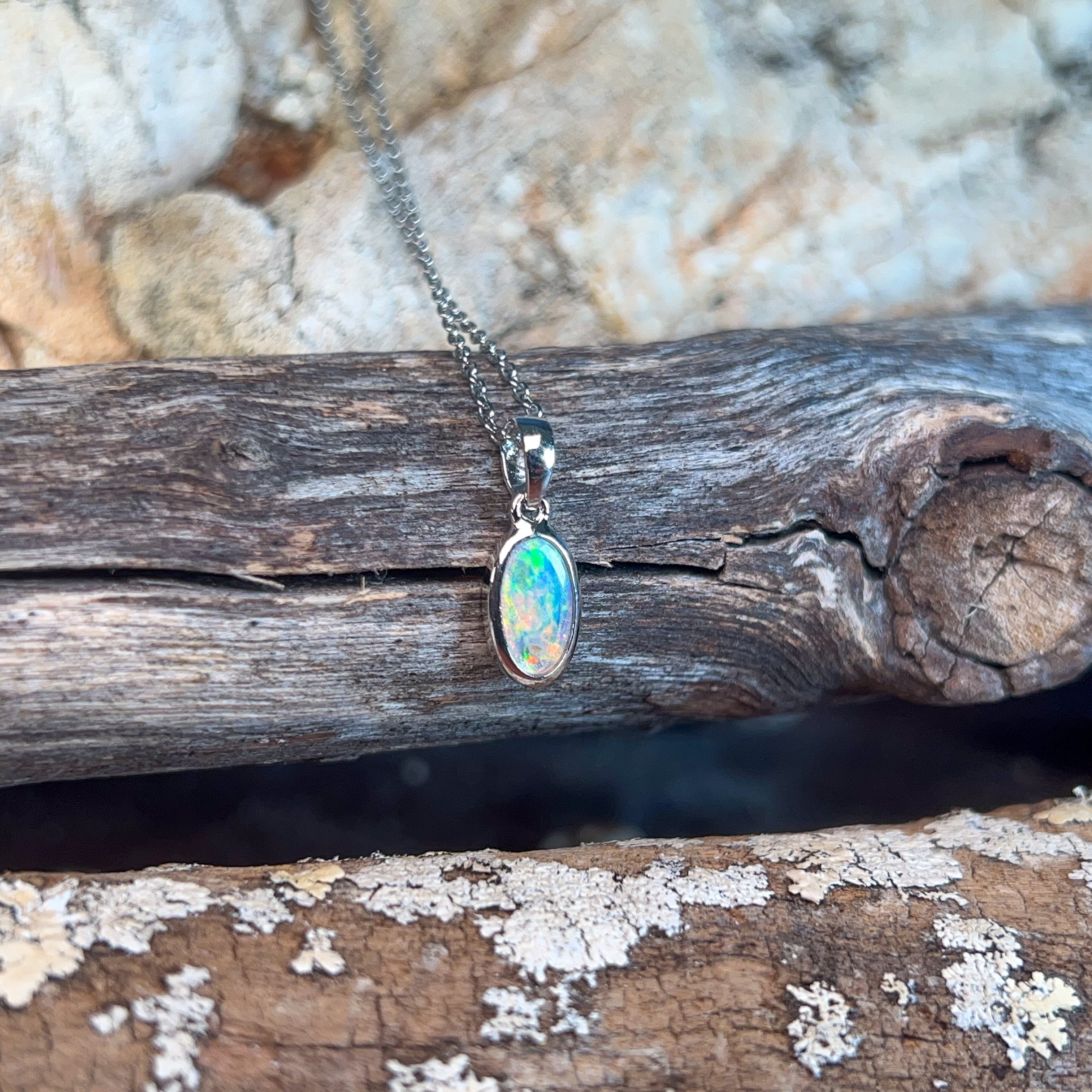 Elevate your everyday elegance with this exquisite sterling silver pendant featuring a stunning 0.5ct black opal in a refined oval setting. The delicate design captures light beautifully, showcasing the opal's mesmerizing play of colour in subtle, sophisticated tones. Perfect for layering or wearing solo, this dainty piece adds a touch of timeless luxury to any occasion—from casual days to special evenings. Crafted with precision in quality sterling silver, it's a versatile treasure you'll reach for again and again.