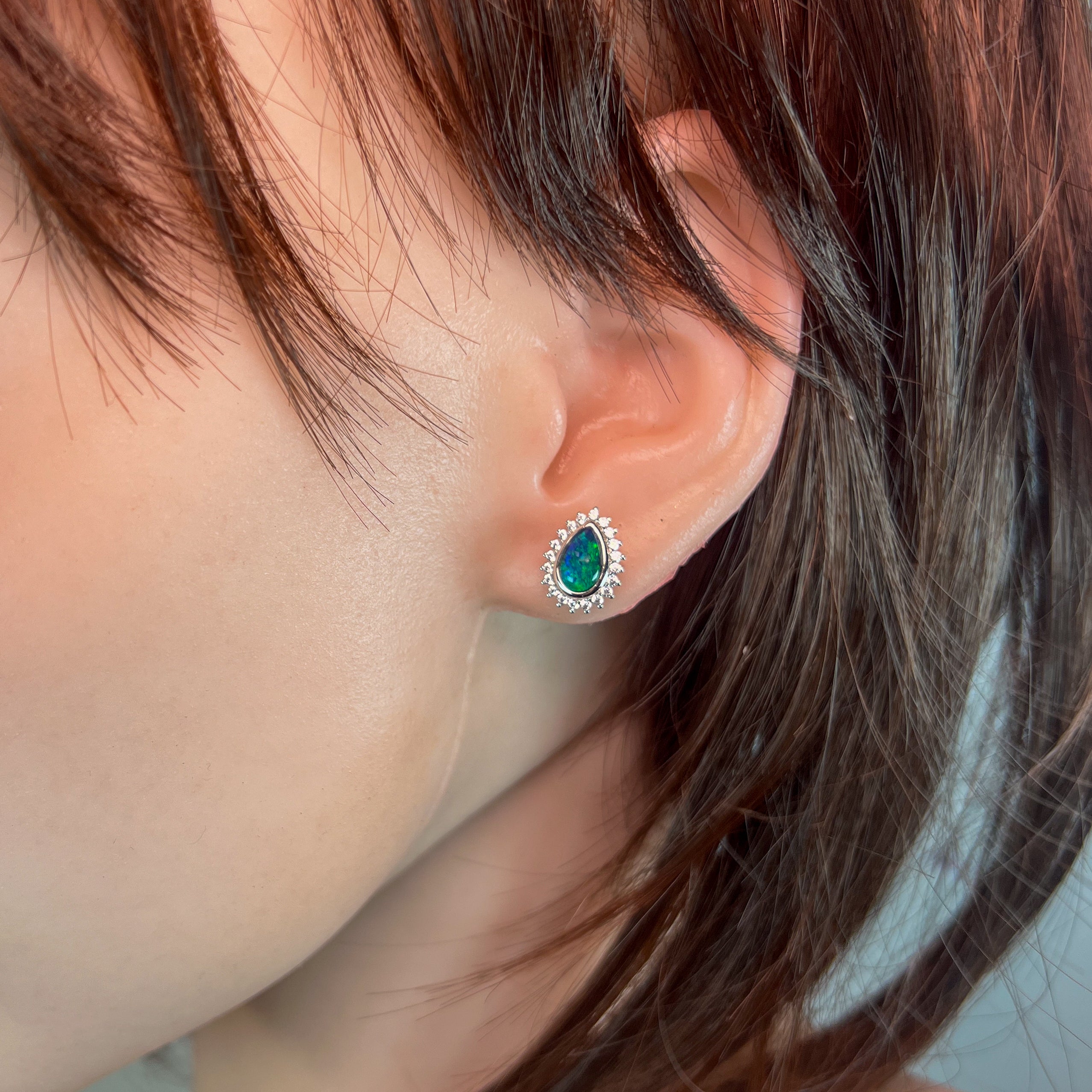 Dive into the magic of the deep ocean with these Sterling Silver pearshape Opal triplet cluster stud earrings. Each 8x5mm opal sparkles with vibrant blues and greens, capturing the playful mystery of underwater treasures. Perfect for adding a splash of color and charm to any outfit, these earrings bring a joyful wave of elegance to your everyday look.