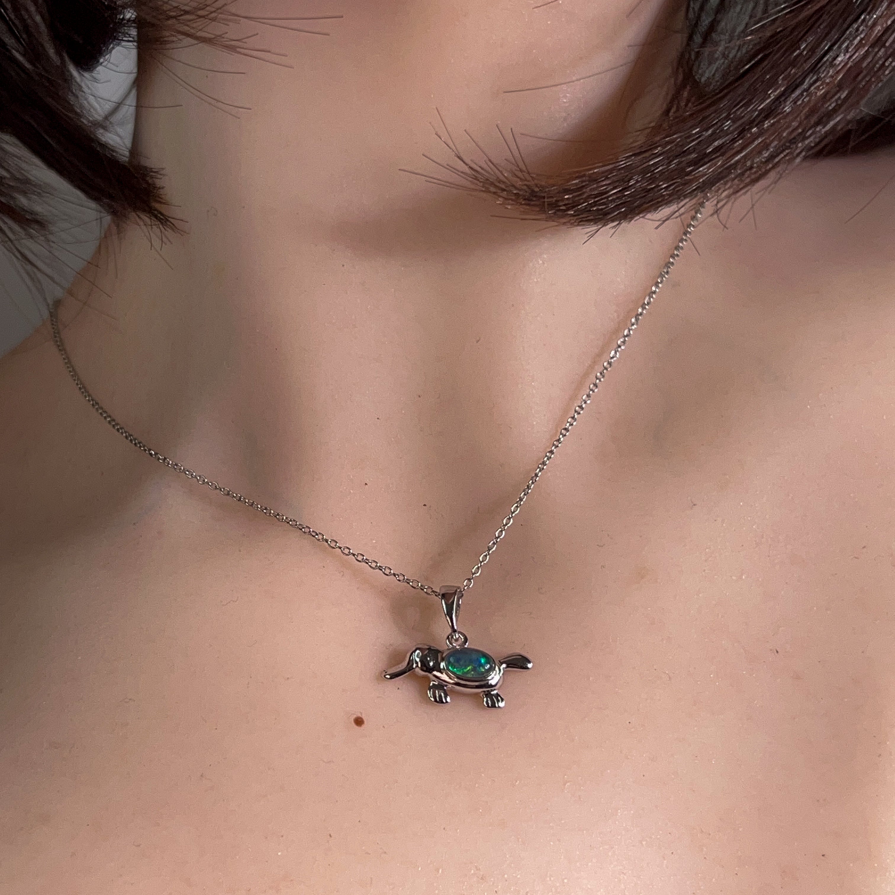 Discover the charm of our delicate Sterling Silver Platypus pendant, featuring a stunning 6x4mm opal triplet that captures nature's most whimsical creature. This dainty design celebrates Australia's iconic monotreme with vibrant opal brilliance set in premium sterling silver. Perfect for animal lovers and opal enthusiasts alike, it's a conversation starter that brings a touch of playful elegance to any jewellery collection. Wear your love for native wildlife with style.