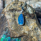Showcasing a vibrant play of colors, this sterling silver pendant features a red and blue freeform opal doublet artfully bezel set for a secure, stylish finish. Its unique design brings a captivating sparkle to any outfit, making it perfect for adding a standout touch to your collection. Lightweight and durable, this pendant combines elegance with everyday wearability.