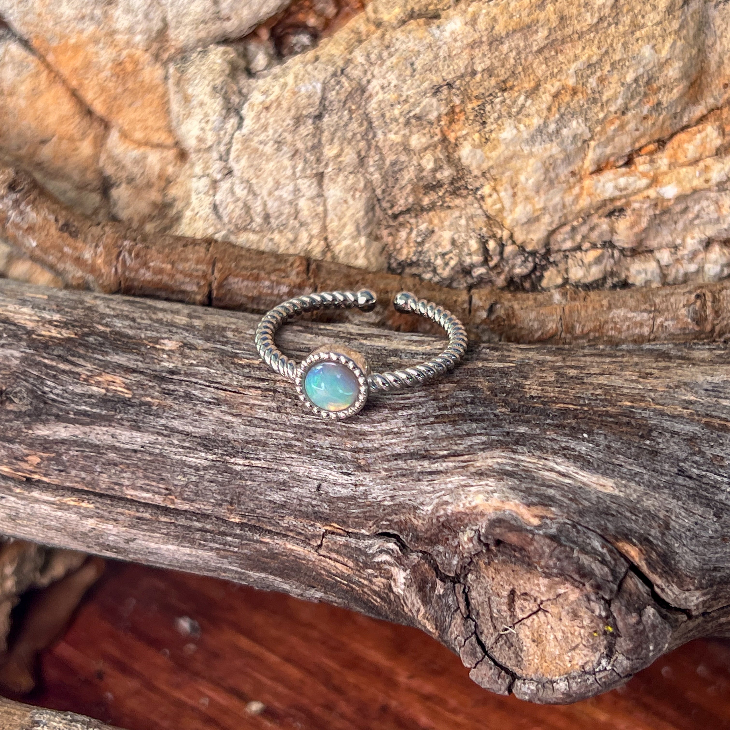 One Sterling Silver White Opal ring bezel straight rope band solitaire