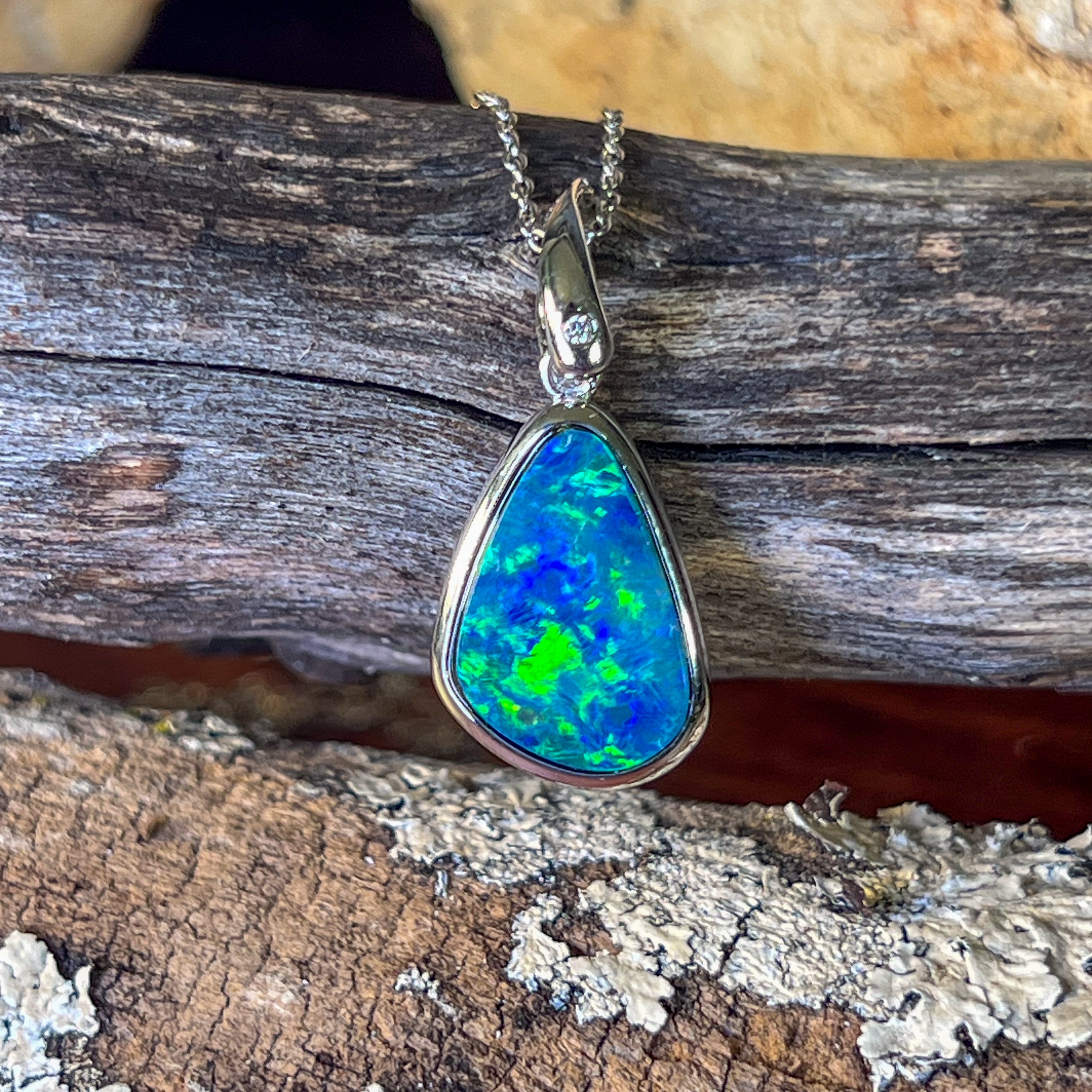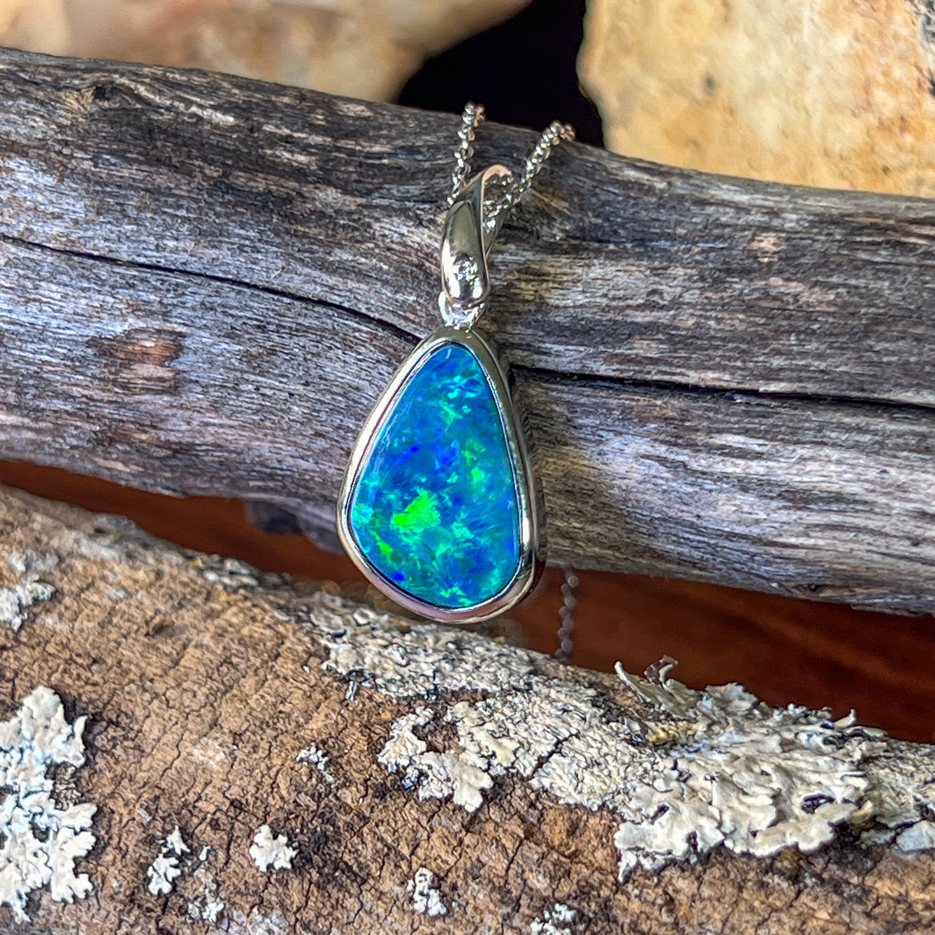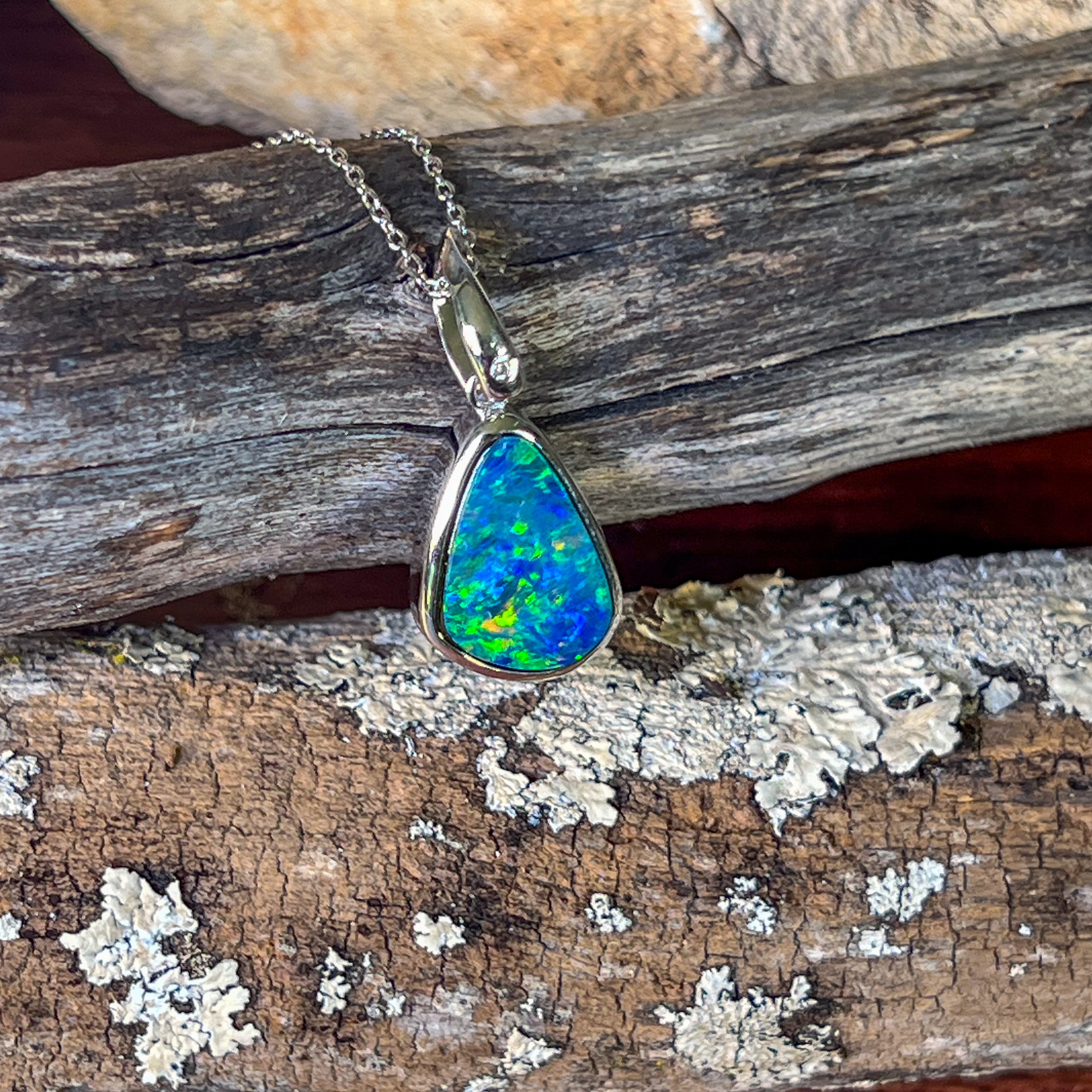 Sterling Silver Triangle shape Opal doublet Blue Green
